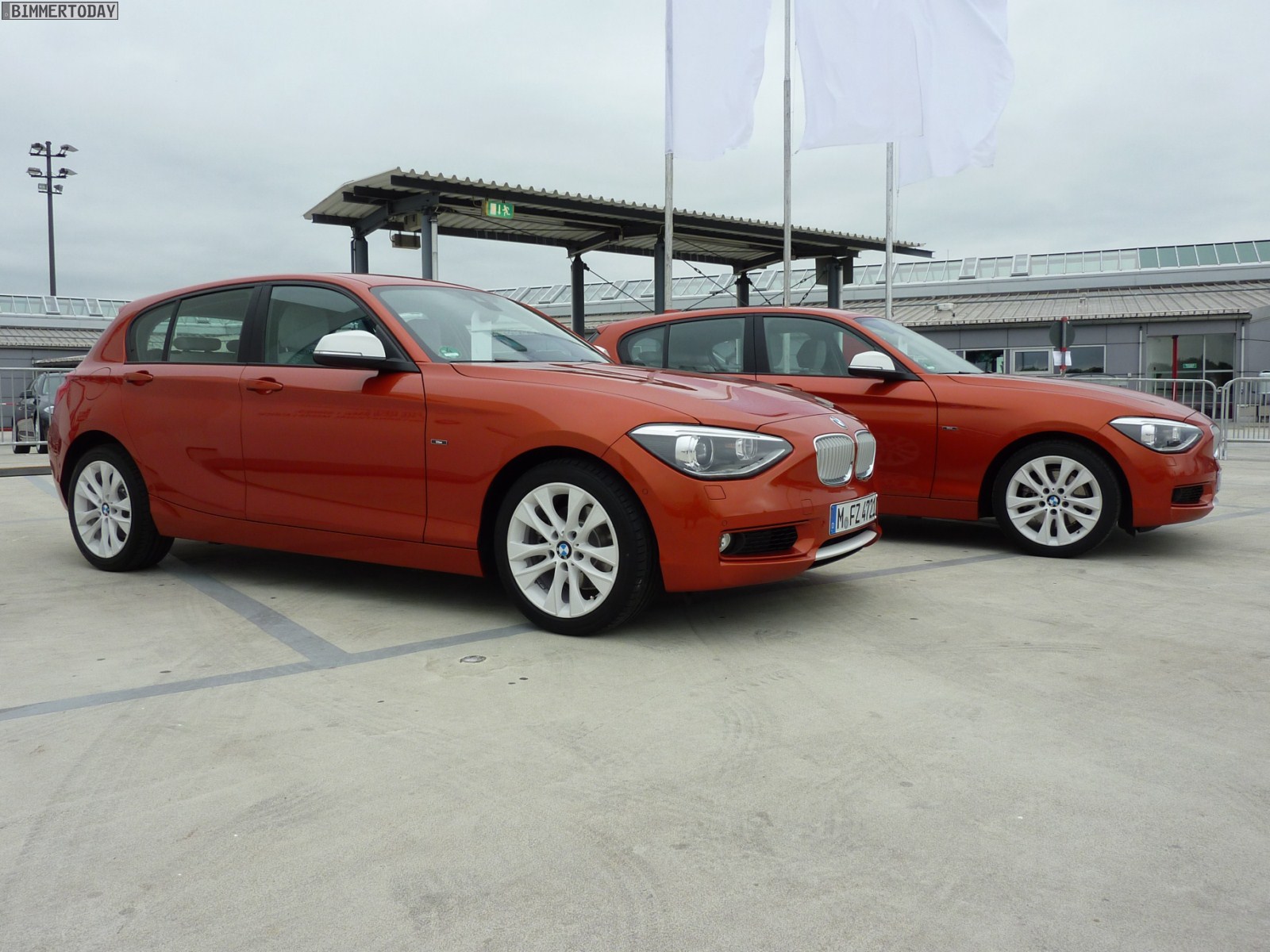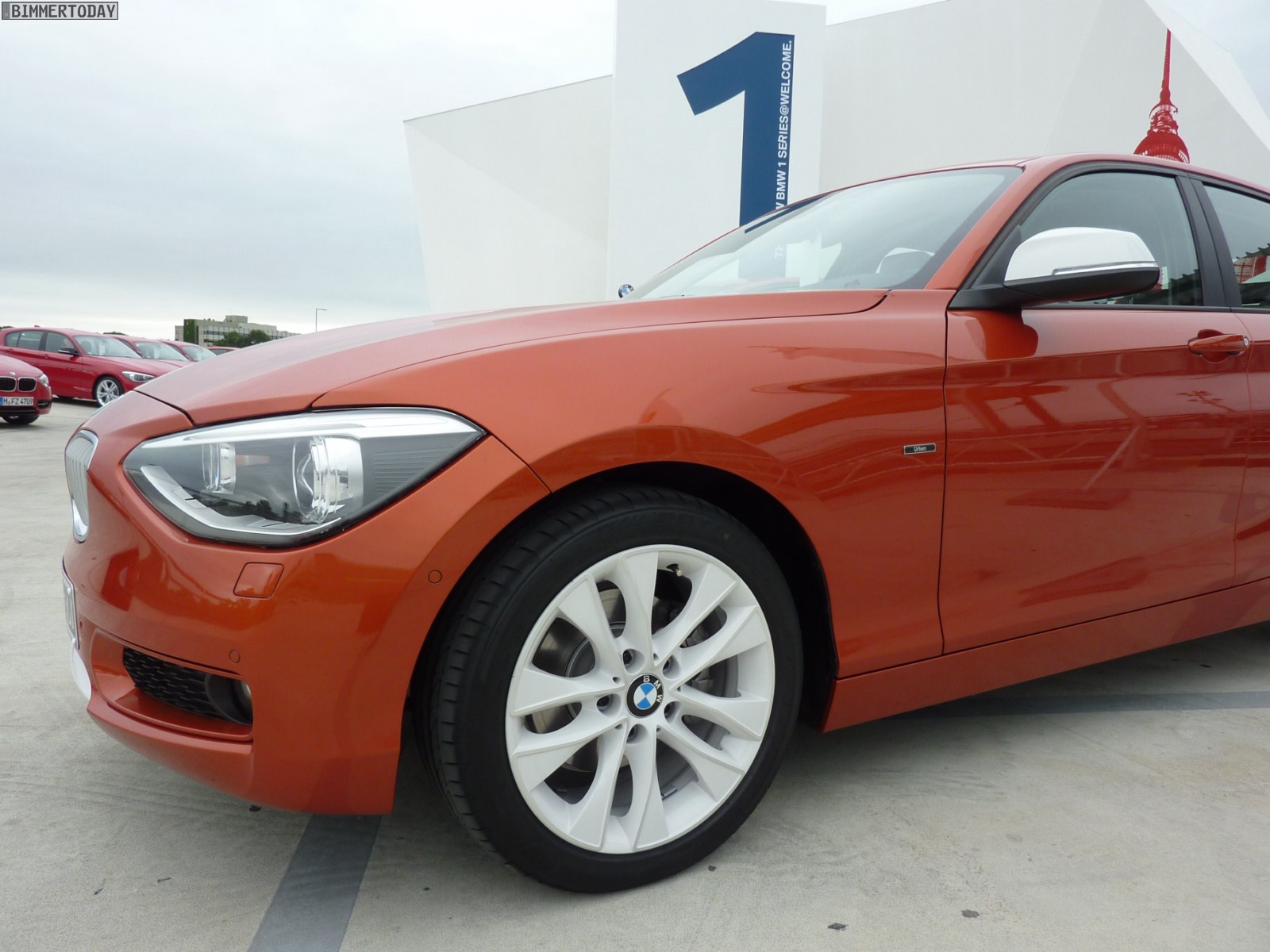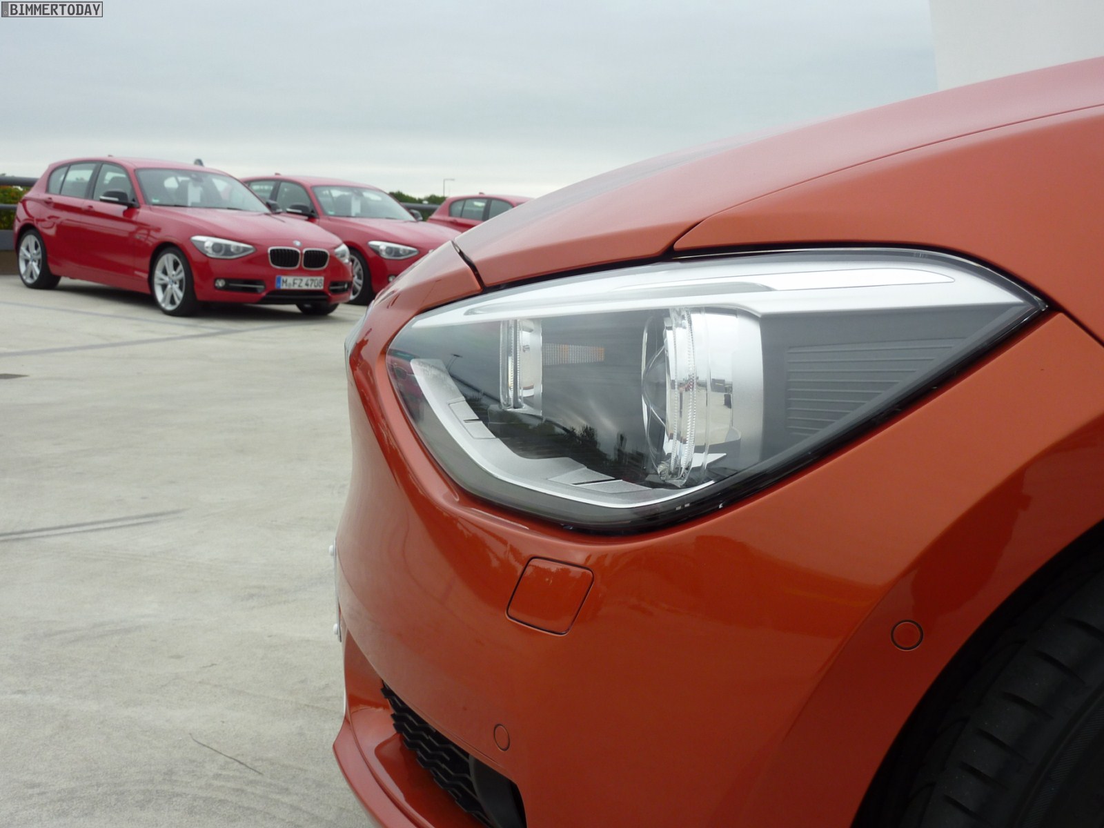 Zur Verfügung stehen wie erwartet einige BMW 118i F20 Sport Line in Karmesinrot sowie ebenso zahlreiche BMW 120d Urban Line in Valencia Orange Metallic mit achtstufigem Automatikgetriebe. Wir werden unsere ersten Meter mit einem der roten BMW 118i absolvieren, um dem neuen aufgeladenen Vierzylinder mit 1,6 Litern Hubraum und der internen Bezeichnung N13B16 auf den Zahn zu fühlen. Wenn alles klappt, gibt es heute Abend auch ein erstes Tachovideo, aber wir wollen nicht zu viel versprechen.
