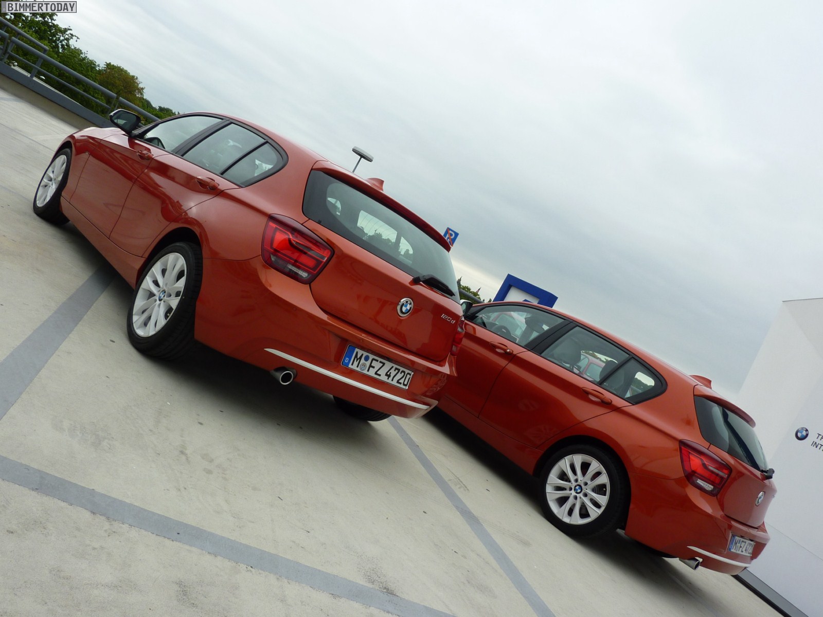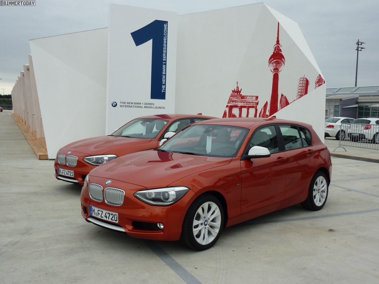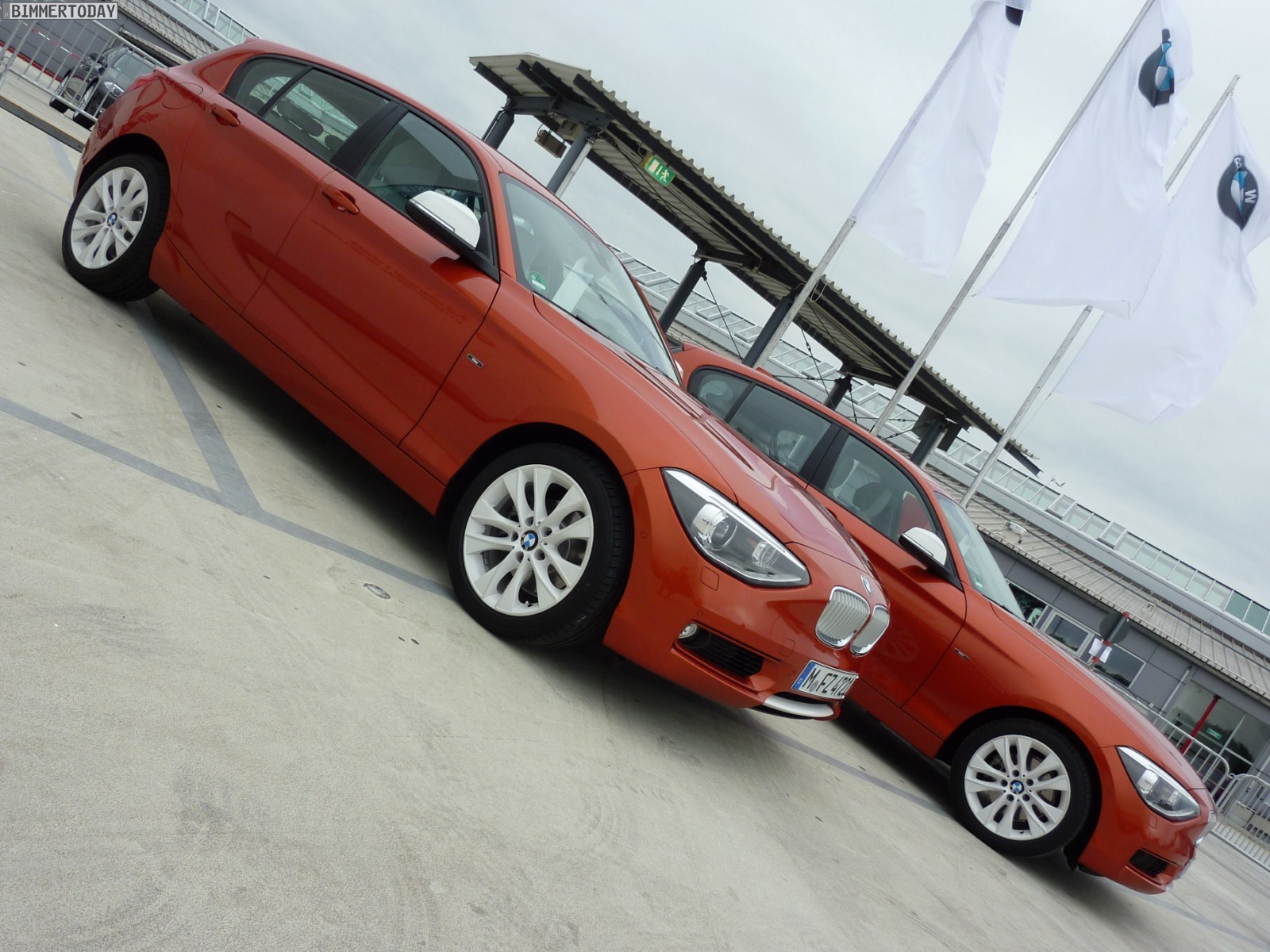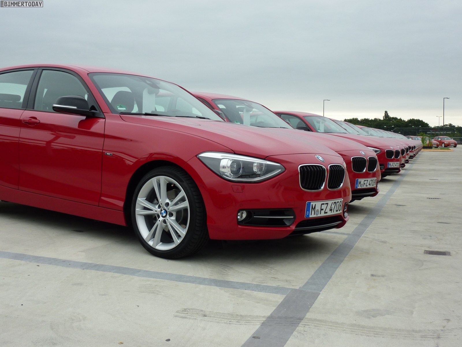 Zur Verfügung stehen wie erwartet einige BMW 118i F20 Sport Line in Karmesinrot sowie ebenso zahlreiche BMW 120d Urban Line in Valencia Orange Metallic mit achtstufigem Automatikgetriebe. Wir werden unsere ersten Meter mit einem der roten BMW 118i absolvieren, um dem neuen aufgeladenen Vierzylinder mit 1,6 Litern Hubraum und der internen Bezeichnung N13B16 auf den Zahn zu fühlen. Wenn alles klappt, gibt es heute Abend auch ein erstes Tachovideo, aber wir wollen nicht zu viel versprechen.