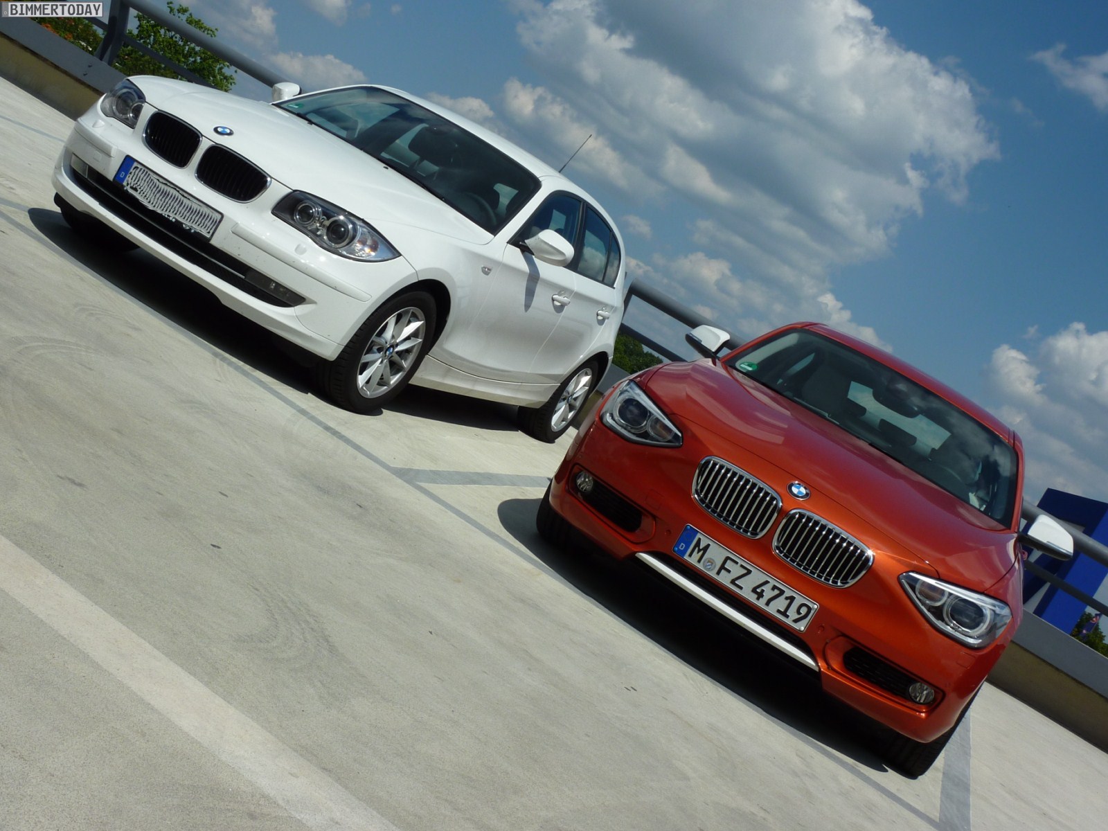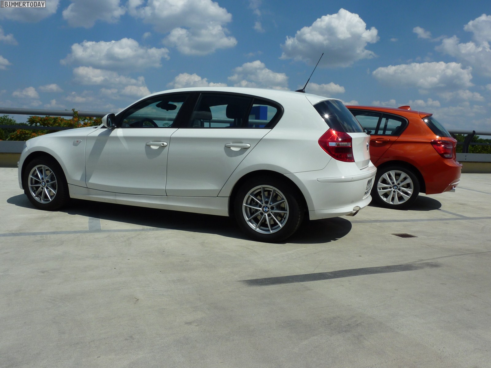 Bildvergleiche sind stets schwierig und selbst wenn man beide Fahrzeuge direkt nebeneinander stellt, ist es schwer, einen wirklich fairen Vergleich zu arrangieren. Auch wenn es sich beim gezeigten BMW 1er E87 um ein Fahrzeug in Alpinweiß und ohne irgendwelche Exterieur-Spielereien handelt, was den Vergleich mit dem 1er F20 in Valencia Orange und mit Urban Line etwas unfair macht, vermitteln die Bilder unserer Meinung nach einen guten Eindruck davon, wie die beiden ersten BMW 1er-Generationen direkt nebeneinander wirken.