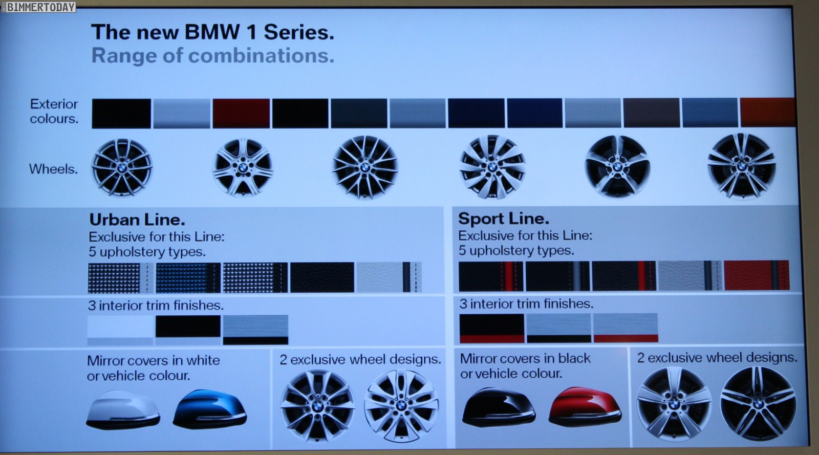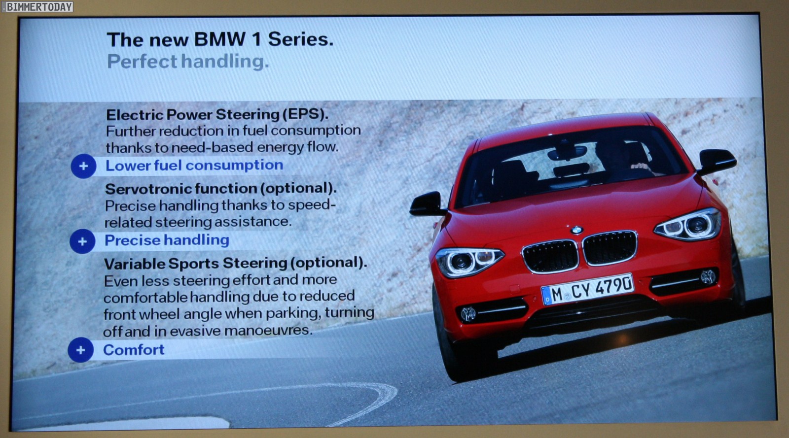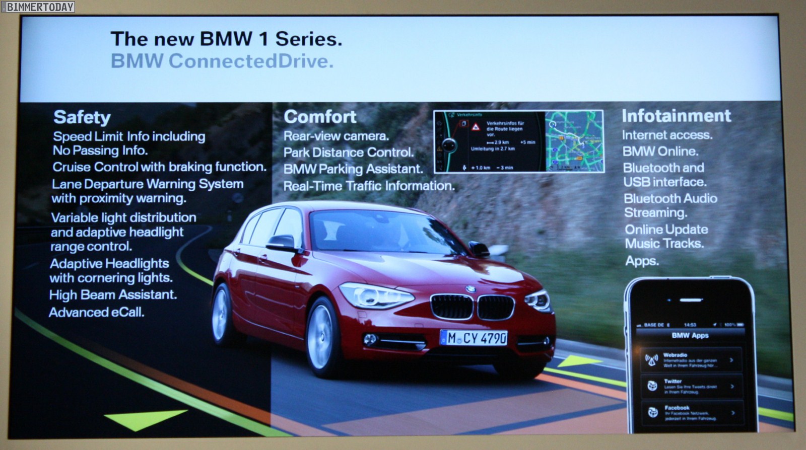 Auf der Pressekonferenz zum Launch des neuen BMW 1er F20 in Berlin präsentierte BMW einige interessante Grafiken und Übersichten, die uns die wichtigsten Unterschiede der 1er-Reihe im Vergleich zum Vorgänger sowie die relevanten technischen Daten übersichtlich zusammenfassen. In unserer Bilderserie seht ihr die entsprechenden Folien, die zwar leider in Englisch beschriftet sind, aber dennoch verständlich sein sollten.