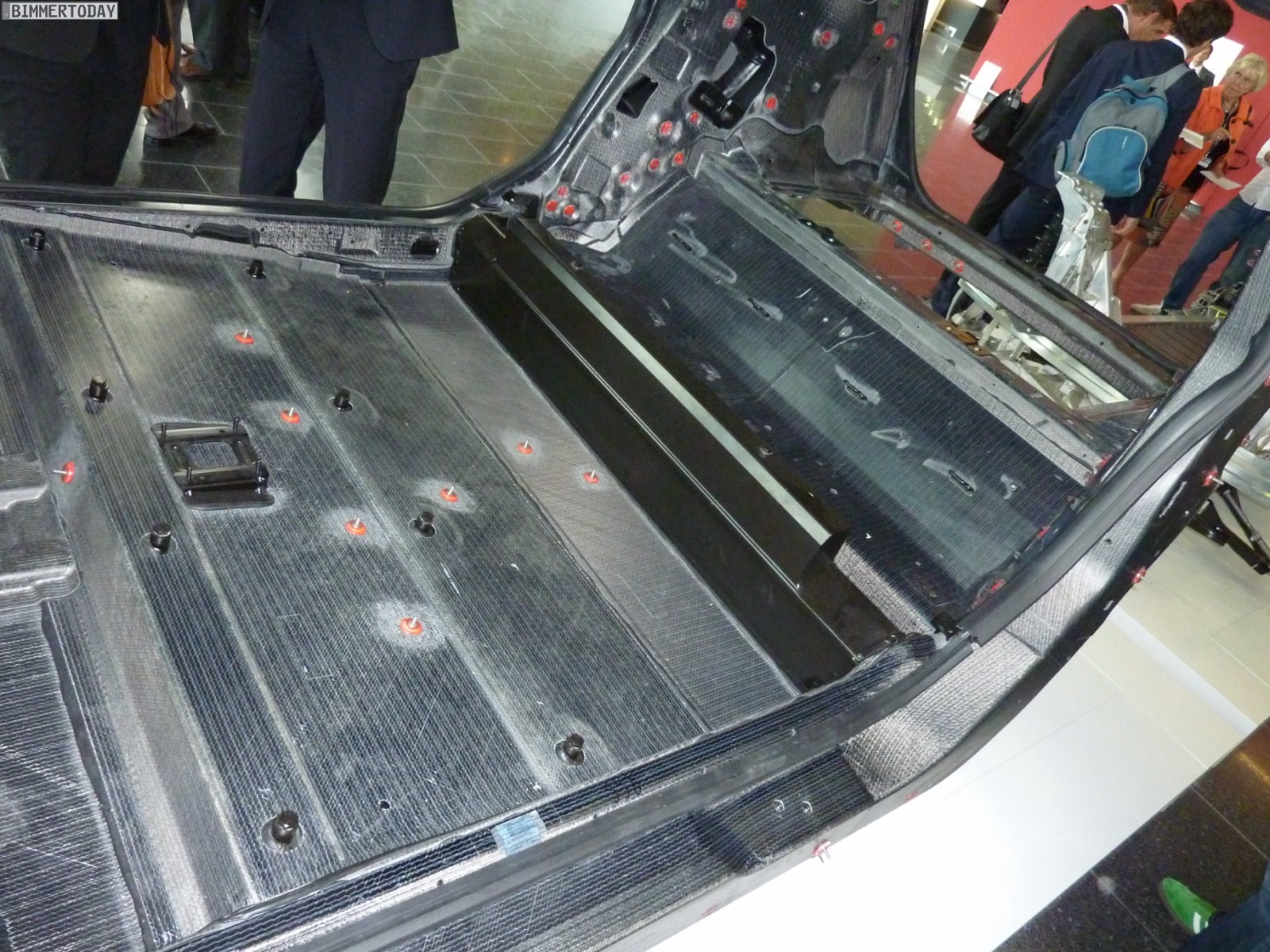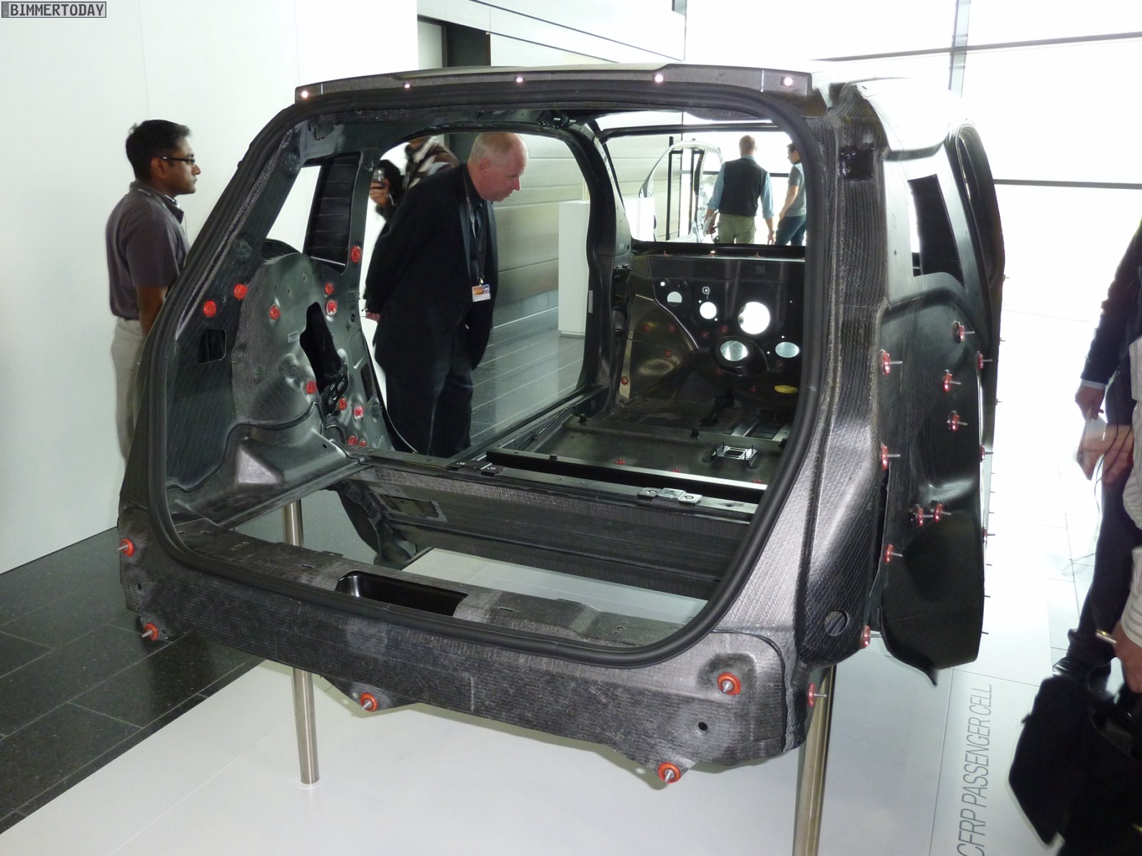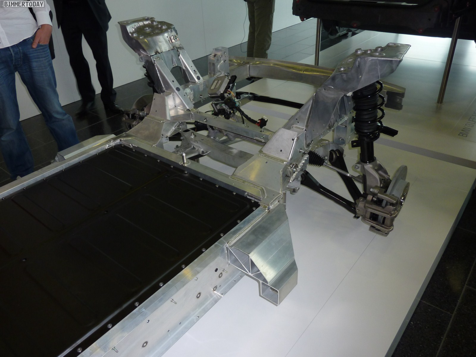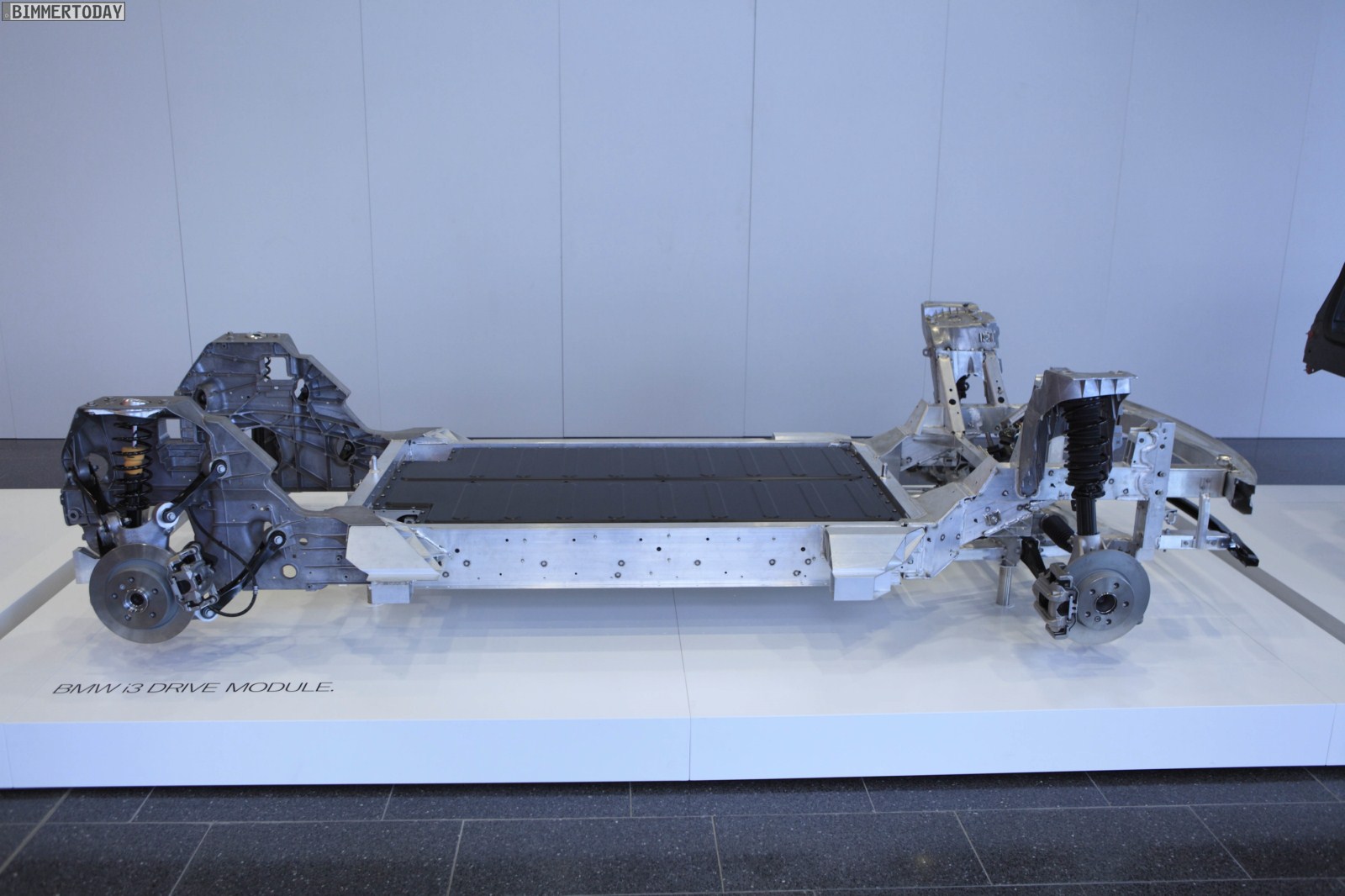 Weitere Bilder zeigen das komplette Drive-Modul des i3, das zu großen Teilen aus Aluminium besteht und rein theoretisch auch ohne das aufgesetzte Life-Modul fahrbereit wäre. Das Life-Modul wird von der Fahrgastzelle aus Carbon geprägt, die trotz ihres niedrigen Gewichts und der fehlenden B-Säule enorm viel Sicherheit bietet.