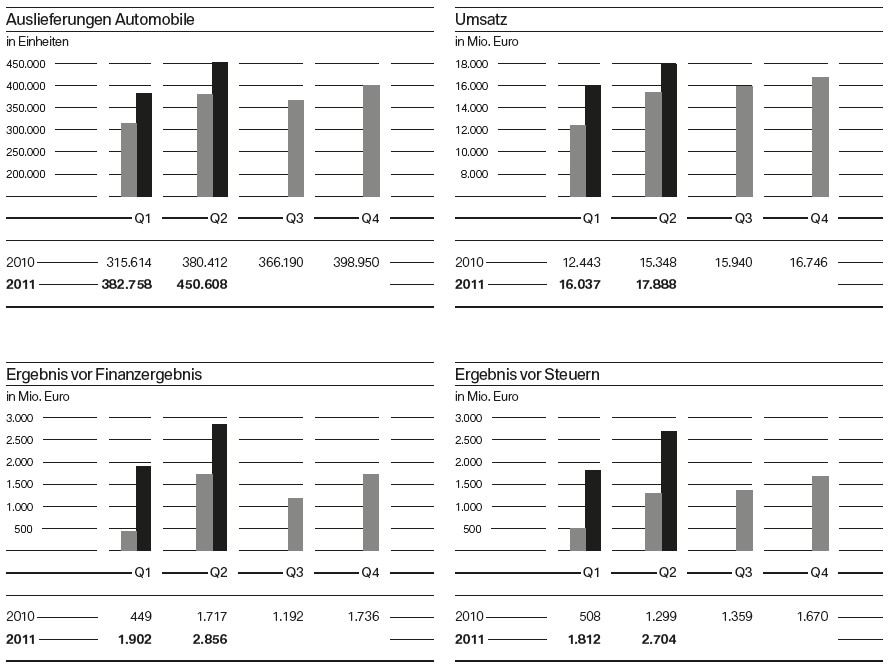 Wir streben im laufenden Geschäftsjahr ein neues Rekordergebnis vor Steuern sowie einen Absatzzuwachs von über 10% auf die neue Bestmarke von mehr als 1,6 Mio. Fahrzeuge an. Wir sind auf einem guten Weg, auch 2011 der weltweit führende Premiumhersteller zu bleiben.