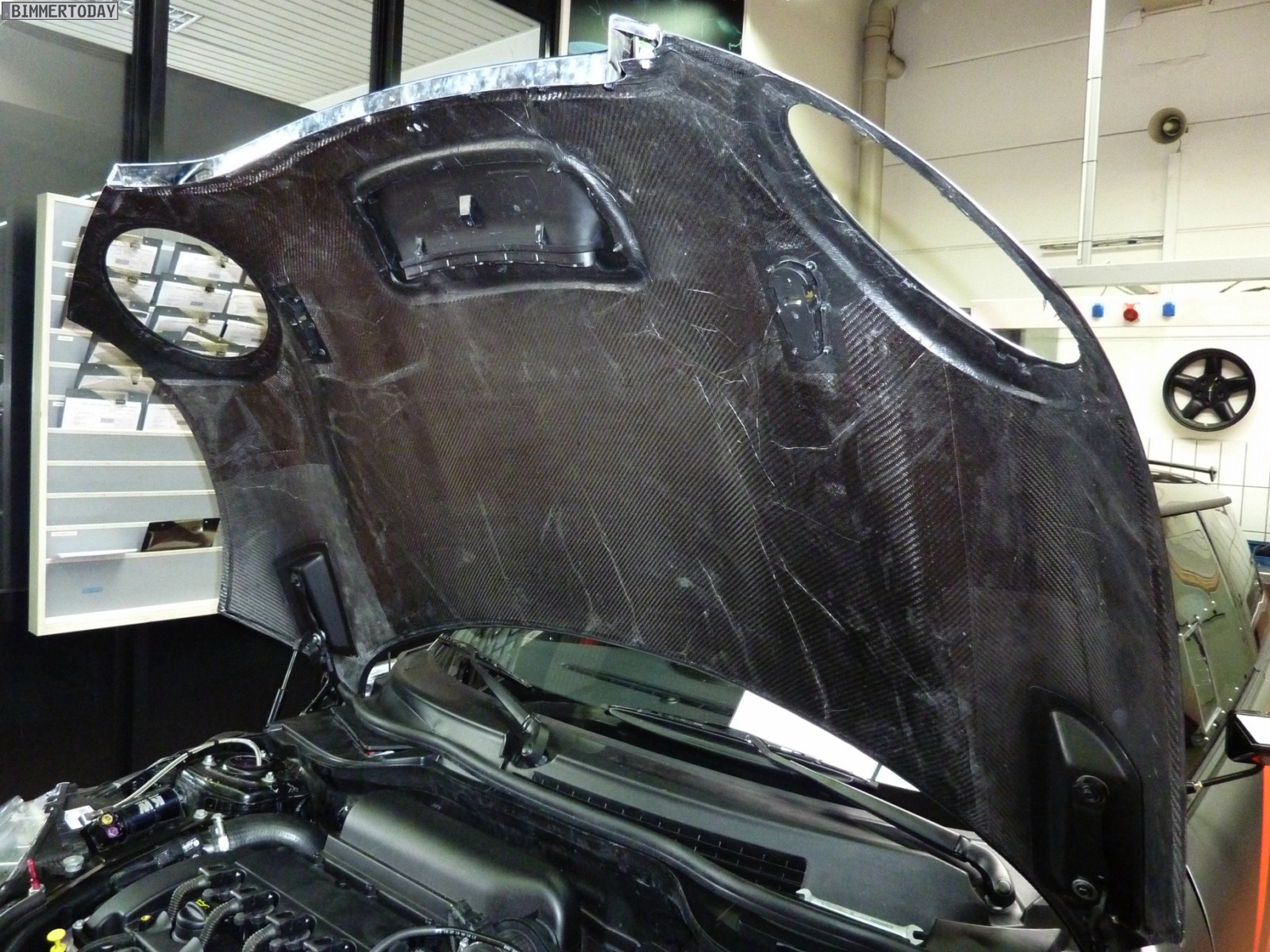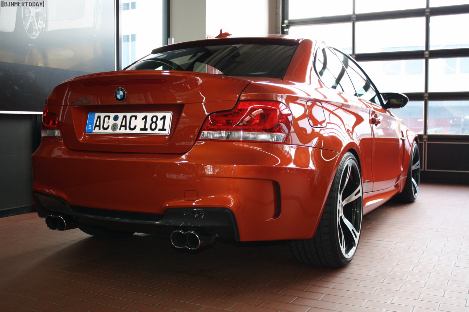 In der letzten Woche statteten wir dem 1987 erstmals in Erscheinung getretenem Unternehmen selbst einen Besuch ab und haben dabei natürlich einige Fotos gemacht, die auch einen Blick hinter die Glasfassade der Unternehmenszentrale erlauben. In der Werkstatt ist uns dabei ein in unübersehbarem Valencia Orange lackierter 1er M Coupé vor die Linse gekommen, von dem wir bereits vor ein paar Wochen erste Spyshots aus dem Aachener Umland präsentieren konnten. Bis zur offiziellen Vorstellung des Fahrzeugs wird es an Optik und Technik noch weitere Veränderungen geben, aber schon jetzt zeigt das kleinste Modell der M GmbH, dass ihm die Felgen aus Aachen sehr gut stehen. Die an der Hinterachse montierten 295er-Reifen dürften genügend Traktion bieten, um notfalls auch mehr als die serienmäßigen 340 PS auf die Straße zu bringen.