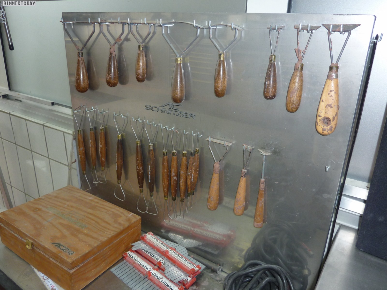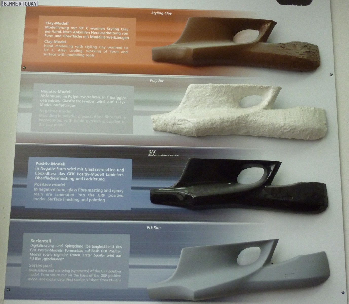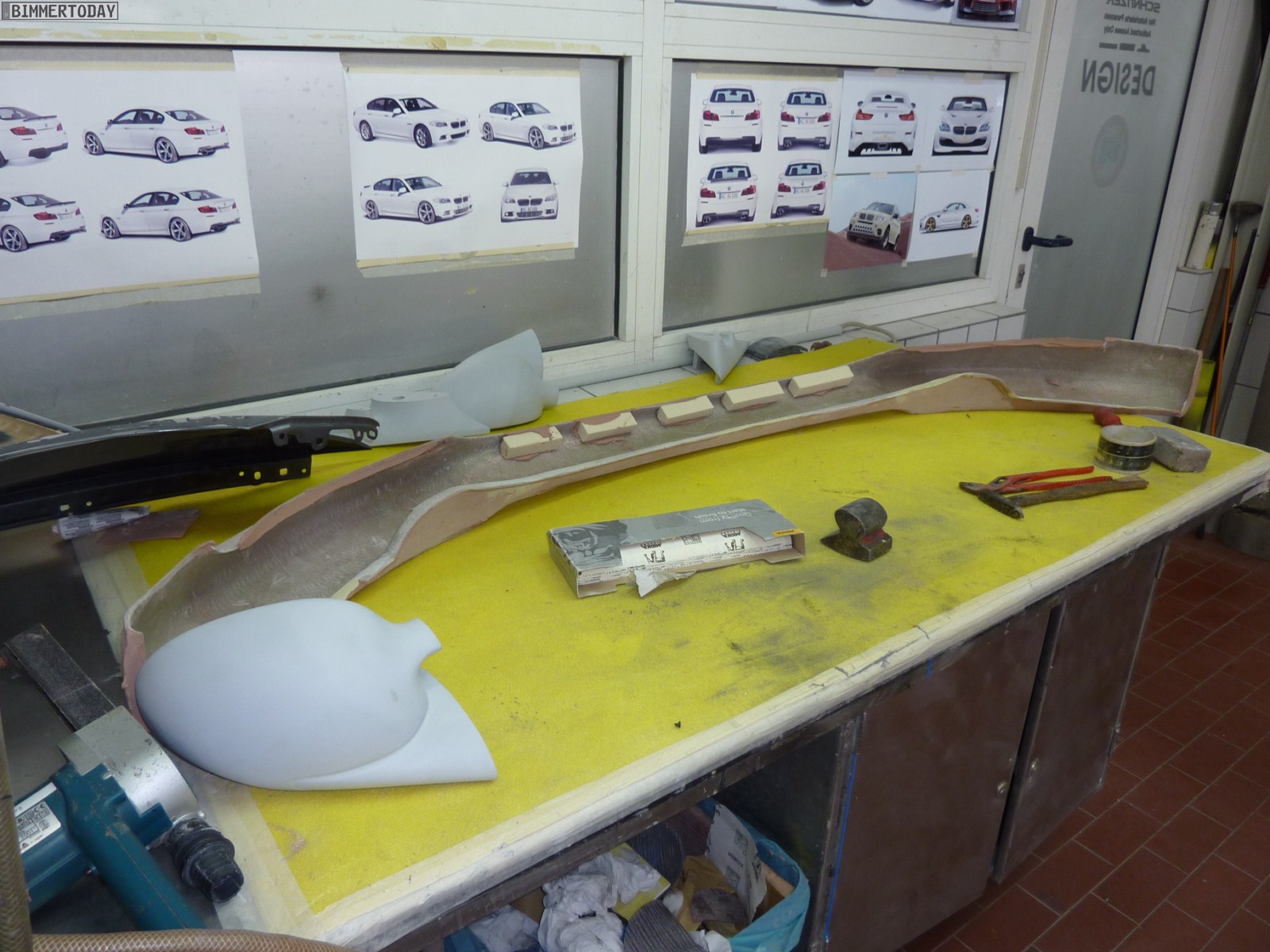 Neben den Fahrzeugen in der Werkstatt konnten wir auch die Arbeitsplätze von Chefdesigner Michele Viandante begutachten. Der Italiener arbeitet bereits seit über 20 Jahren für AC Schnitzer und ist für die komplette Formensprache der Aachener verantwortlich. Was zunächst am Computer entsteht, wird später wie im Automobilbau üblich in ein Clay-Modell aus leicht formbarem Material übertragen. Mit Hilfe des ausgeformten Clay-Modells wird als Zwischenschritt ein Negativ-Modell aus Polydur erstellt, das als Vorlage für ein weiteres Positiv-Modell aus GFK dient. Das GFK-Modell wird schließlich digitalisiert und dient als Vorlage für die Serienteile aus PU-Rim, die in Erstausrüsterqualität gefertigt werden.