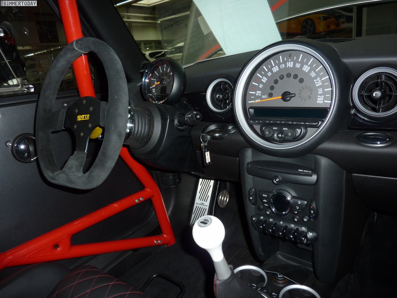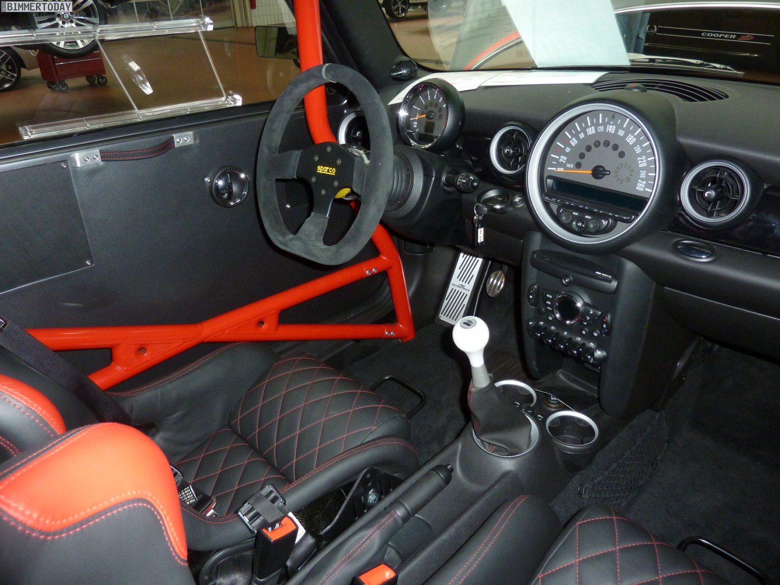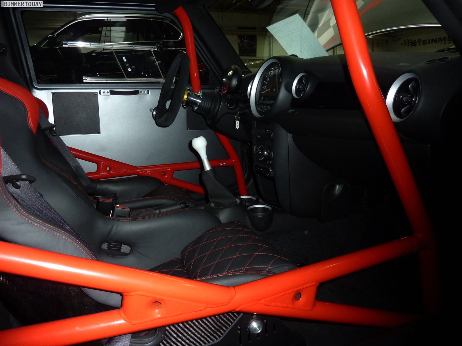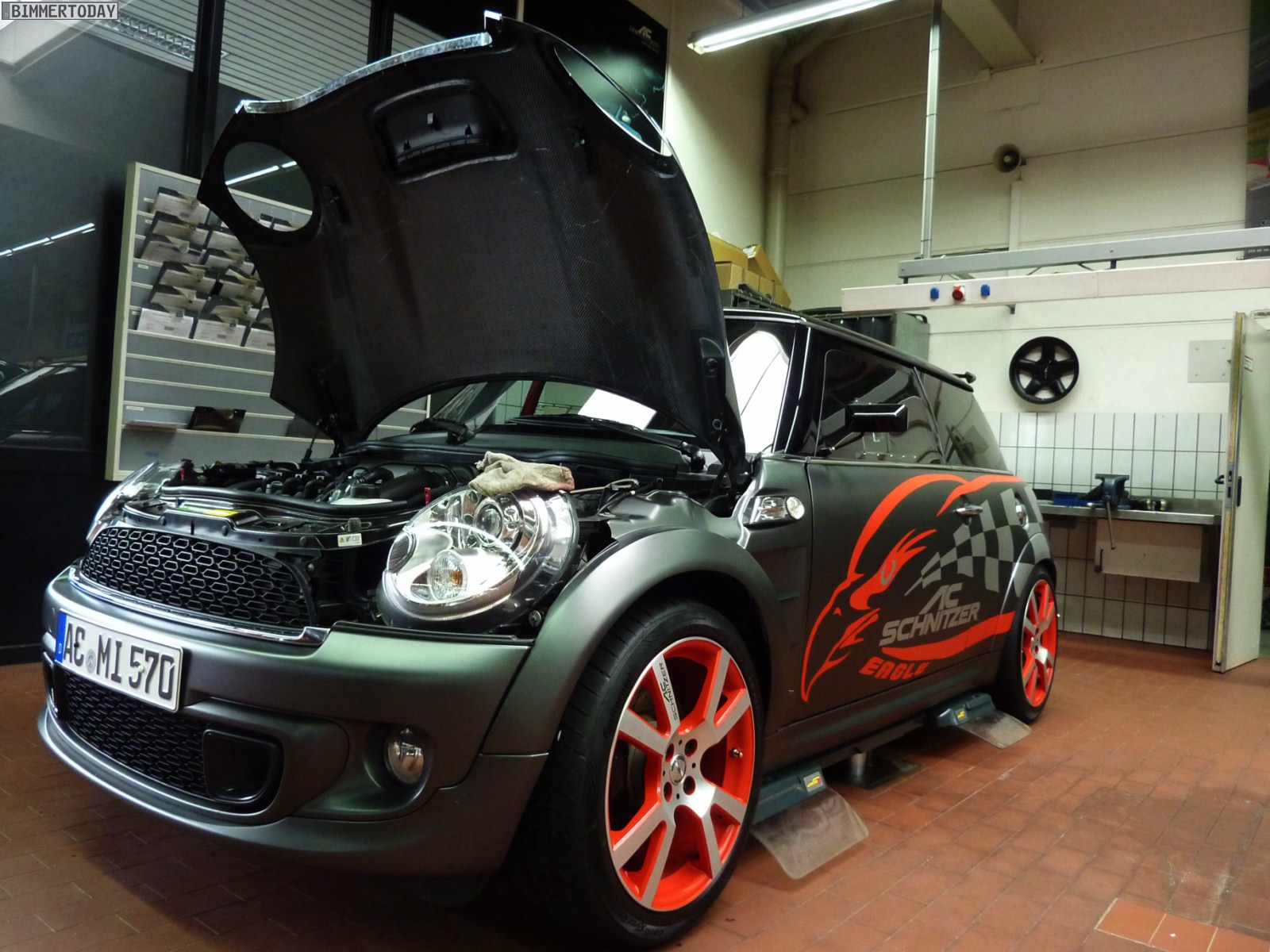 In unmittelbarer Nachbarschaft zum BMW 1er M Coupé stand mit dem AC Schnitzer Eagle ein weiteres hochinteressantes Gefährt, denn bei diesem unscheinbaren Kleinwagen handelt es sich immerhin um den schnellsten MINI des diesjährigen Tuner Grand Prix. In nur 1:13.341 Minuten umrundete der 260 PS starke Fronttriebler im Juni den kleinen Kurs des Hockenheimrings, wofür neben der gesteigerten Motorleistung auch eine Reduzierung des Gewichts um stattliche 80 Kilogramm verantwortlich war.
