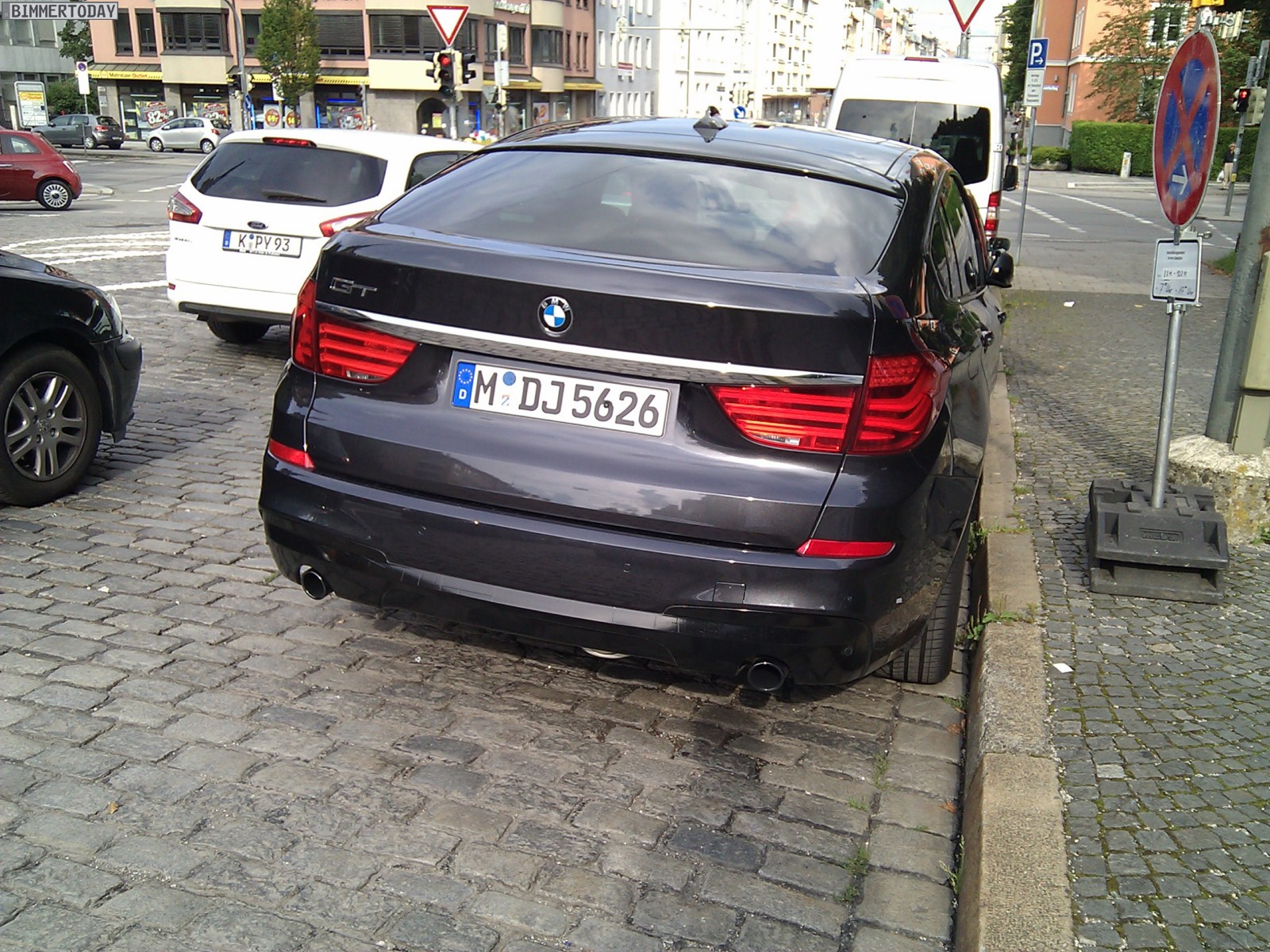Bereits Anfang Juli präsentierte BMW in Form eines ersten Bildes die Bestätigung für die Existenz eines M Sportpakets für den BMW 5er GT F07, aber ein offizielles Bild vom Heck bleibt man uns in München bis heute schuldig. Dank unserem Leser Michael können wir nun weiteres Licht ins Dunkel bringen, denn er hat den bereits von einem anderen Leser fotografierten Prototypen eines ungetarnten F07 mit M Paket erneut erwischt und vier gute Bilder gemacht, von denen eines auch die Heckschürze sehr gut zeigt.