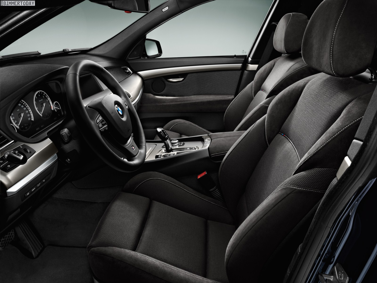 Mittlerweile können wir auch ein erstes offizielles Bild vom Innenraum des Gran Turismo mit M Paket liefern, auf dem ein sportlicherer und weniger luxuriöser Eindruck entsteht. Die Sportsitze verfügen über einen Bezug aus Leder und Alcantara, dazu kommen ein M Sportlenkrad, der Dachhimmel in Anthrazit, die Interieurleisten Palladiumgrau sowie Einstiegsleisten und Fußstütze mit M-Logo.