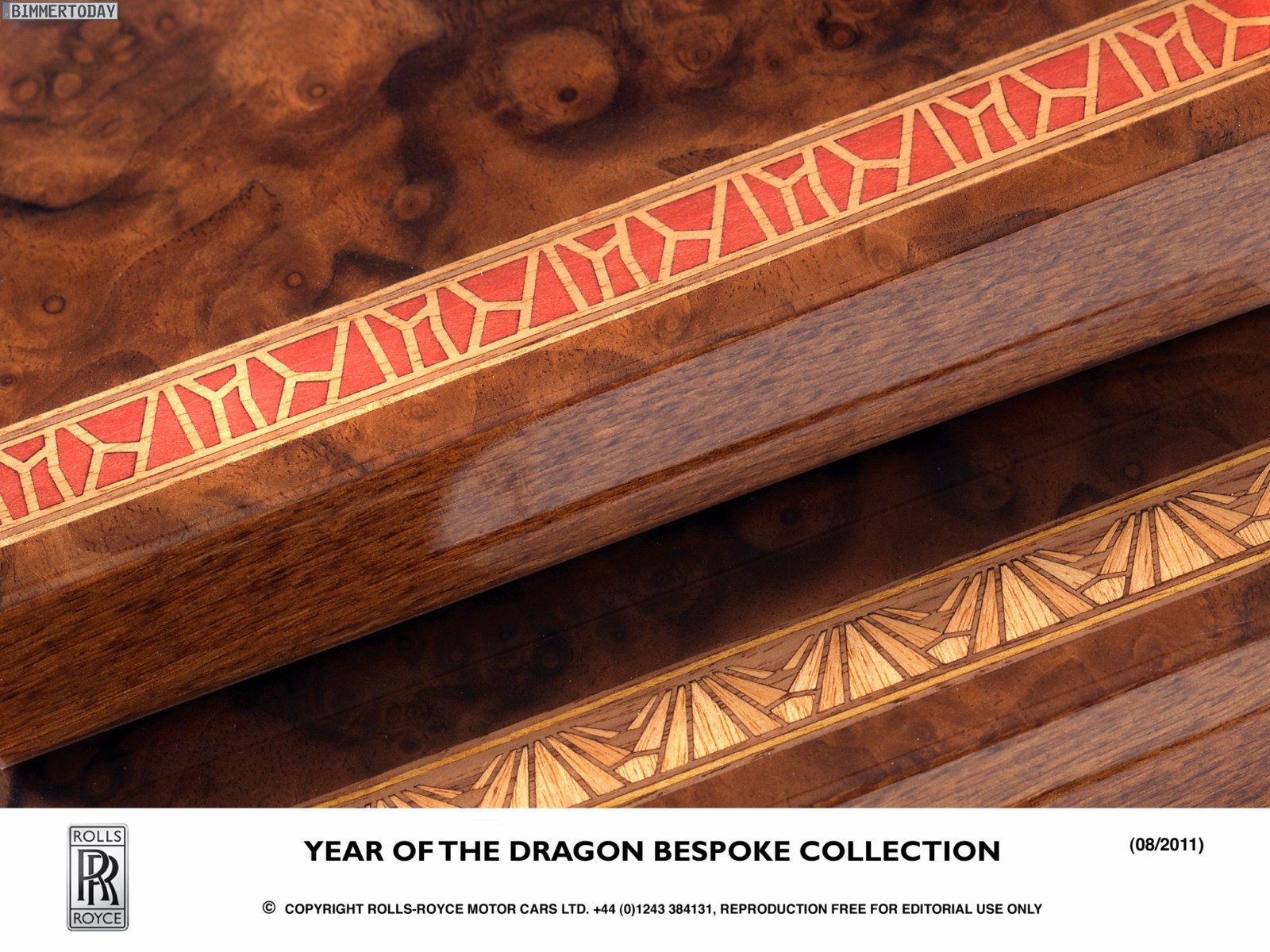 Im Holzpanel vor dem Beifahrer werden ebenfalls ein Drache und der Schriftzug “Phantom” in Gold eingearbeitet, was ebenso an die Sonderserie erinnern soll wie die beiden bestickten Kissen für die Fond-Passagiere und die beleuchteten Einstiegsleisten mit dem Schriftzug “Year of the Dragon 2012”.
