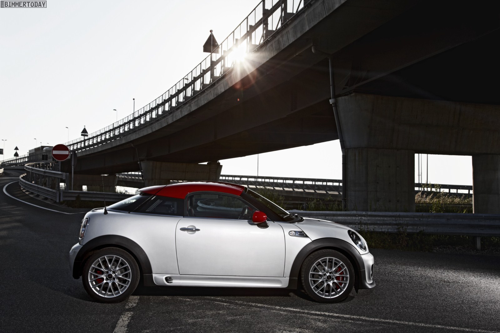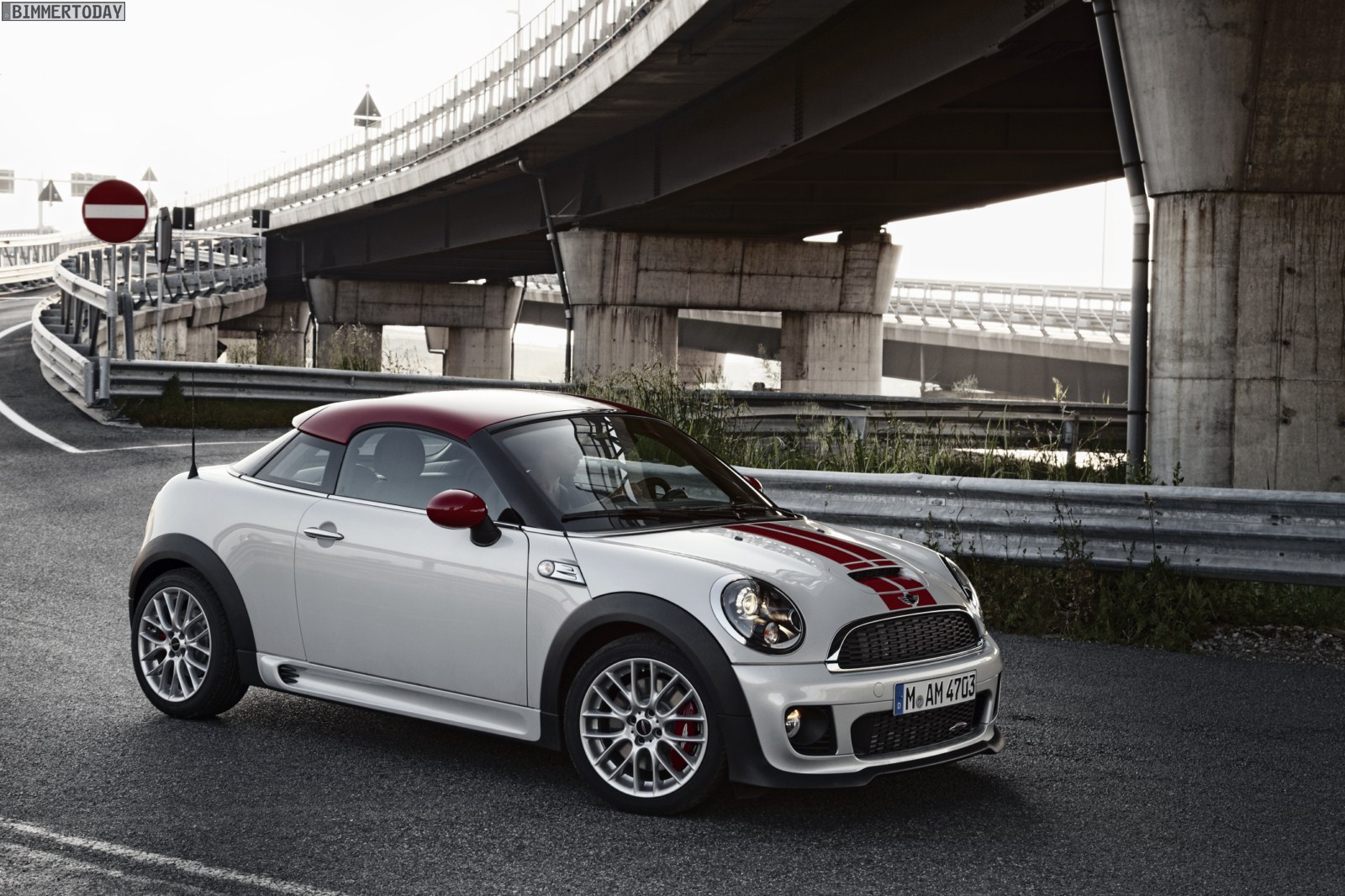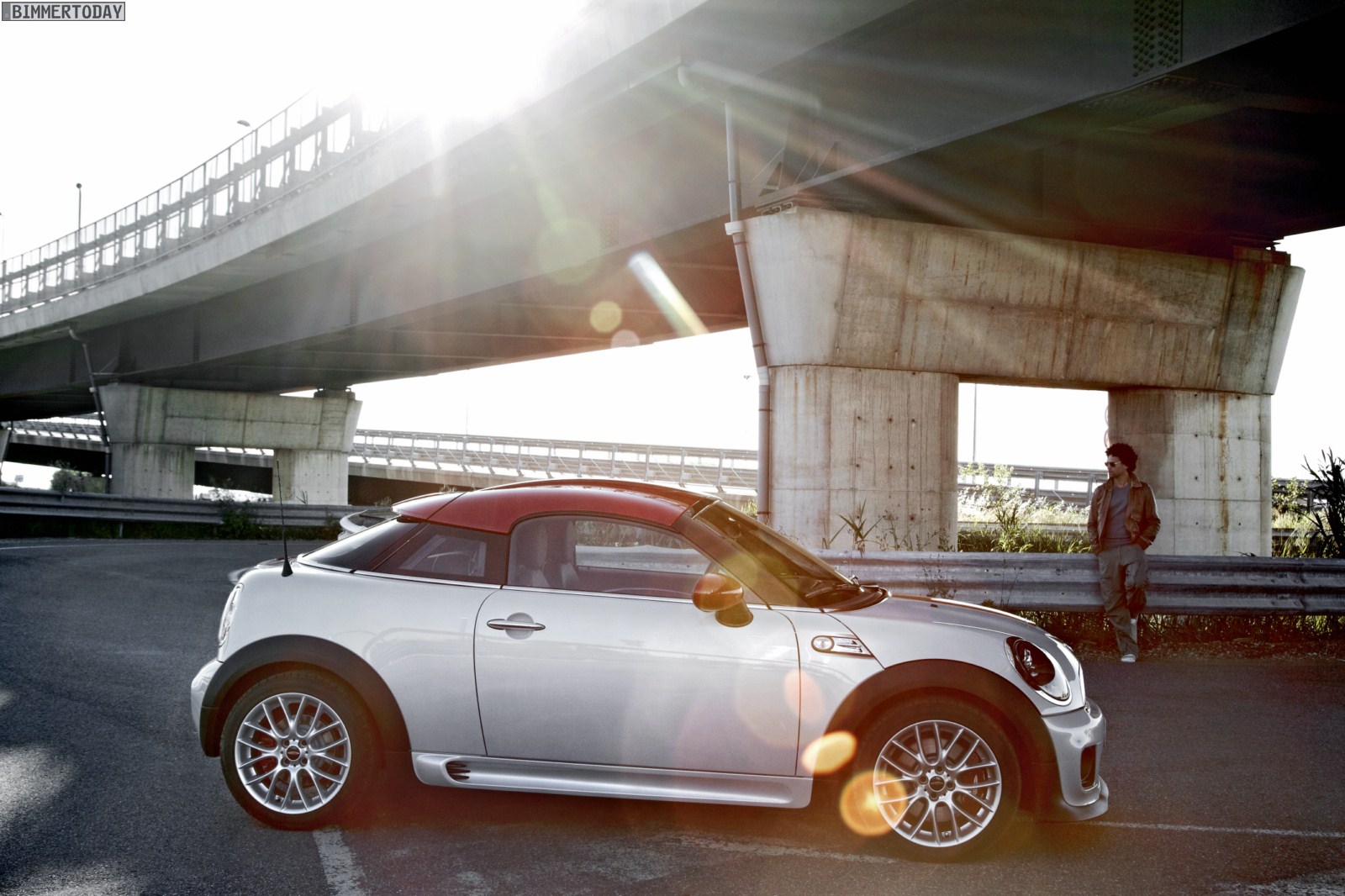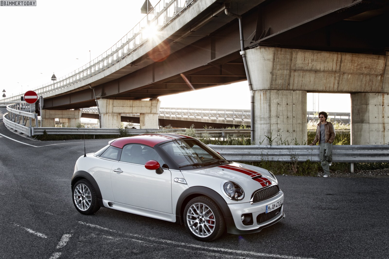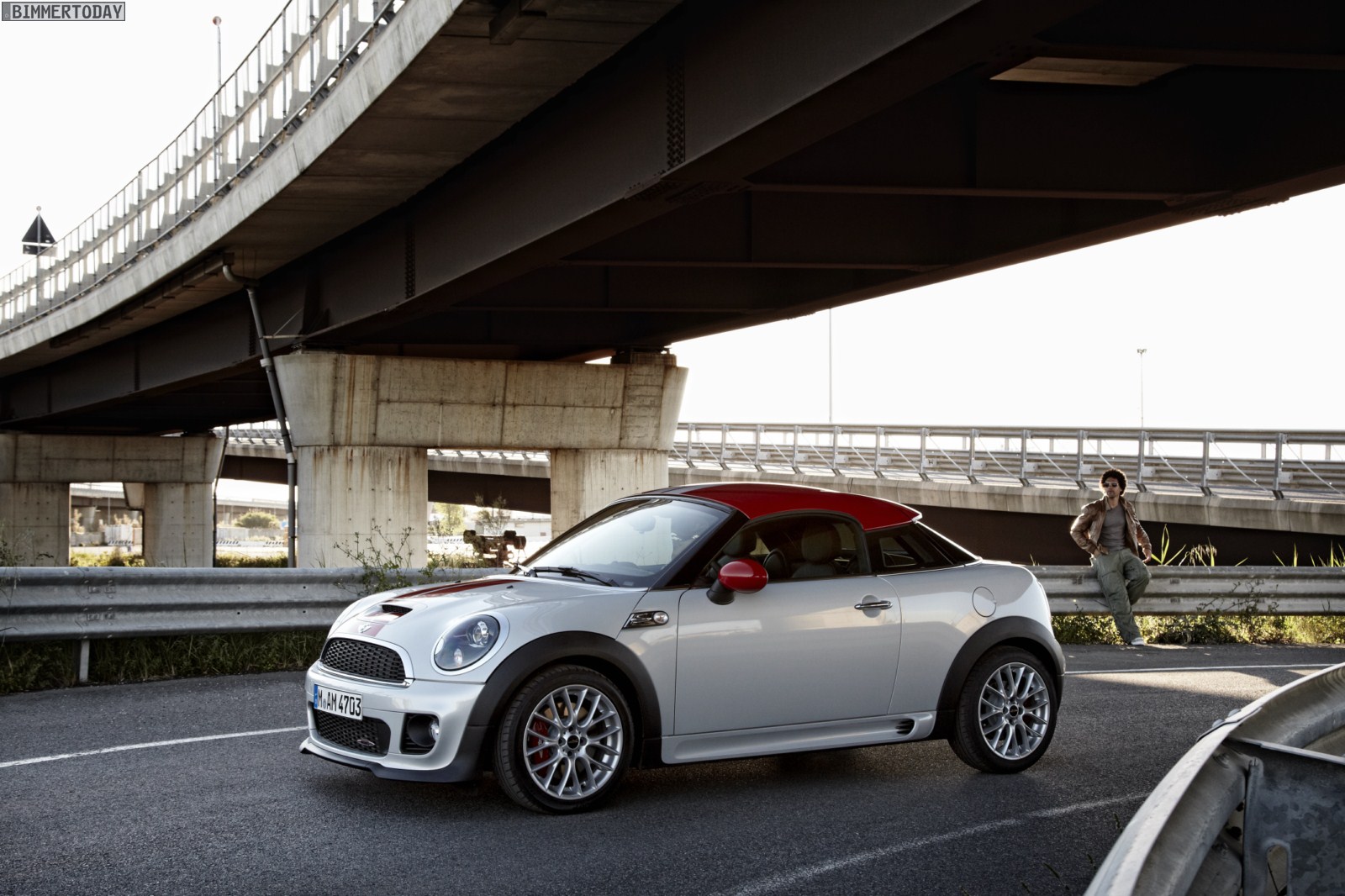 Zu sehen ist dabei vordergründig das 211 PS starke und bis zu 240 km/h schnelle Topmodell MINI John Cooper Works Coupé, das wie auf den Pressebildern in der Farbe White Silver Metallic mit schwarzen Felgen und Dach in Chili Red präsentiert wird. Das rote Dach wird wie bei den anderen Modellen ausschließlich für das Topmodell bestellbar sein und den JCW auch im Alltag gut erkennbar machen – wenn man von nachträglichen Folierungen und Lackierungen absieht.