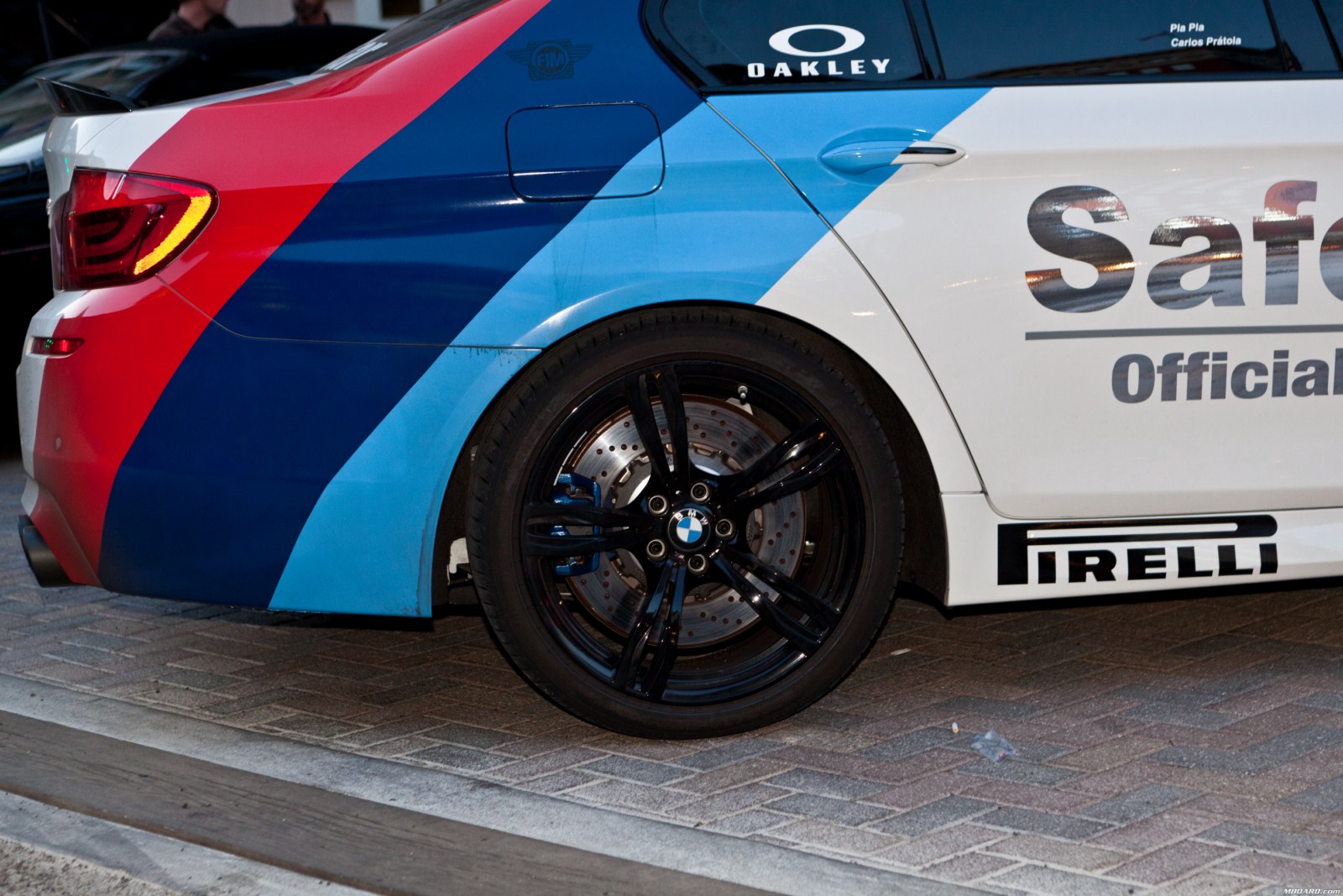 Sowohl optisch als auch akustisch besonders auffällig war die neue Limousine am vergangenen Wochenende im Rahmen der Moto GP zu bestaunen und dank M5Board.com können wir euch endlich auch ein paar Bilder davon präsentieren. In den nächsten Tagen wird es hoffentlich auch noch einige offizielle Bilder und Infos zu dem sportlichen Einzelstück geben, das für aufmerksame Beobachter gleich eine ganze Reihe interessanter Details bereithält, die zumindest teilweise später über BMW Performance erhältlich sein dürften.