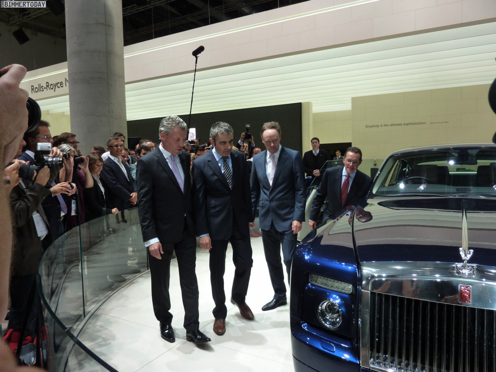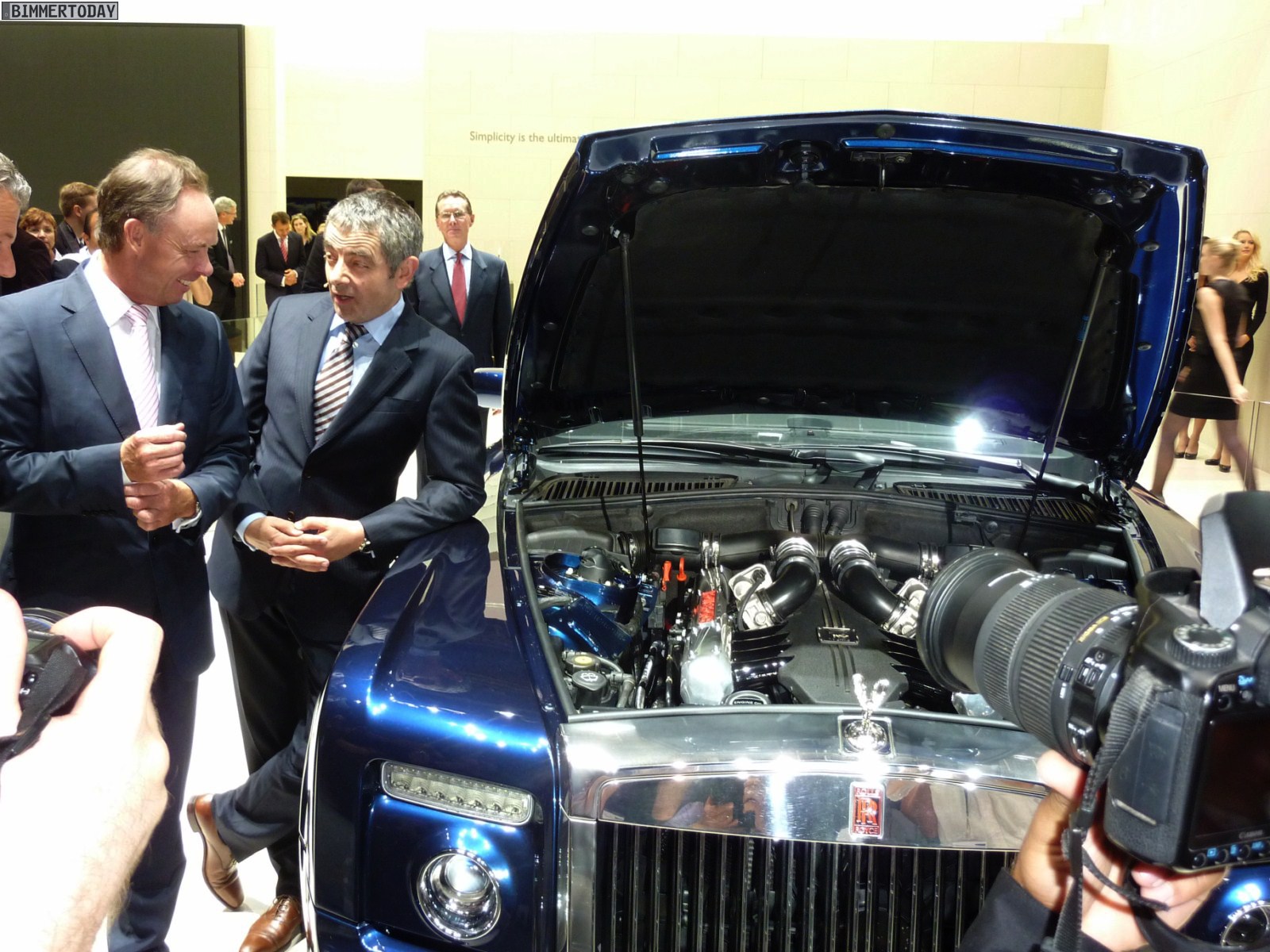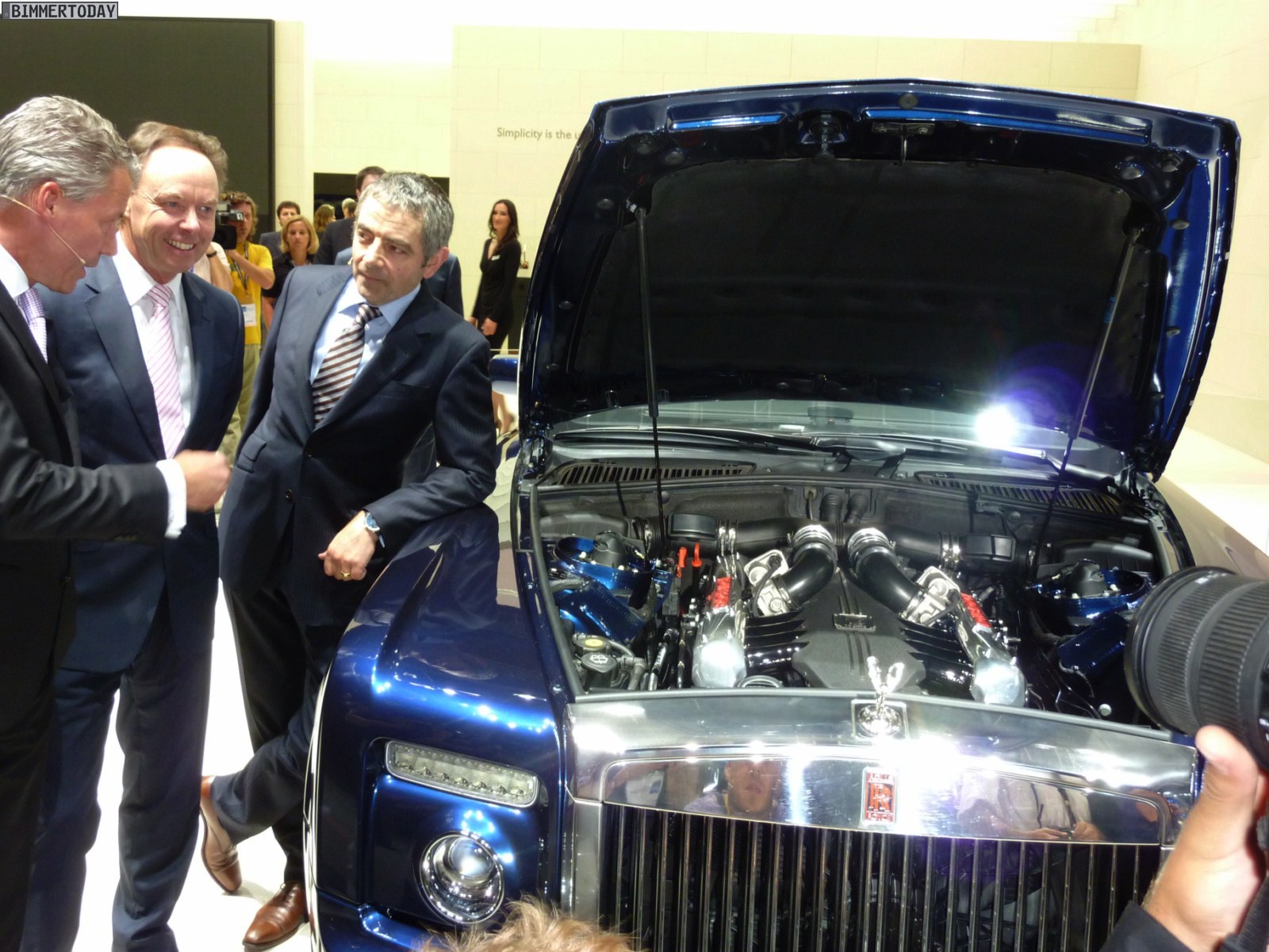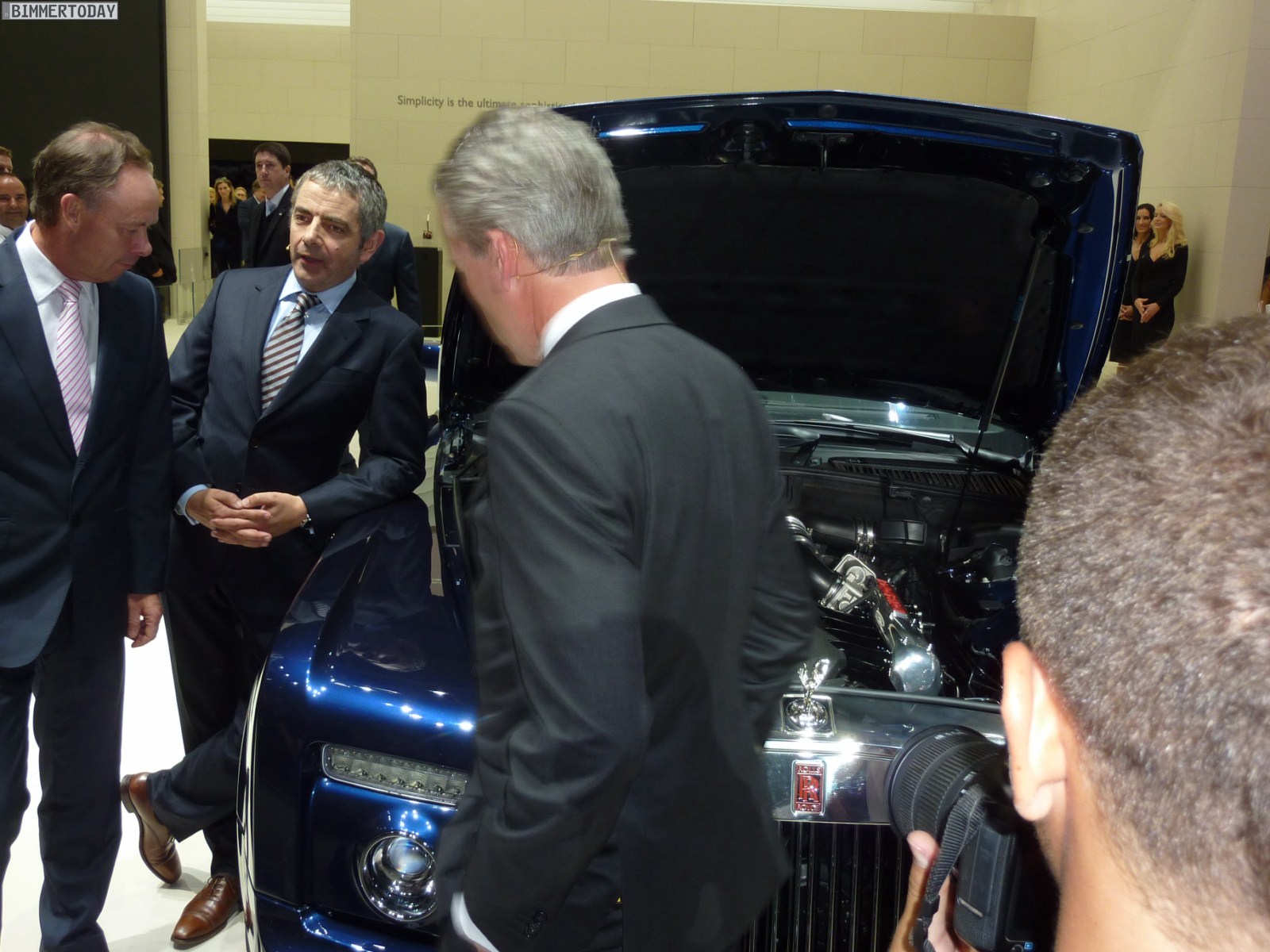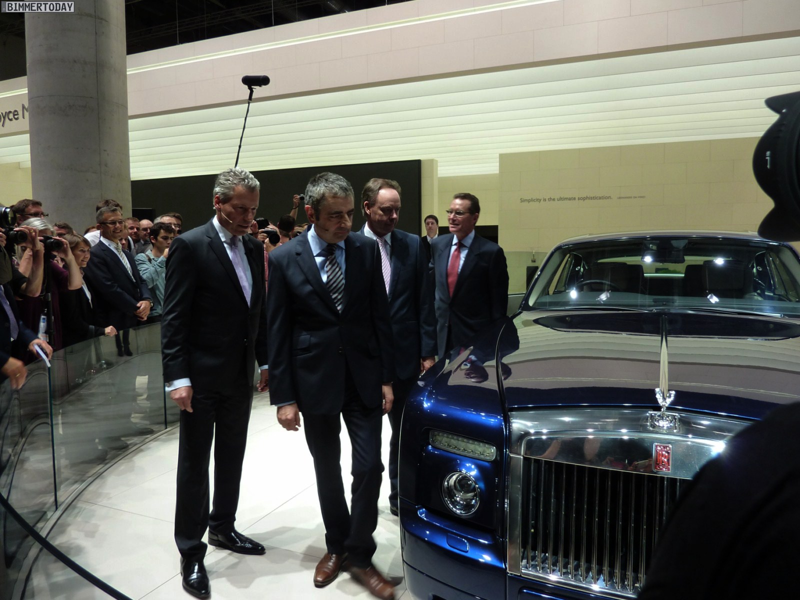 Wie angekündigt gab es auf dem Stand von Rolls-Royce heute hohen Besuch: Rowan Atkinson alias Meisterspion Johnny English zeigten sich in Frankfurt, um den demnächst in den Kinos startenden Film zu präsentieren und auf ein ganz besonderes Automobil hinzuweisen. Anders als ein bekannter Kollege von Johnny English hilft letzterem kein Aston Martin aus der Patsche, sondern stattdessen ein Rolls-Royce Phantom Coupé mit V16-Triebwerk.