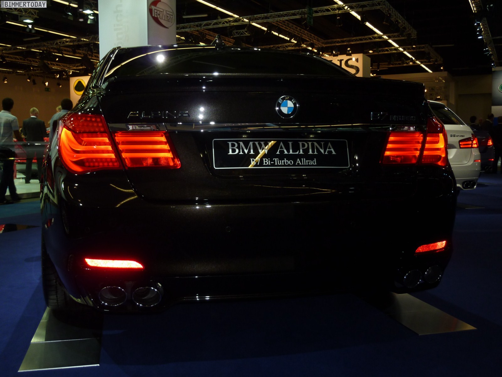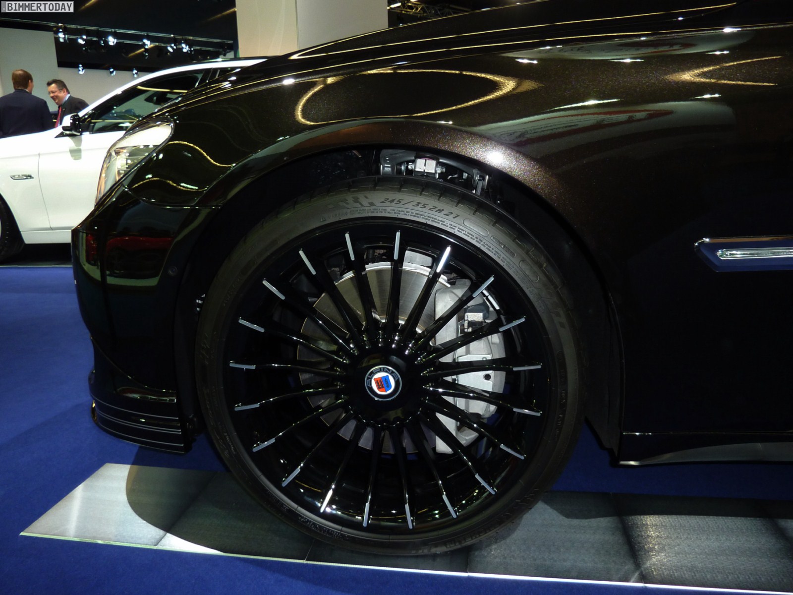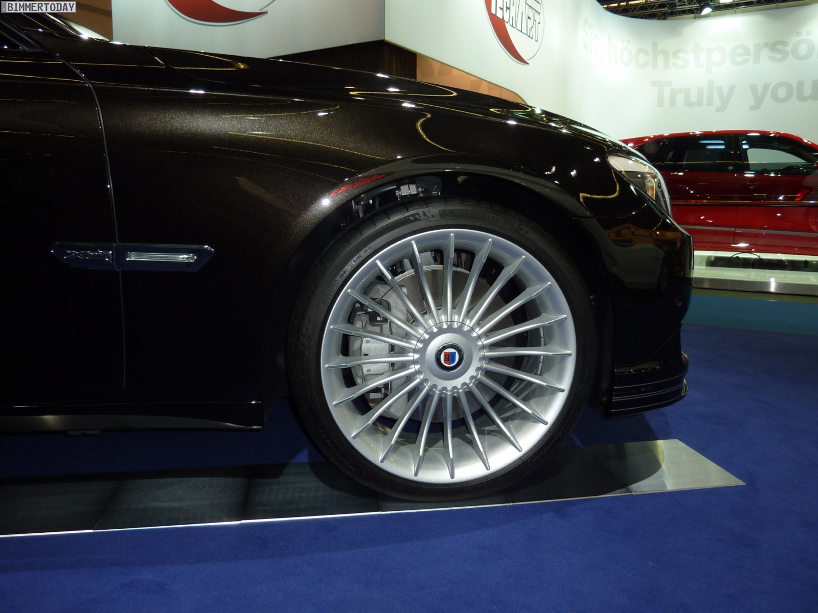 Neben dem BMW 530d xDrive F10 gibt es auf der IAA 2011 noch ein weiteres sehenswertes Fahrzeug in Citrinschwarz Metallic, das allerdings nicht in Halle 11 zu finden ist. Es handelt sich um eine BMW Alpina B7 Bi-Turbo Limousine in der Langversion (F02), die auf beiden Seiten verschiedenes Schuhwerk trägt: Zwar sind auf beiden Seiten die Alpina Classic-Felgen in 21 Zoll zu sehen, aber während in Fahrtrichtung rechts klassisches Silber zum Zuge kommt, trägt der B7 auf der linken Seite Schwarz.