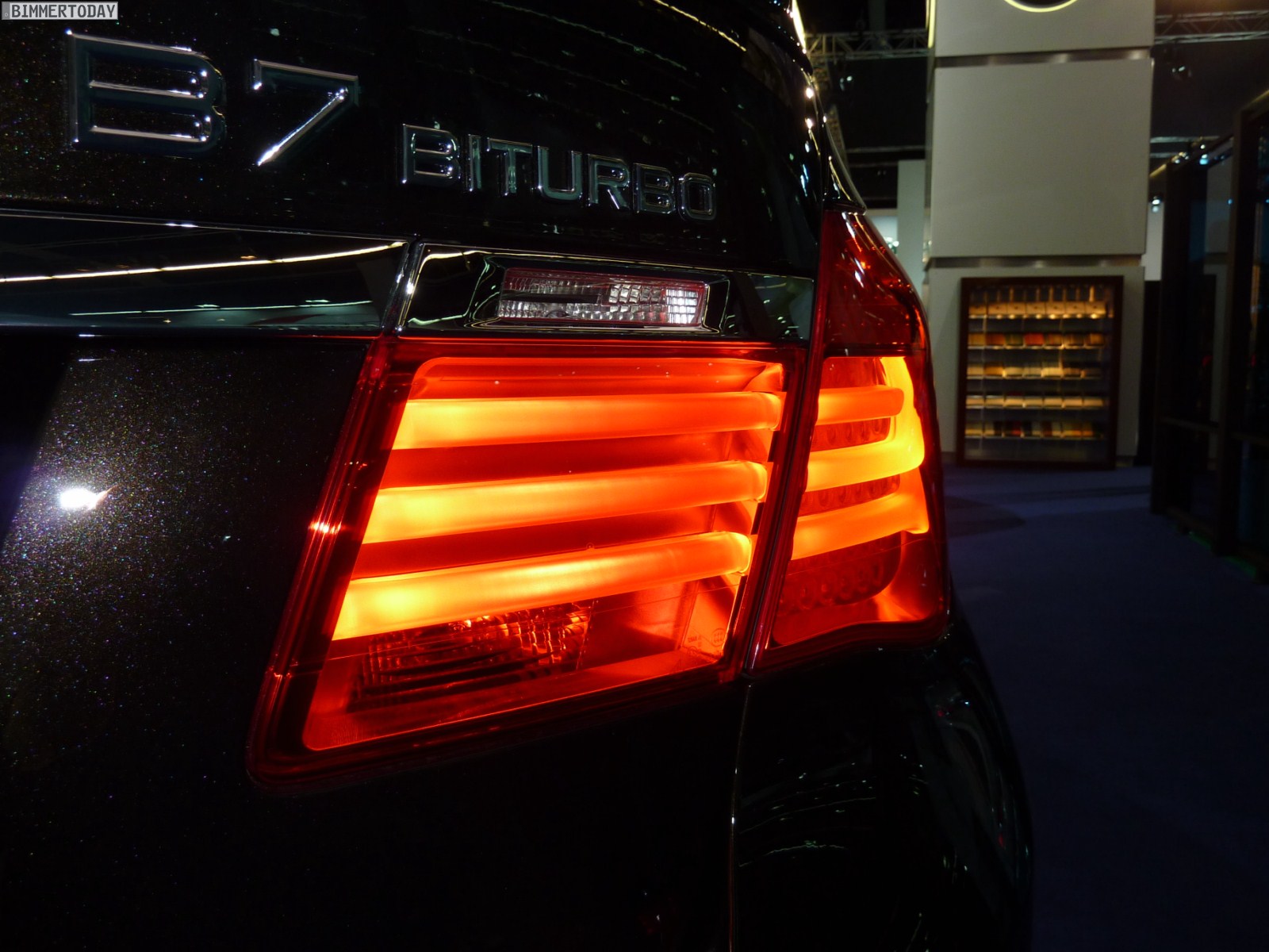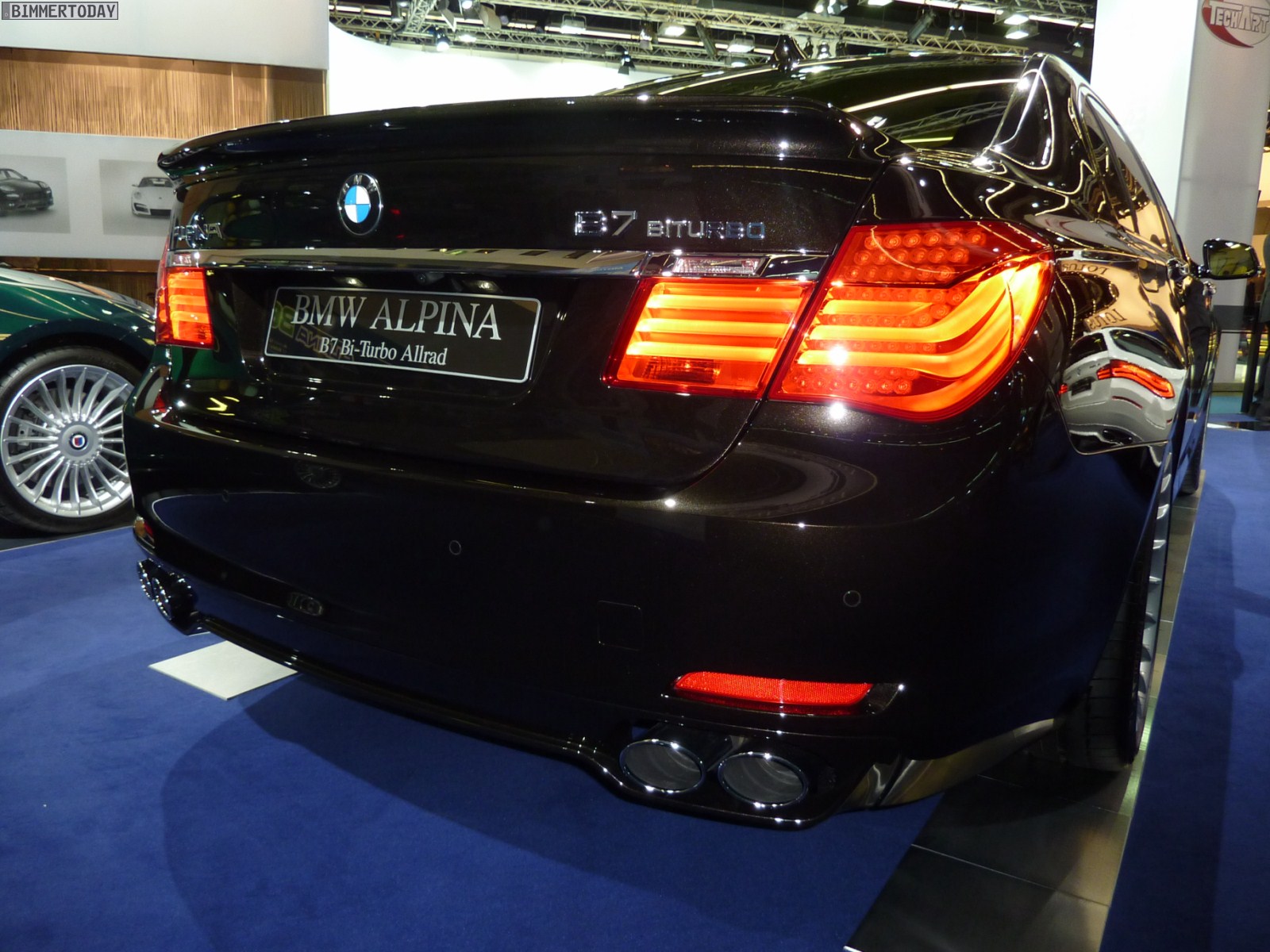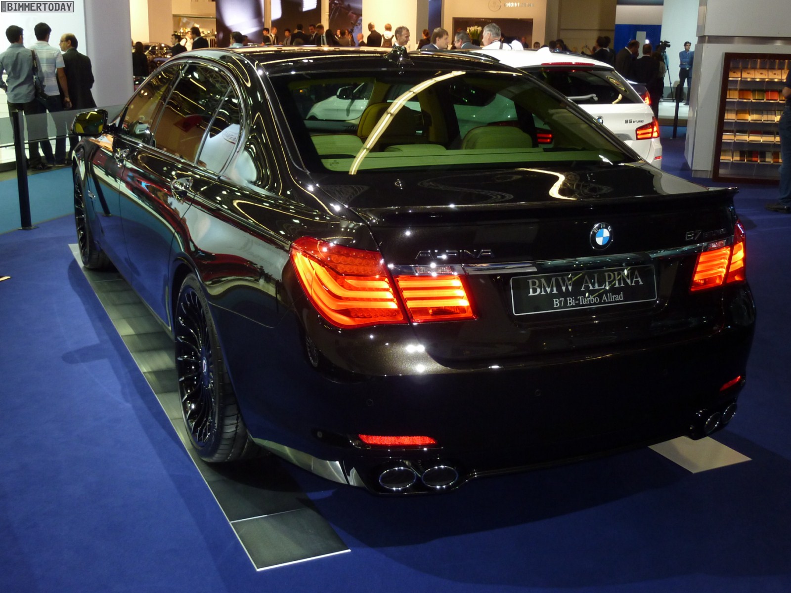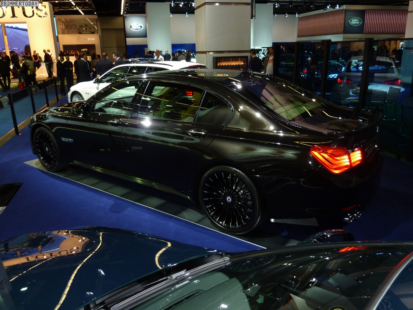 Neben dem BMW 530d xDrive F10 gibt es auf der IAA 2011 noch ein weiteres sehenswertes Fahrzeug in Citrinschwarz Metallic, das allerdings nicht in Halle 11 zu finden ist. Es handelt sich um eine BMW Alpina B7 Bi-Turbo Limousine in der Langversion (F02), die auf beiden Seiten verschiedenes Schuhwerk trägt: Zwar sind auf beiden Seiten die Alpina Classic-Felgen in 21 Zoll zu sehen, aber während in Fahrtrichtung rechts klassisches Silber zum Zuge kommt, trägt der B7 auf der linken Seite Schwarz.