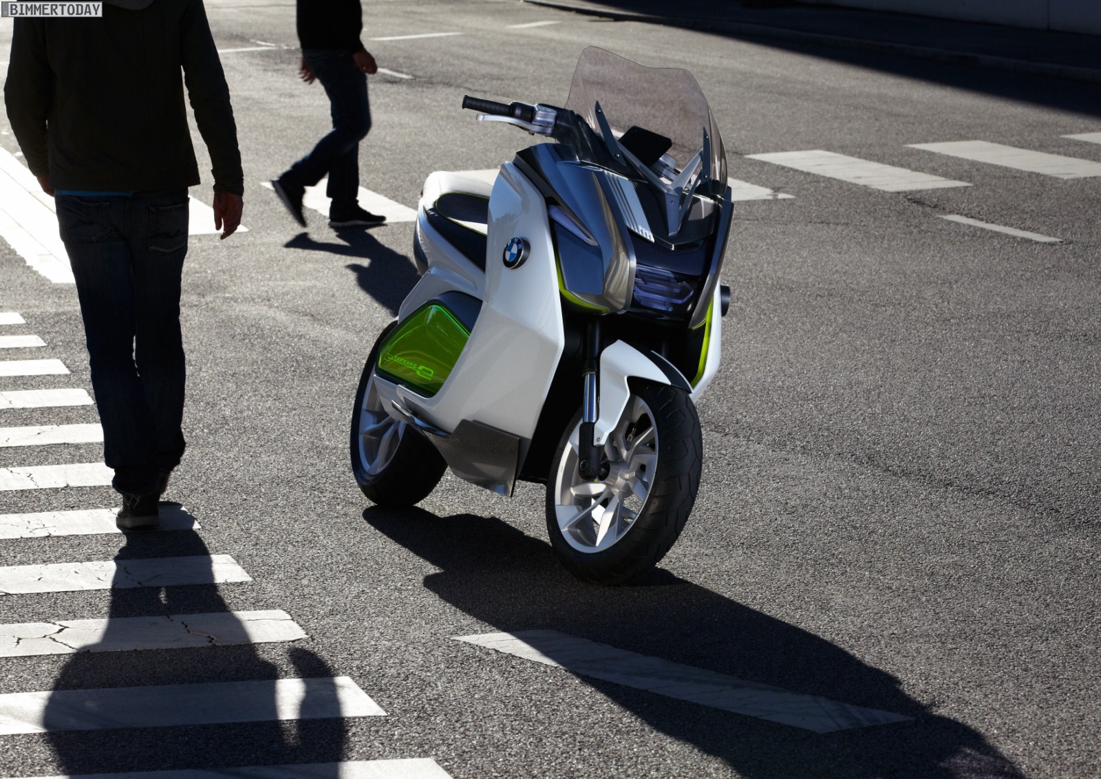 Beim Design hat BMW versucht, die typische Formensprache von BMW Motorrad mit Komponenten zu verbinden, die den modernen Elektroantrieb und das nachhaltige Gesamtkonzept auch optisch erkennbar machen. Die Farben Light White und das grünlich wirkende Electric Yellow spielen eine wichtige Rolle bei der Gestaltung und finden bei allen Verkleidungsteilen Verwendung, während Komponenten in dunkleren Farben die Technik des Scooters betonen sollen.