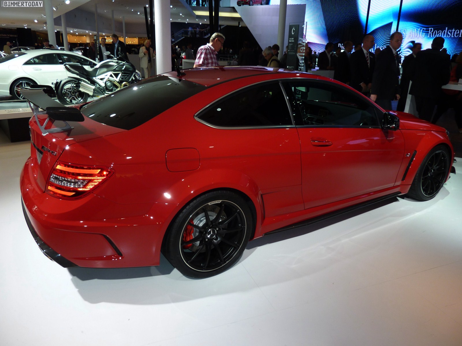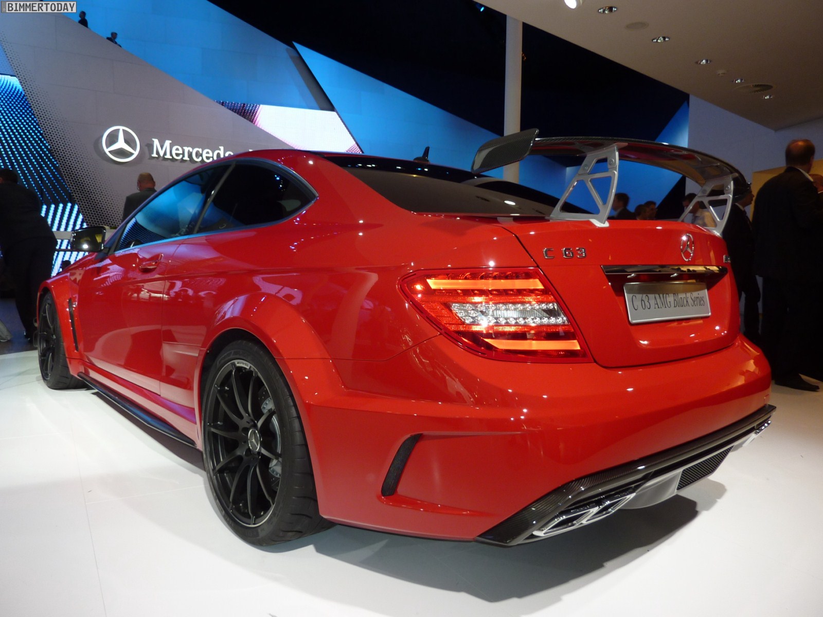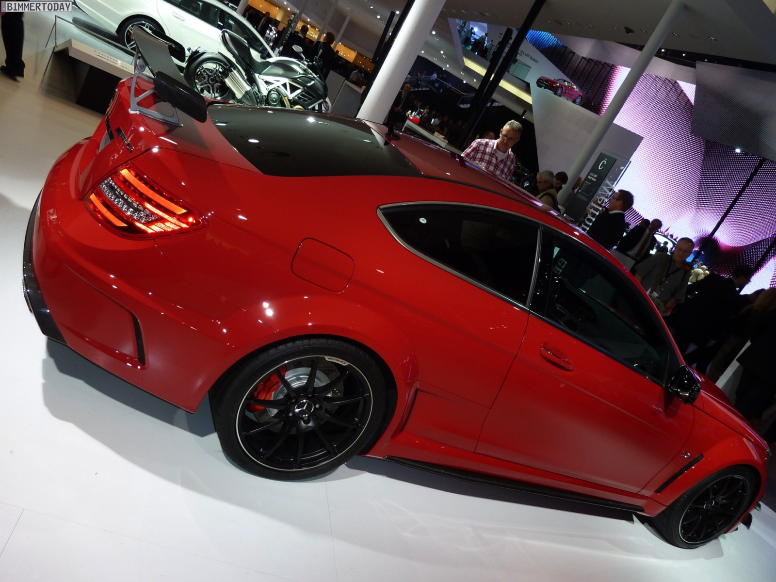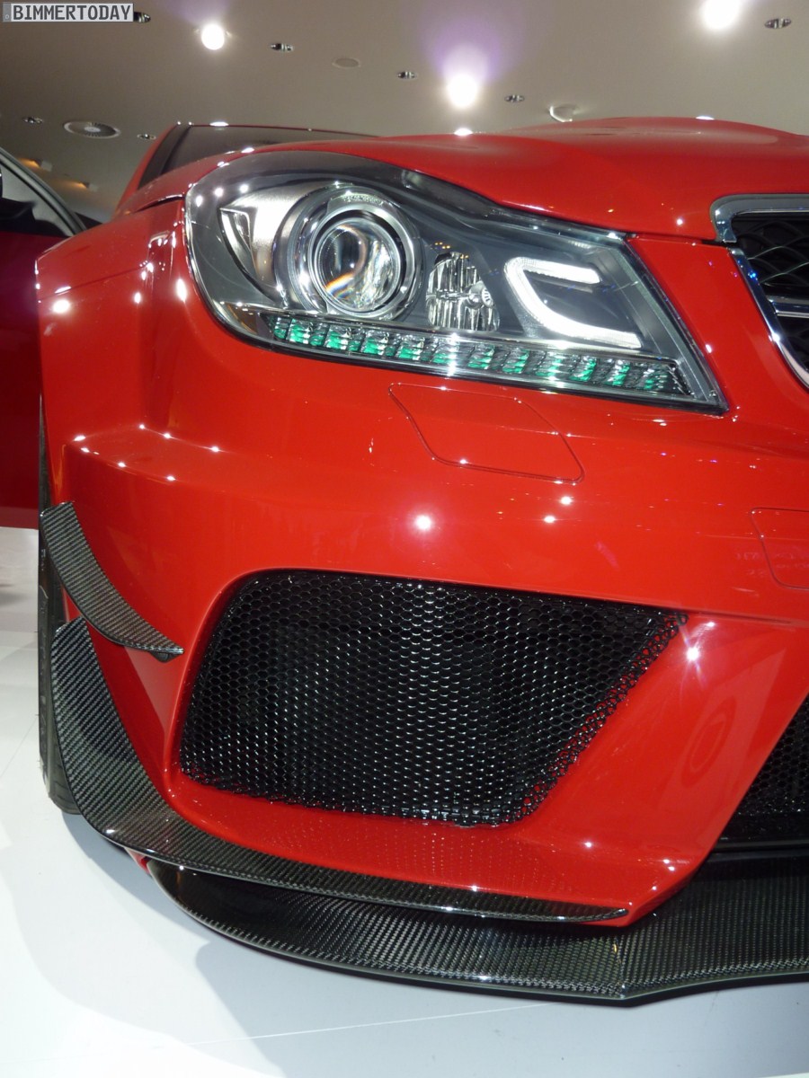 Deutlich greifbarer, schon heute zu kaufen und mindestens ebenso faszinierend ist das Mercedes-Benz C63 AMG Coupé Black Series, das über einen V8-Saugmotor mit 517 PS und einem maximalen Drehmoment von 620 Newtonmeter verfügt und in nur 4,2 Sekunden auf 100 km/h beschleunigen soll. In kräftigem Rot und mit zahlreichen Akzenten aus Carbon gibt das Coupé eine sehr gute Figur ab und wirkt ausgesprochen sportlich.
