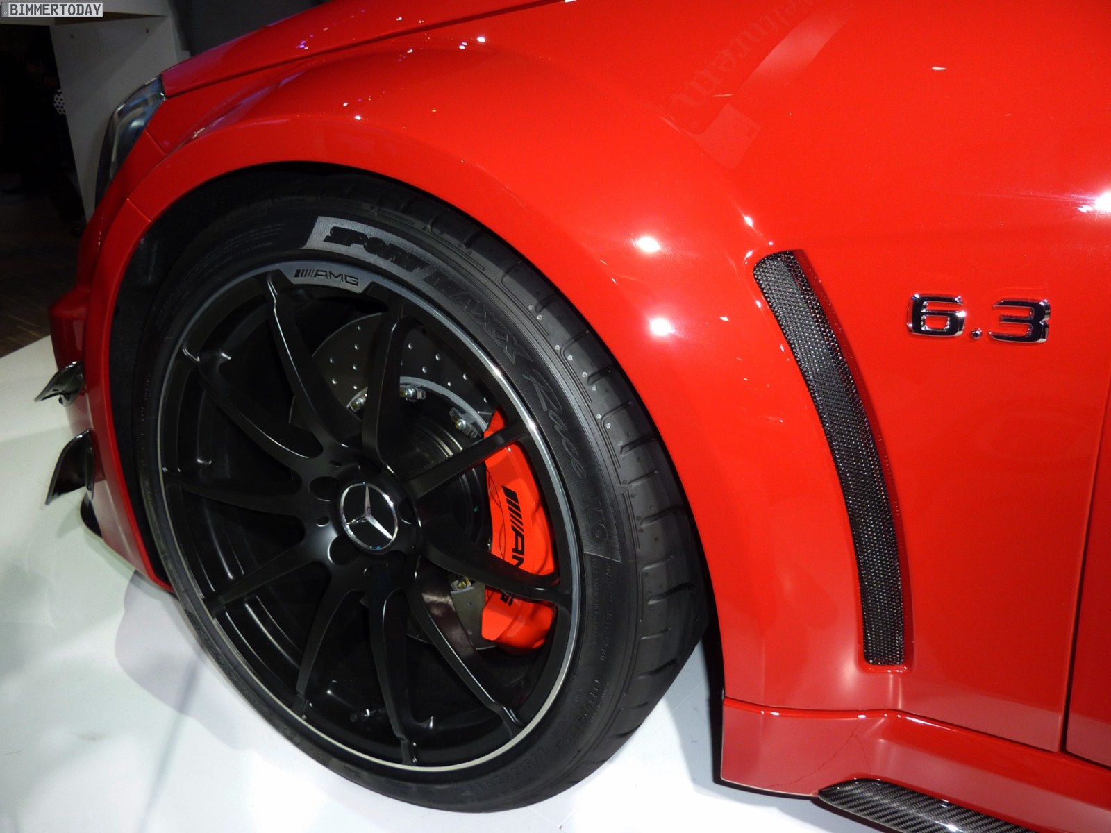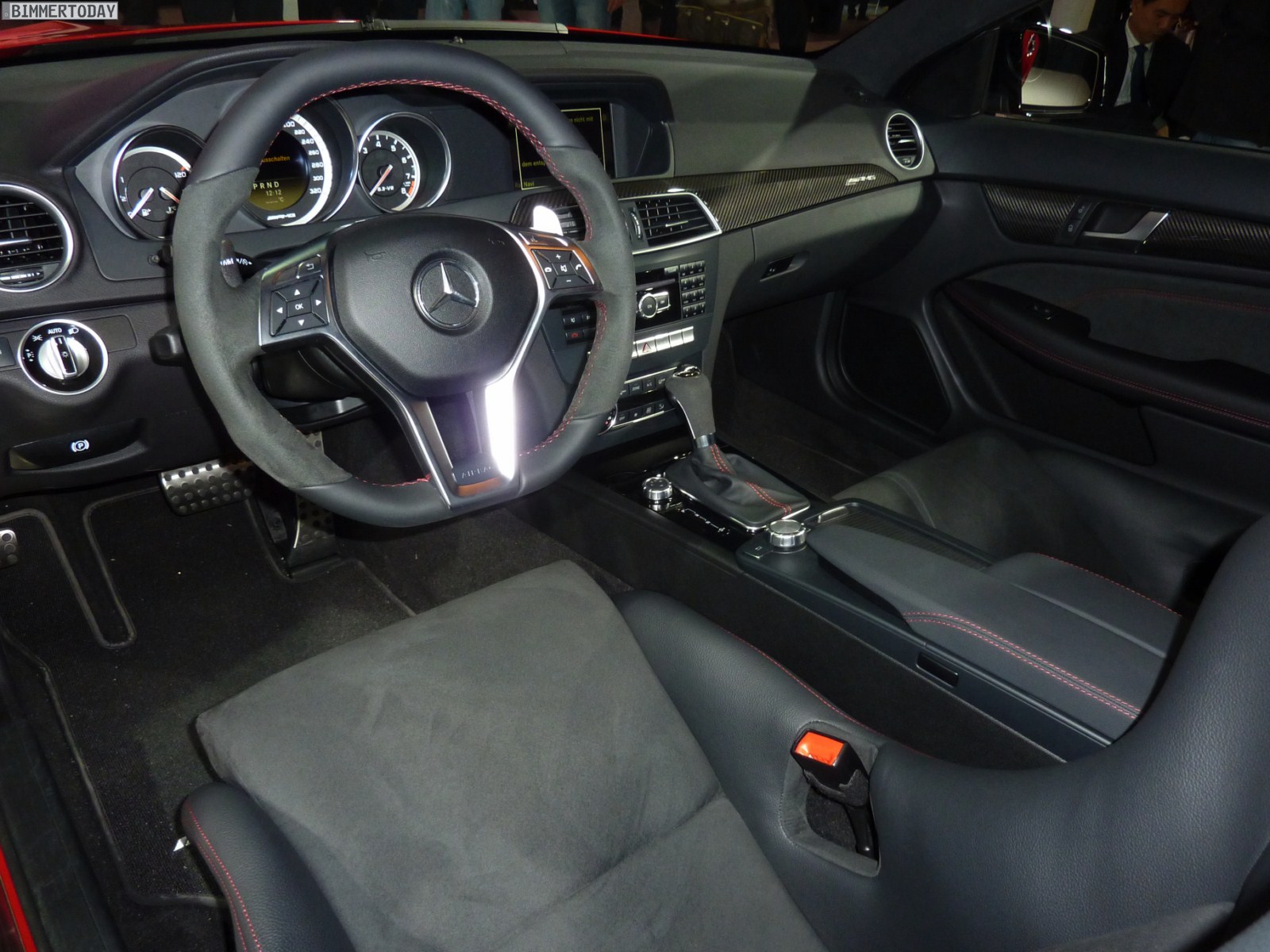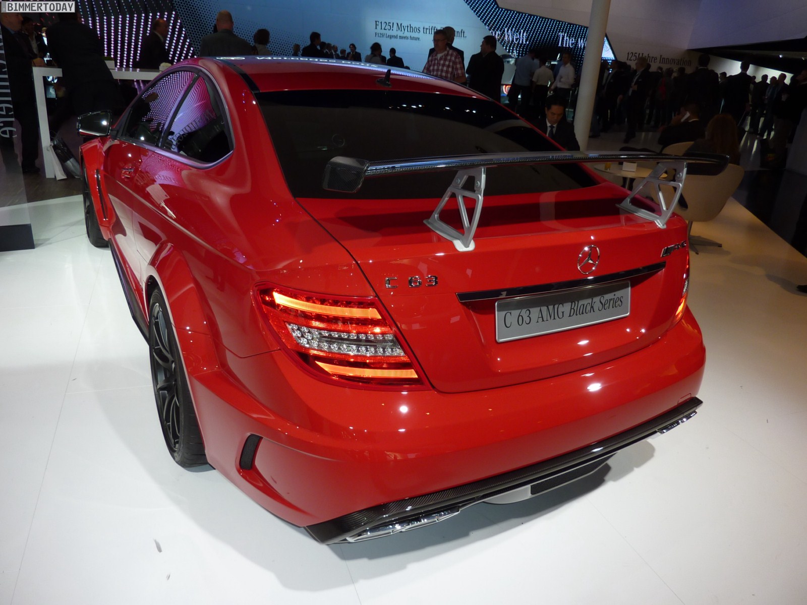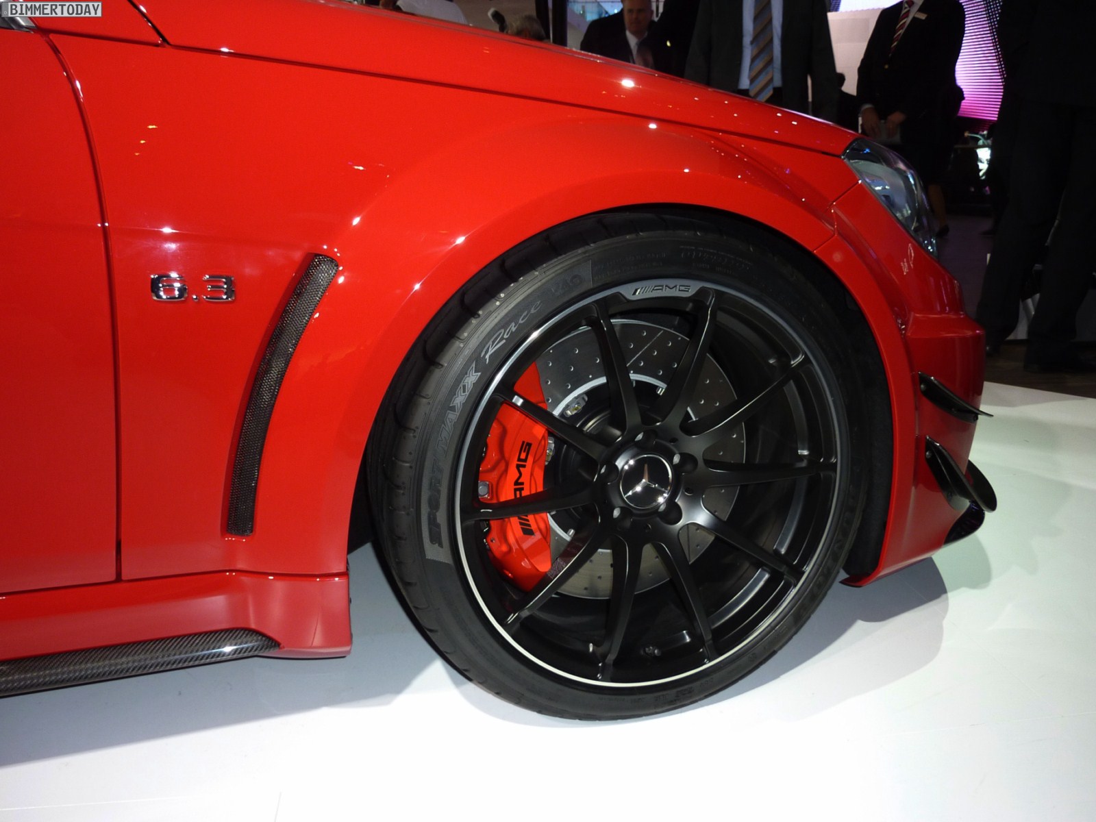 Deutlich greifbarer, schon heute zu kaufen und mindestens ebenso faszinierend ist das Mercedes-Benz C63 AMG Coupé Black Series, das über einen V8-Saugmotor mit 517 PS und einem maximalen Drehmoment von 620 Newtonmeter verfügt und in nur 4,2 Sekunden auf 100 km/h beschleunigen soll. In kräftigem Rot und mit zahlreichen Akzenten aus Carbon gibt das Coupé eine sehr gute Figur ab und wirkt ausgesprochen sportlich.