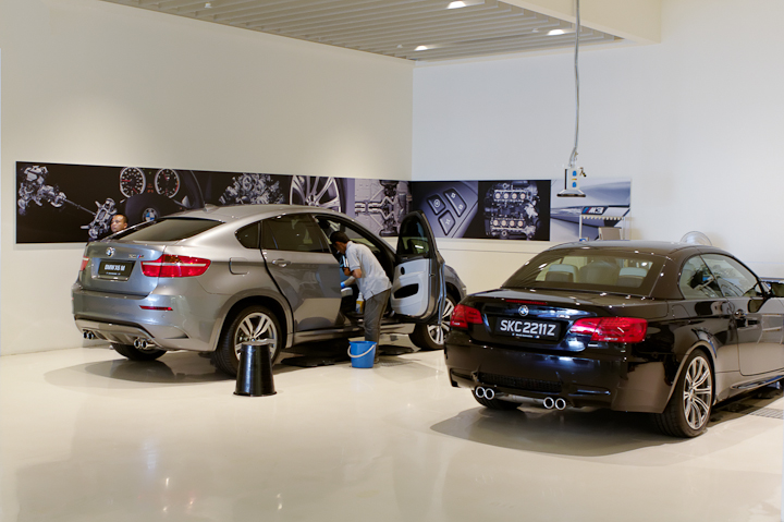 Unter den in Singapur von Spezialisten betreuten Fahrzeugen befinden sich neben Klassikern vom Schlage eines BMW 2002 tii auch Unikate wie ein BMW 1er M Coupé mit einer Motorhaube im Stil des Safety Cars der MotoGP sowie ein weiteres 1er M Coupé, das farblich aus der ab Werk erhältlichen und nur drei Farben umfassenden Reihe tanzt.