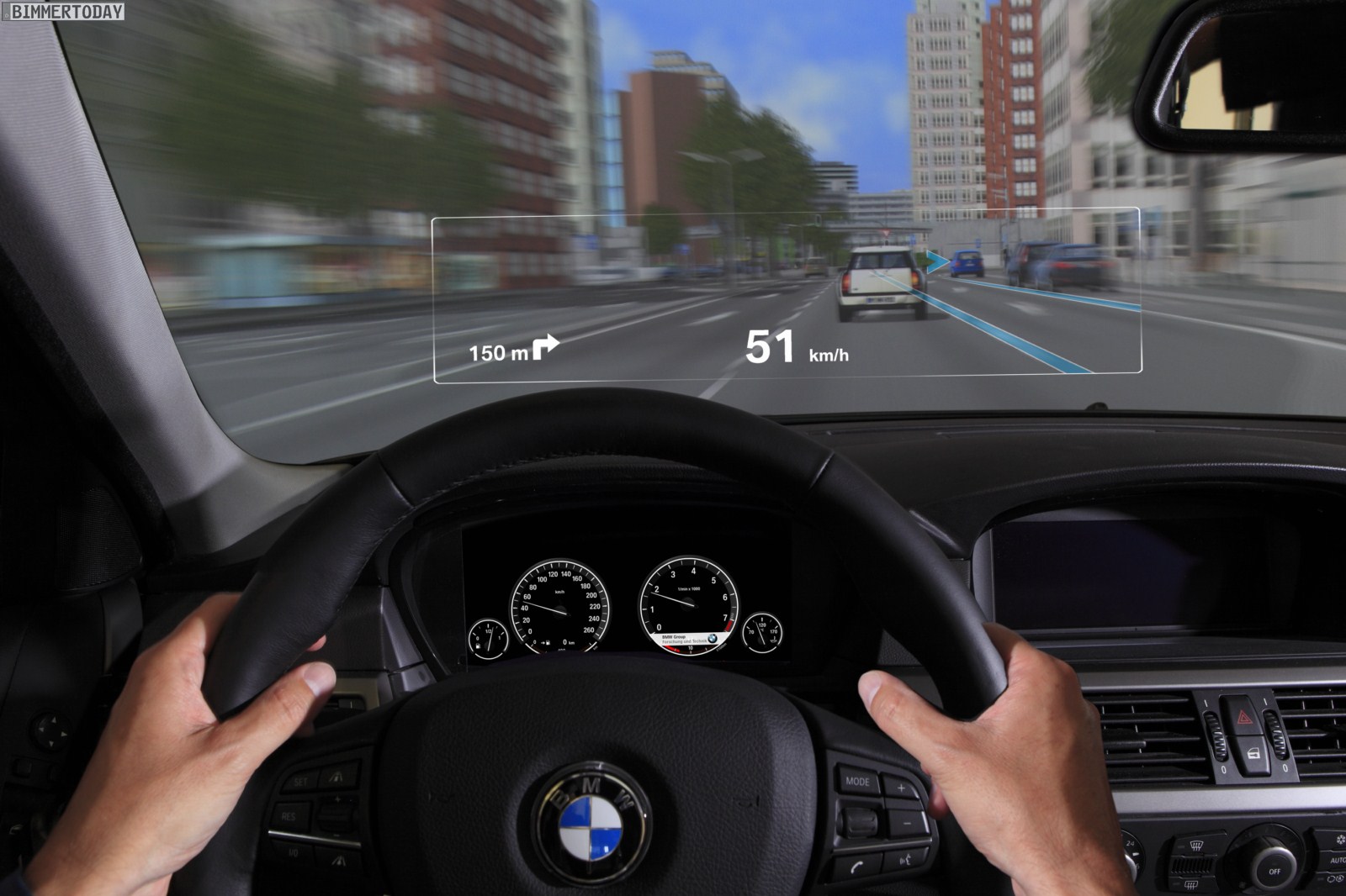 Schon seit 2003 können die Kunden in zahlreichen Fahrzeugen von BMW das Head Up Display genießen, das die Augen besonders auf langen Strecken spürbar schont und häufige Blickwechsel von der Straße ins Cockpit und die damit verbundene Umstellung von Fern- auf Nahsicht fast komplett überflüssig macht. Geschwindigkeit, Warnungen und Navigationshinweise werden direkt ins Blickfeld des Fahrers projiziert und scheinen über der Motorhaube zu schweben, weshalb der Fahrer den Blick nur leicht senken muss und die Straße nie aus den Augen verliert.