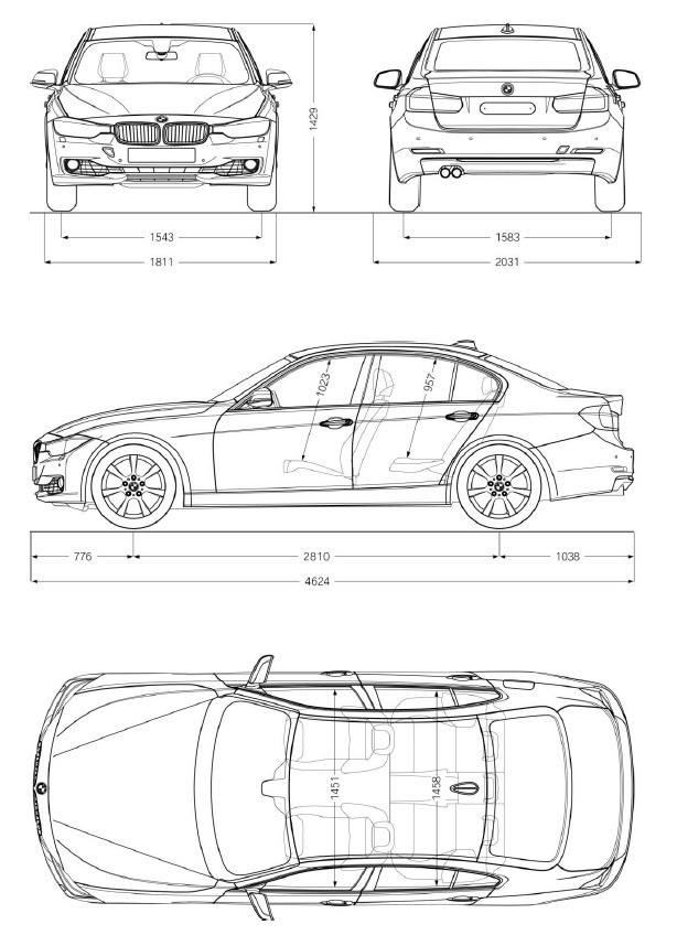 Der 3er wächst auf eine Gesamtlänge von 4.624 Millimeter, ist dabei 1.811 Millimeter breit und 1.429 Millimeter hoch. In der Länge hat der 3er folglich um 9,3 Zentimeter zugelegt, der Radstand wuchs um fünf Zentimeter. Die Spurweite wuchs an der Vorderachse um 3,7 und an der Hinterachse um 4,8 Zentimeter.
