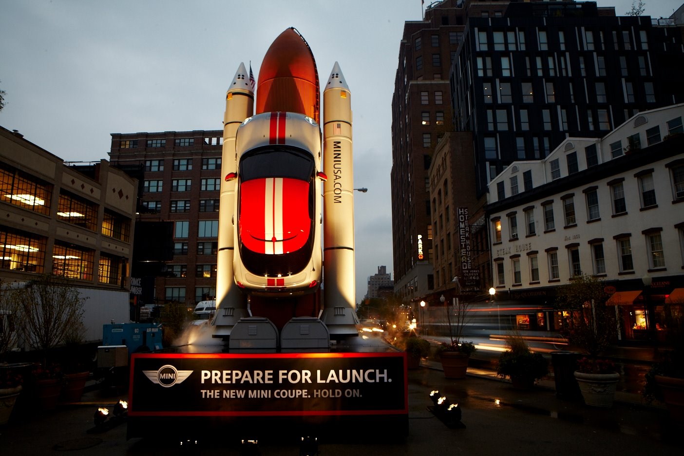 Mit Menschen in den typischen weißen Raumfahrer-Anzügen und einer 30 Fuß hohen Raketennachbildung wird derzeit in New York City darauf hingewiesen, dass der sportliche Zweisitzer demnächst auch in den USA verfügbar ist. MINI wird außerdem die New York City Halloween-Parade mit etwa zwei Millionen Besuchern nutzen, um auf den Launch des bisher sportlichsten MINI aufmerksam zu machen.