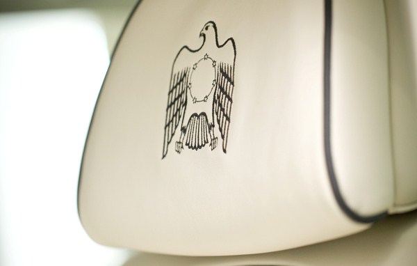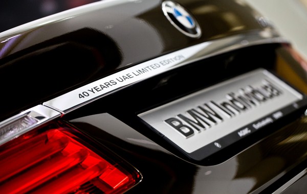 Alle 40 Einheiten werden in Marrakeschbraun lackiert, im Innenraum sorgt helles Merino-Leder in der Farbe Platinum für luxuriöses Flair. Das Wappen der Vereinigten Arabischen Emirate ist auf den Kopfstützen, dem Armaturenbrett und dem iDrive-Controller untergebracht, außerdem trägt die Zierleiste zwischen den Heckleuchten einen unübersehbaren Hinweis auf das limitierte Sondermodell.