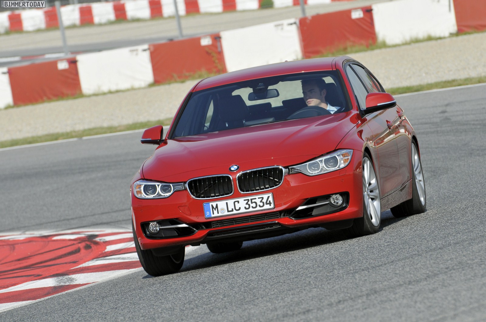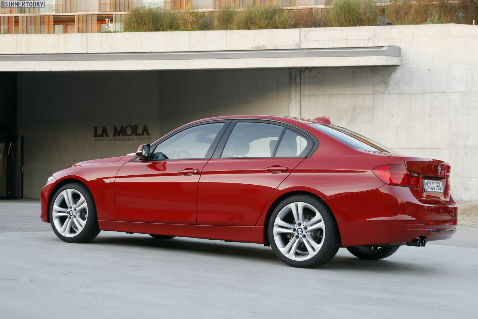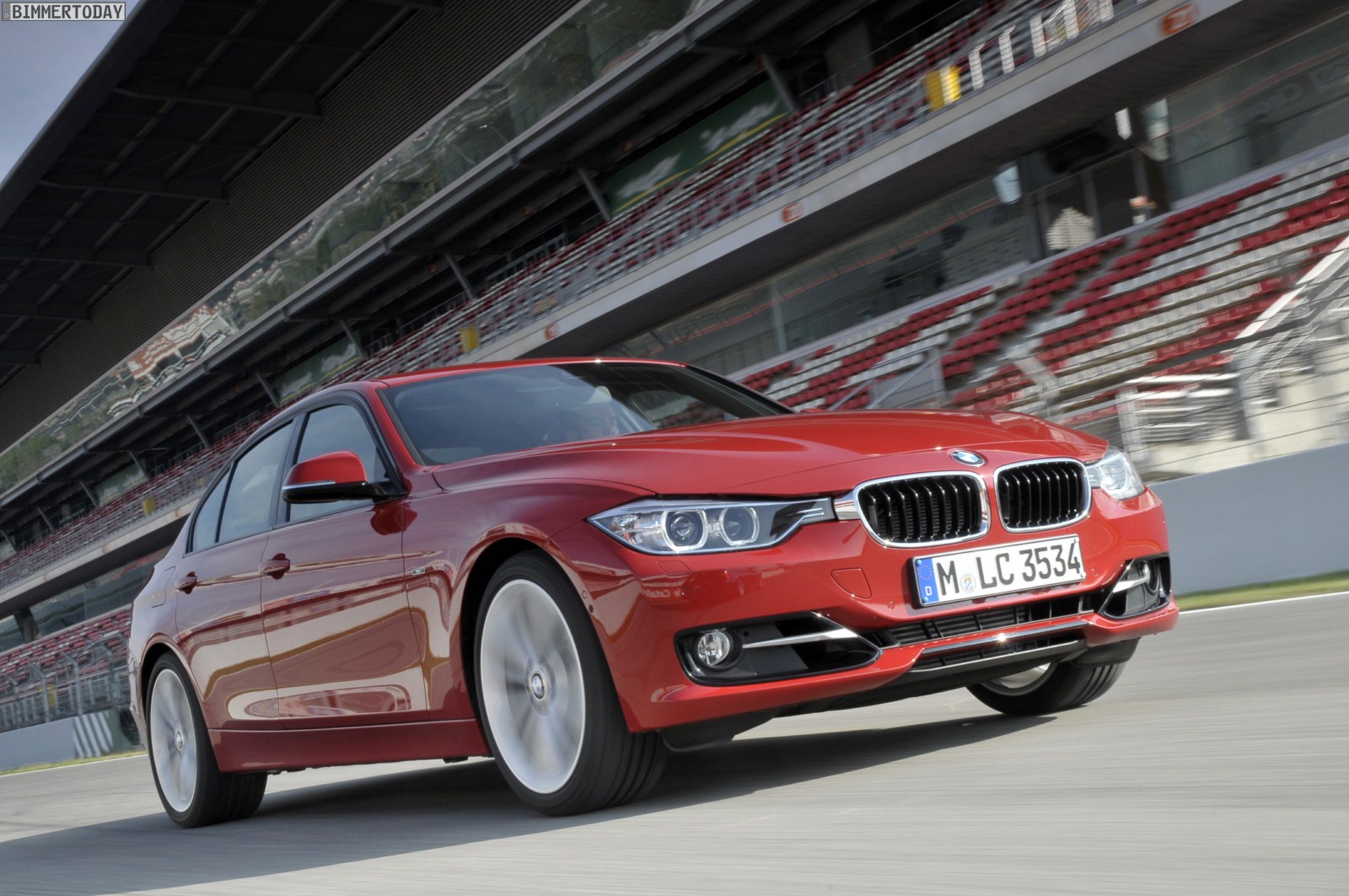 Direkt aus Barcelona kommen nun zahlreiche neue Bilder und Video-Aufnahmen zu Sport Line und Modern Line, wobei wir uns zunächst mit der sportlicheren Ausprägung befassen wollen. Gezeigt wird die Sport Line am Beispiel eines in Karmesinrot (uni) lackierten BMW 328i F30 mit aufgeladenem Vierzylinder N20B20 und 245 PS. Der vorläufige Basis-Benziner benötigt als Handschalter 5,9 Sekunden für den Sprint auf 100 km/h und ist mit einem Normverbrauch von 6,4 Liter auf 100 Kilometer angegeben. Mit Achtgang-Automatikgetriebe sinkt der Normverbrauch um 0,1 Liter, dafür dauert der Standardsprint zwei Zehntelsekunden länger.