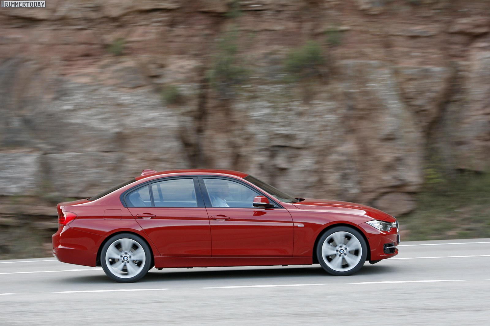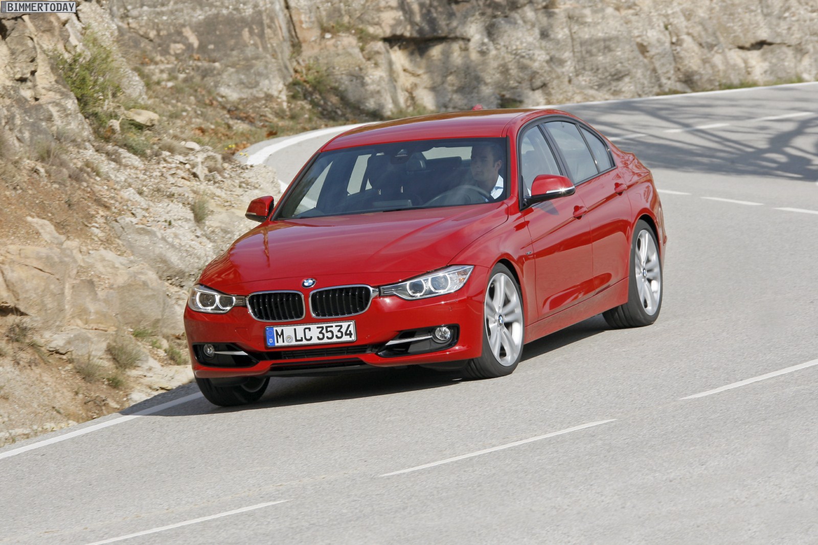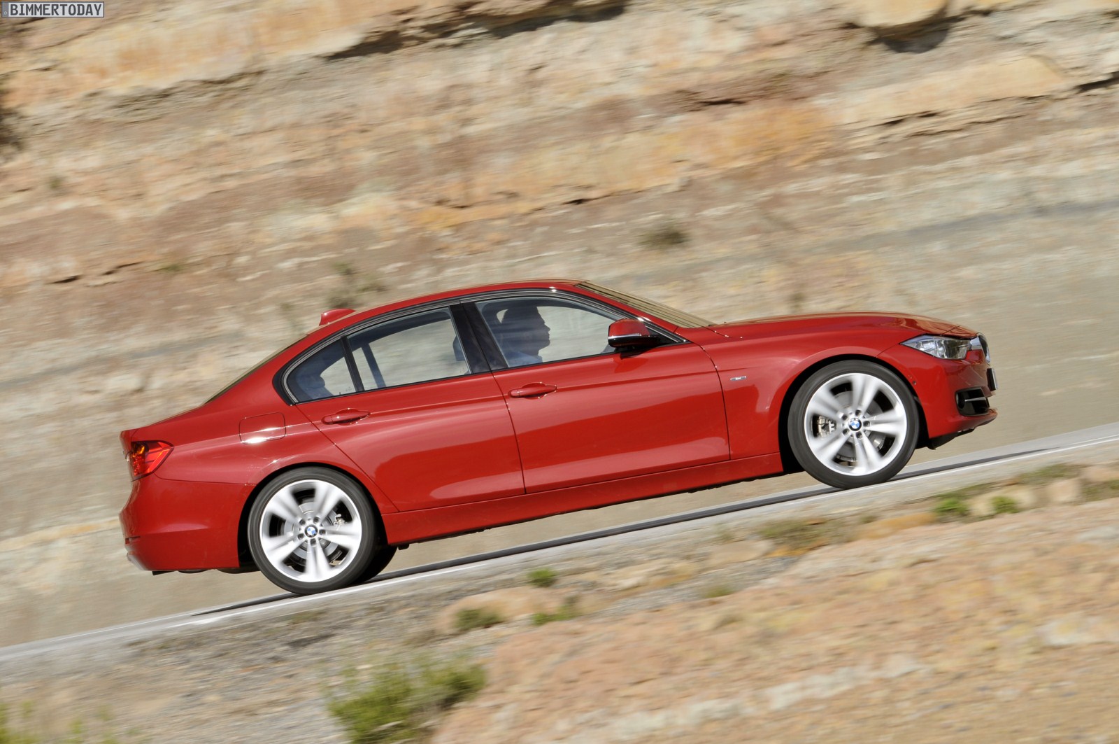 Direkt aus Barcelona kommen nun zahlreiche neue Bilder und Video-Aufnahmen zu Sport Line und Modern Line, wobei wir uns zunächst mit der sportlicheren Ausprägung befassen wollen. Gezeigt wird die Sport Line am Beispiel eines in Karmesinrot (uni) lackierten BMW 328i F30 mit aufgeladenem Vierzylinder N20B20 und 245 PS. Der vorläufige Basis-Benziner benötigt als Handschalter 5,9 Sekunden für den Sprint auf 100 km/h und ist mit einem Normverbrauch von 6,4 Liter auf 100 Kilometer angegeben. Mit Achtgang-Automatikgetriebe sinkt der Normverbrauch um 0,1 Liter, dafür dauert der Standardsprint zwei Zehntelsekunden länger.