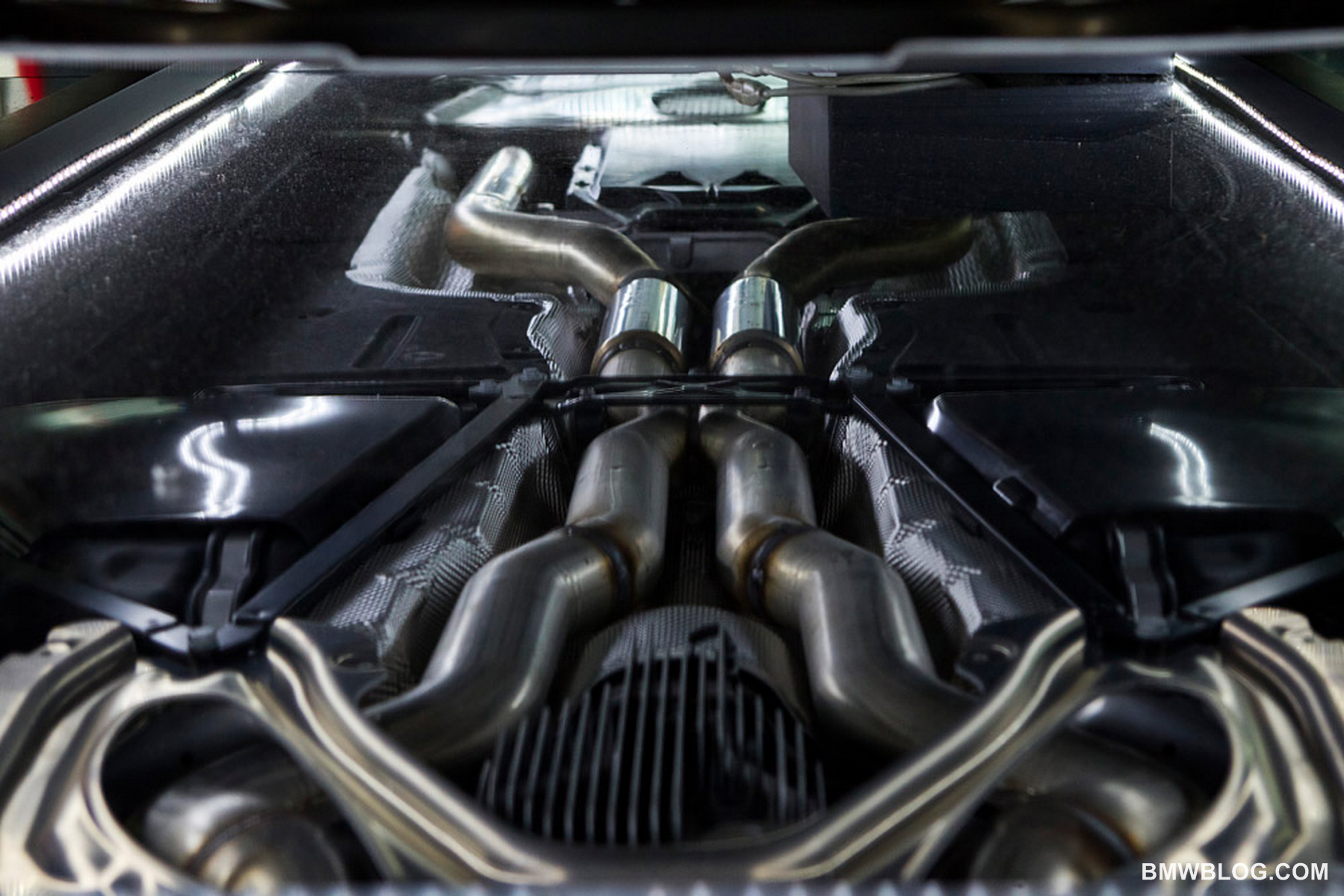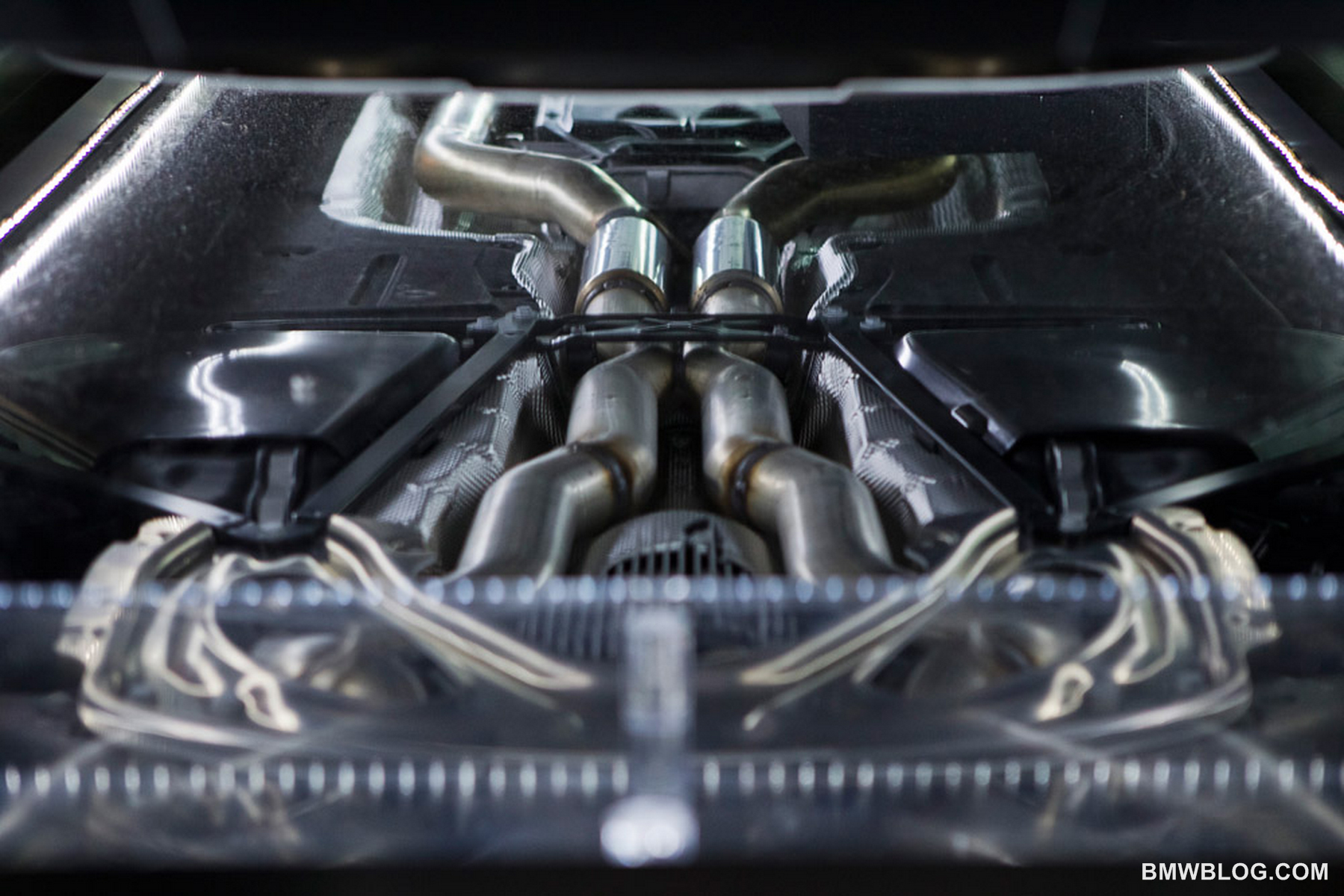 Wie schon in der Vergangenheit ermöglicht BMW auch auf der L.A. Auto Show einen Blick unters Auto und beschert uns somit einen Eindruck von Abgasanlage und Unterboden des neuen BMW M5 F10.