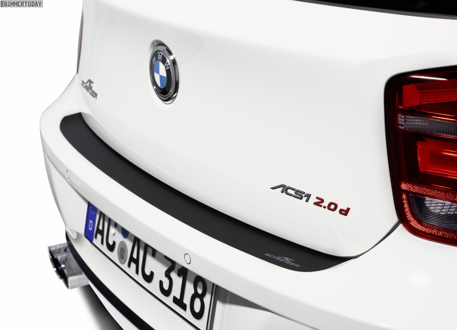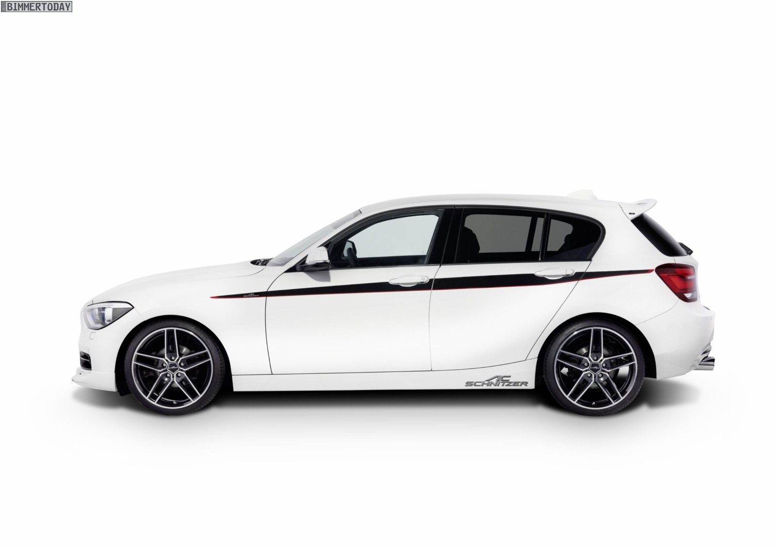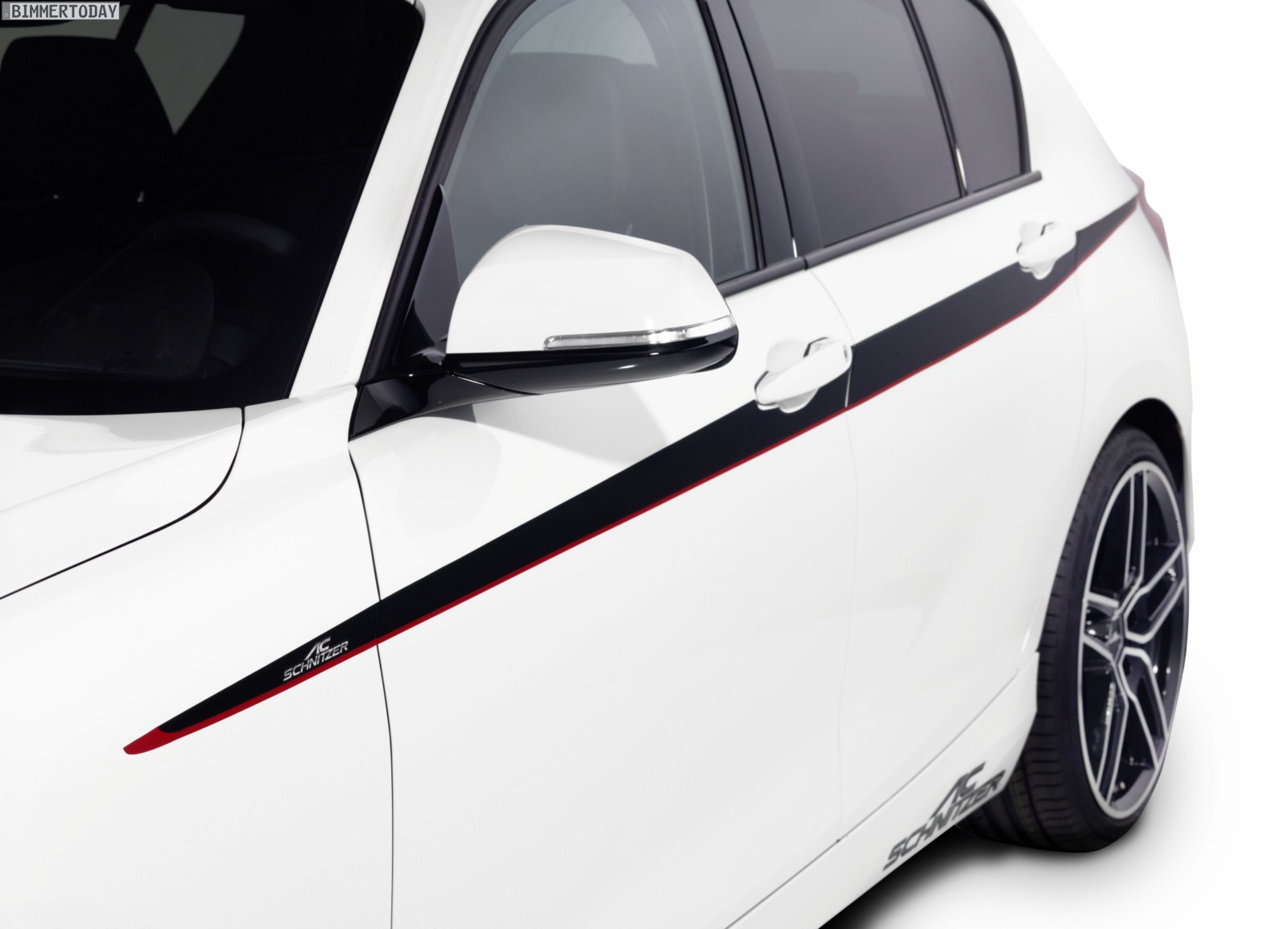 Während die Leistung des 118d von 143 auf 171 PS klettert, steigert man in Aachen die Leistung des BMW 120d F20 von 184 auf 210 PS. Die Seitenansicht erhält auf Wunsch einen schwarzen Akzent in Form eines Streifens mit Schnitzer-Schriftzug, der die seitliche Lichtkante betont und vor allem in Kombination mit hellen Außenfarben zur Geltung kommt.
