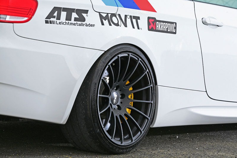 Auch bei den Felgen wurde aufs Gewicht geachtet: Die ATS Superlight-Leichtmetallräder in 19 Zoll wiegen lediglich 7,9 Kilogramm und unterbieten die Serienfelge somit um 2,3 Kilogramm. Die geringen ungefederten Massen tragen zum leichtfüßigen Handling des M3 460 cs bei, der nach dem Tuning nicht nur faszinierenden Sound, sondern auch 460 PS und ein maximales Drehmoment von 460 Newtonmeter bietet.