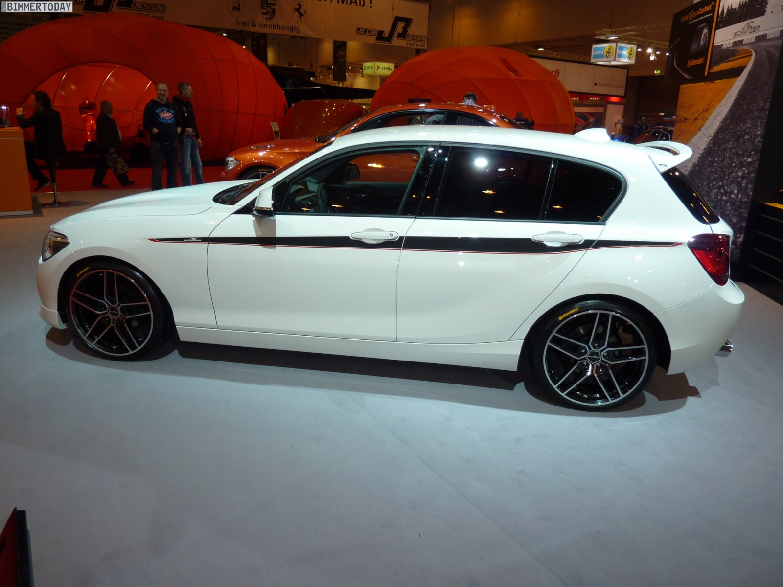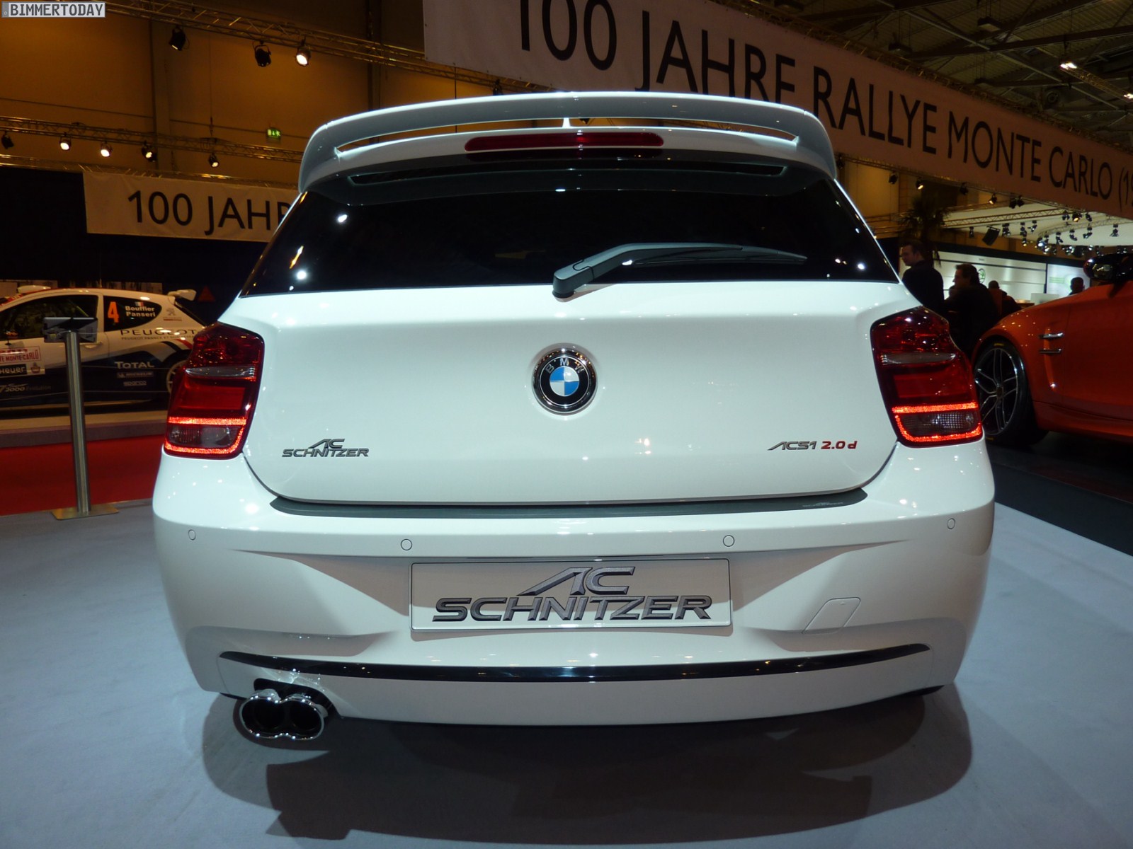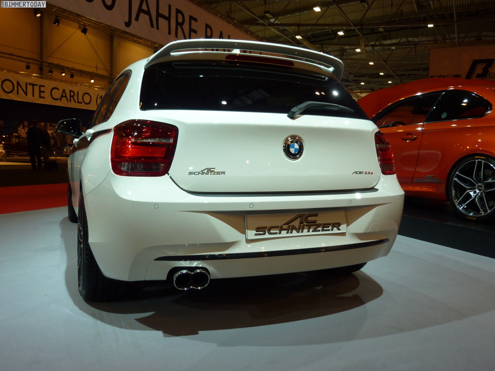 Neben dem BMW 6er Coupé by AC Schnitzer ist auf der Essen Motor Show 2011 auch der neue ACS1 zu sehen, also die Schnitzer-Variante des neuen BMW 1er F20. Der Fünftürer verfügt über einen neuen Frontspoiler und einen Dachheckspoiler aus Aachen, dazu kommt eine verchromte Auspuffendblende im typischen Schnitzer-Look – noch mehr fällt allerdings der zweifarbige Zierstreifen an der Seite des Fahrzeugs auf, der im Fall eines schwarzen Innenraums mit roten Kontrastnähten und Dekorleisten auch gut mit dem Interieur harmoniert.