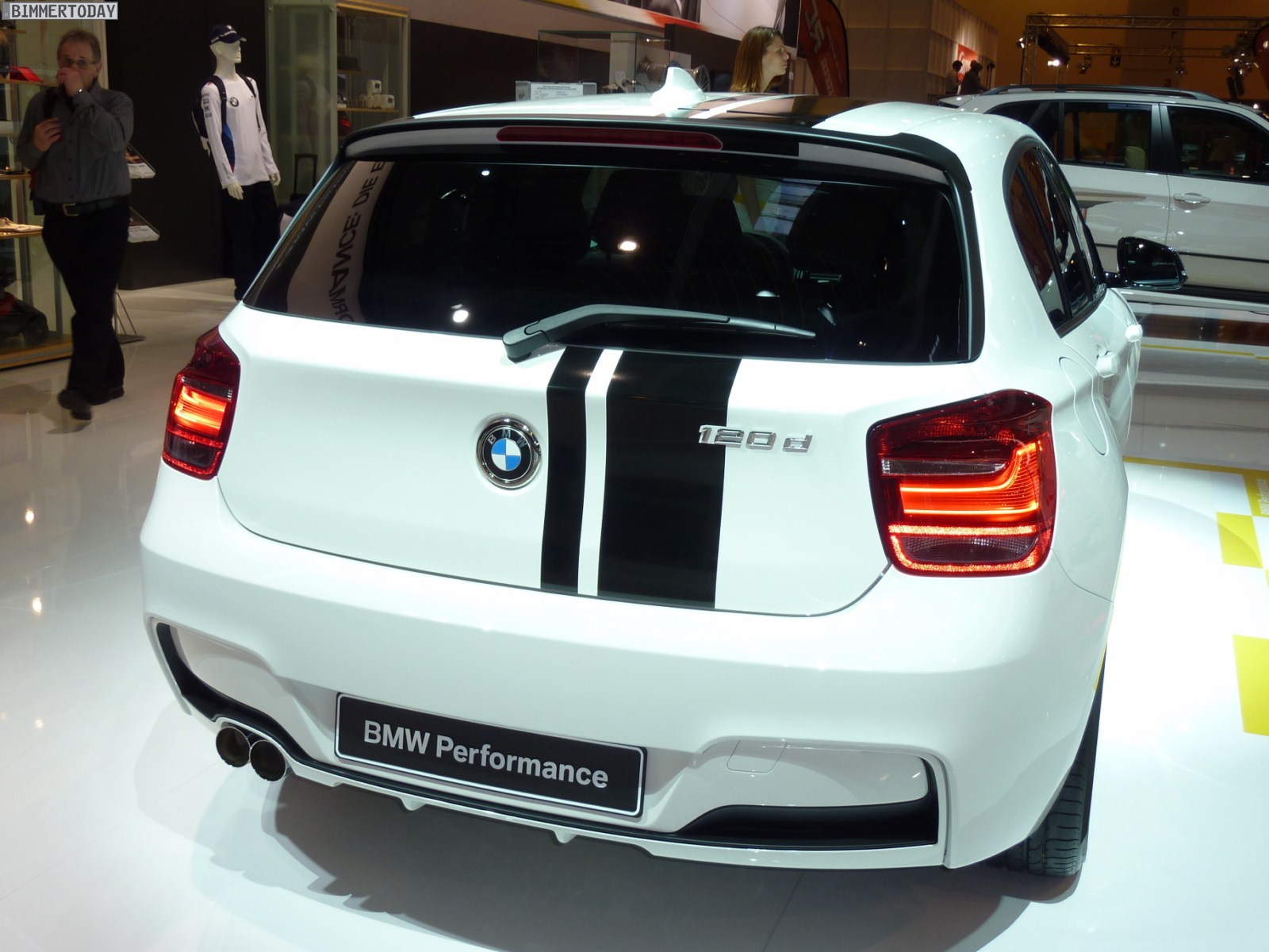 Technisch sind von BMW Performance neben Fahrwerkskomponenten, Domstreben und einer leistungsfähigeren Bremsanlage auch Leistungssteigerungen zu erwarten – sowohl für die bekannten Vierzylinder-Diesel als auch für die neuen aufgeladenen Vierzylinder-Benziner. Der gezeigte BMW 120d F20 sollte mit Power Kit von BMW Performance 200 PS leisten und ein maximales Drehmoment von 420 Newtonmeter bieten – 16 PS und 40 Nm mehr als serienmäßig.
