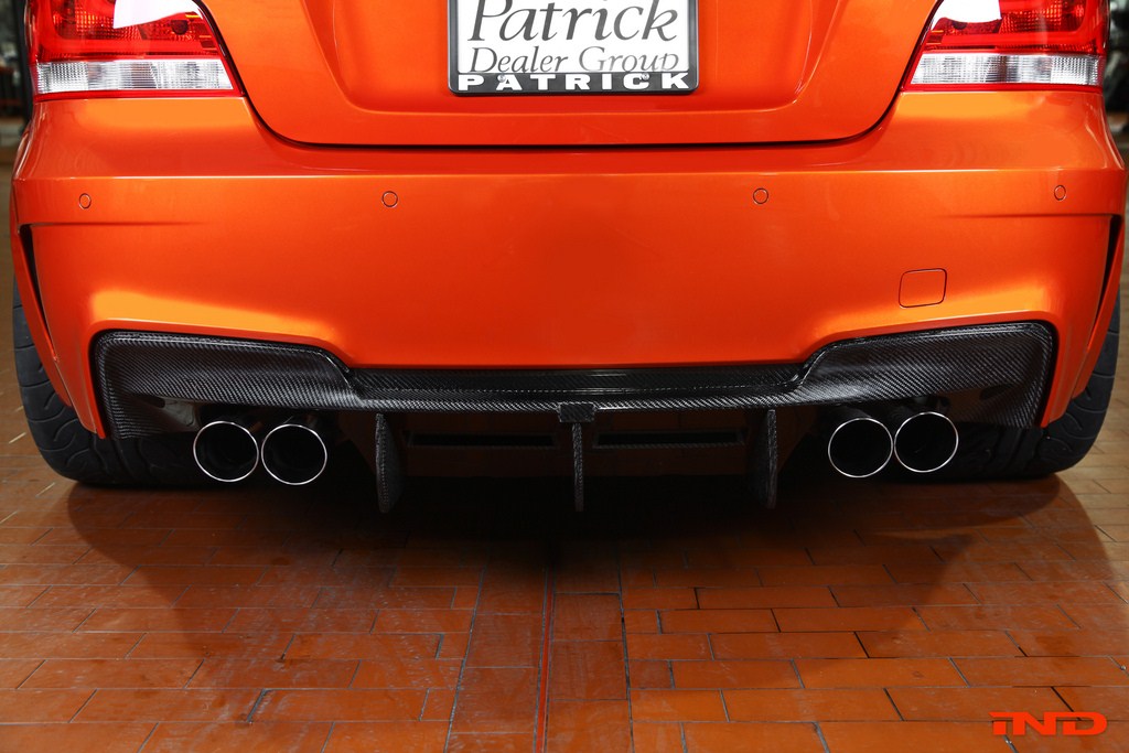 US-Tuner IND hat für einen speziellen Kunden weder Kosten noch Mühen gescheut und innerhalb kürzester Zeit ein sehr individuelles BMW 1er M Coupé auf die Räder gestellt, das unsere Aufmerksamkeit verdient. Natürlich spielt die (zumindest kurzzeitig) exklusiv dem 1er M vorbehaltene Farbe Valencia Orange Metallic dabei eine wichtige Rolle und taucht an vielen Orten auf, um für ein stimmiges Gesamtbild zu sorgen.