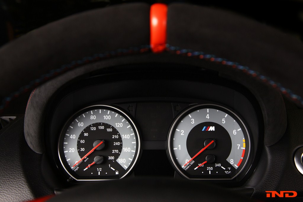 Erwähnung verdienen auch die kleinen Details, die das 1er M Coupé von IND zu einem runden Paket machen: Der Carbon-Heckspoiler verfügt über einen dünnen Streifen in Valencia Orange, der an den Stil des BMW M3 CRT erinnern soll und auch Motorabdeckung und Elemente des Lenkrads von BMW Performance sind in der Außenfarbe lackiert, um für ein stimmiges Gesamtbild zu sorgen. Ob und wann die Komponenten auch in Deutschland verfügbar sind, ist derzeit noch nicht bekannt.