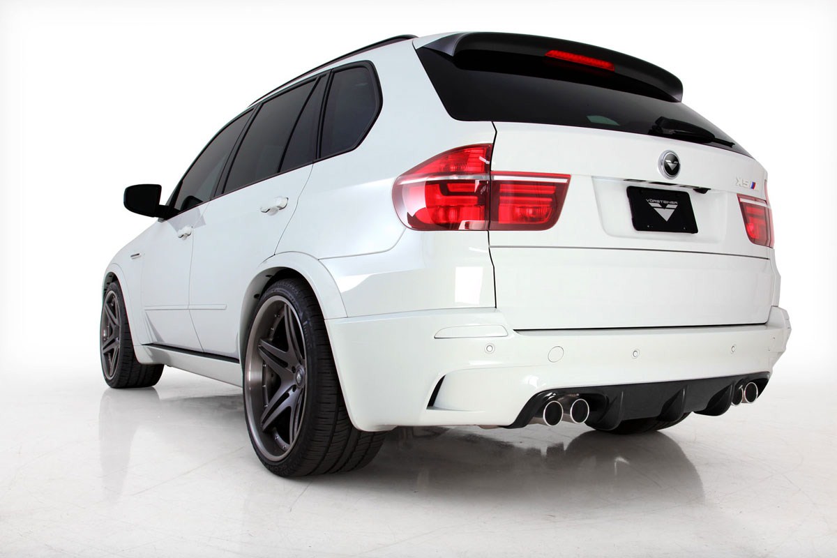 Zugegeben, in Deutschland wird es mit dem Erhalt der im Folgenden vorgestellten Teile nicht ganz einfach, aber völlig unerwähnt wollen wir das erweiterte Aerodynamik-Paket für den BMW X5 M von US-Tuner Vorsteiner auch nicht lassen. Das 555 PS starke SUV erhält von Vorsteiner eine neue Motorhaube mit Entlüftungsöffnungen in Kontrastfarbe sowie Auf- und Einsätze für die serienmäßigen Schürzen an Front und Heck.