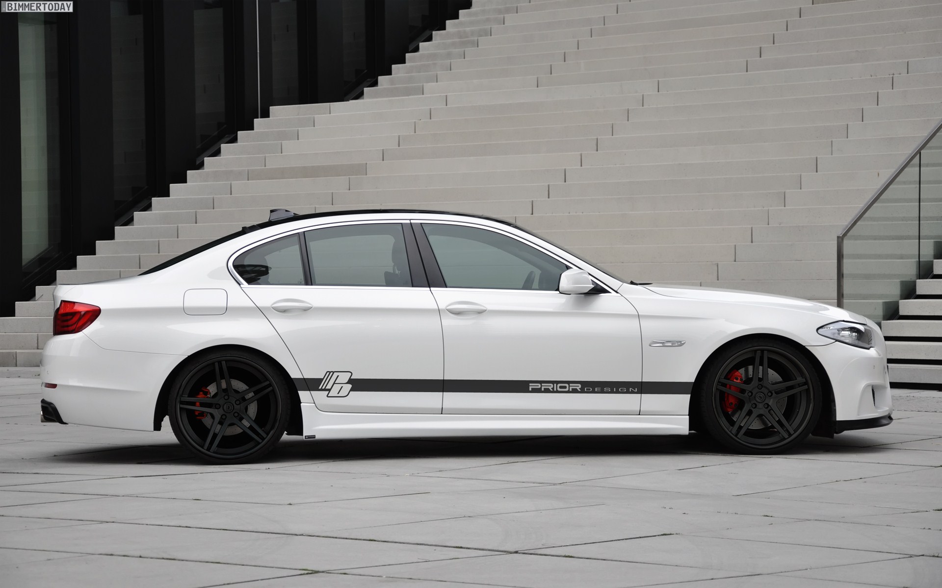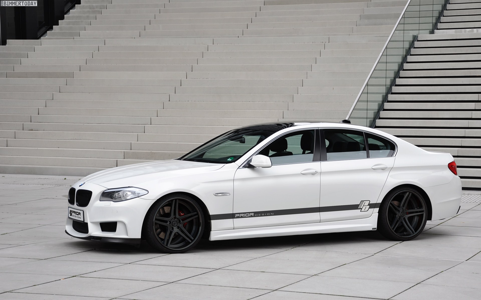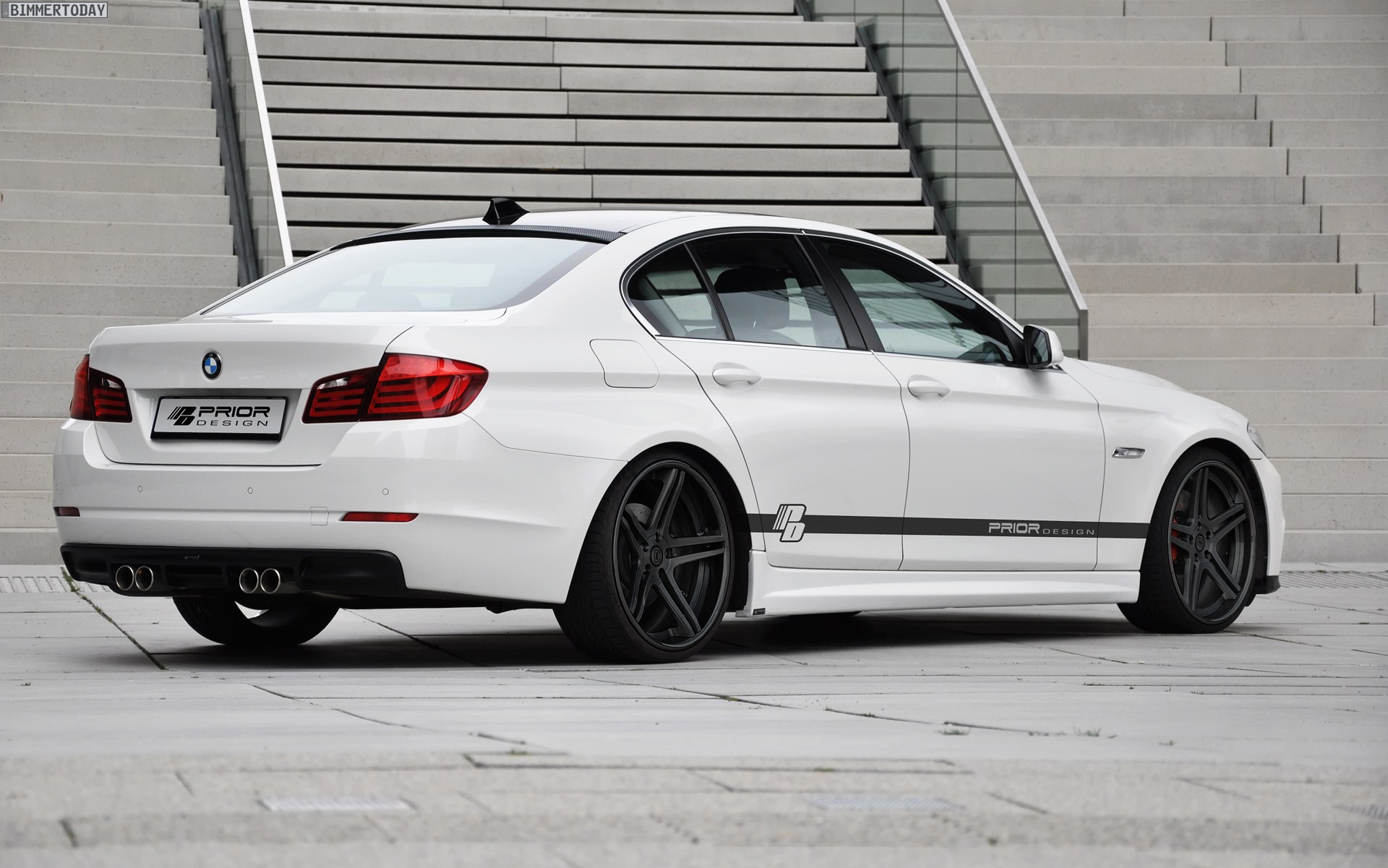 Nur wenige Tage nach der Vorstellung der ersten Teile von Prior Design für die BMW 5er Limousine F10 folgt nun gleich der zweite Streich in Form des Aerodynamik-Pakets PD-R. Während das erste Paket für den aktuellen 5er auf der serienmäßigen Frontschürze aufbaute und folglich relativ eng an der Serie blieb, bietet das zweite Paket PD-R eine sehr eigenständige Optik, bei der verschiedene aktuell bei der M GmbH genutzte Elemente miteinander kombiniert werden.