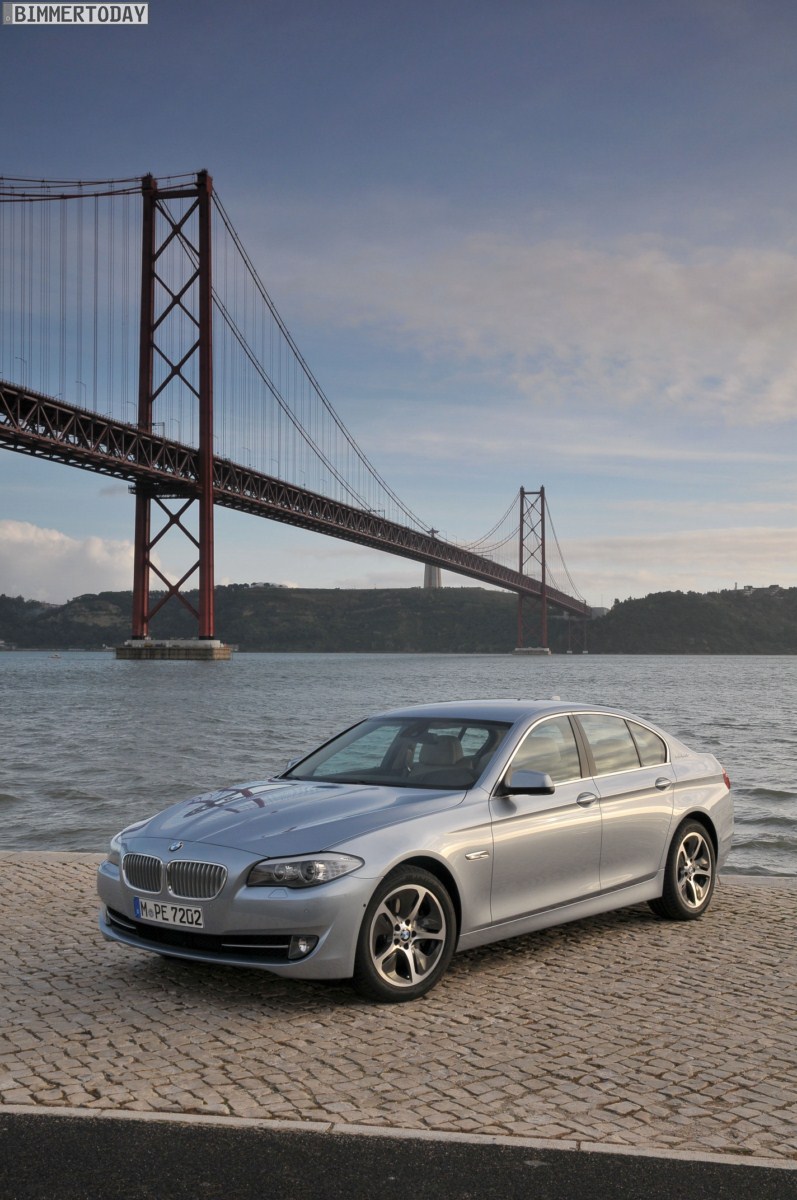Neben dem MINI Roadster zeigt BMW in Portugal zur Zeit auch den ActiveHybrid 5 (F10), der in wenigen Wochen zu Preisen ab 62.900 Euro bei den deutschen Händlern stehen wird. Technisch basiert der Hybrid-5er auf dem 535i mit aufgeladenem Reihensechszylinder, dazu kommt ein in das Gehäuse der achtstufigen Automatik von ZF integrierter Elektromotor mit einer Leistung von 55 PS.