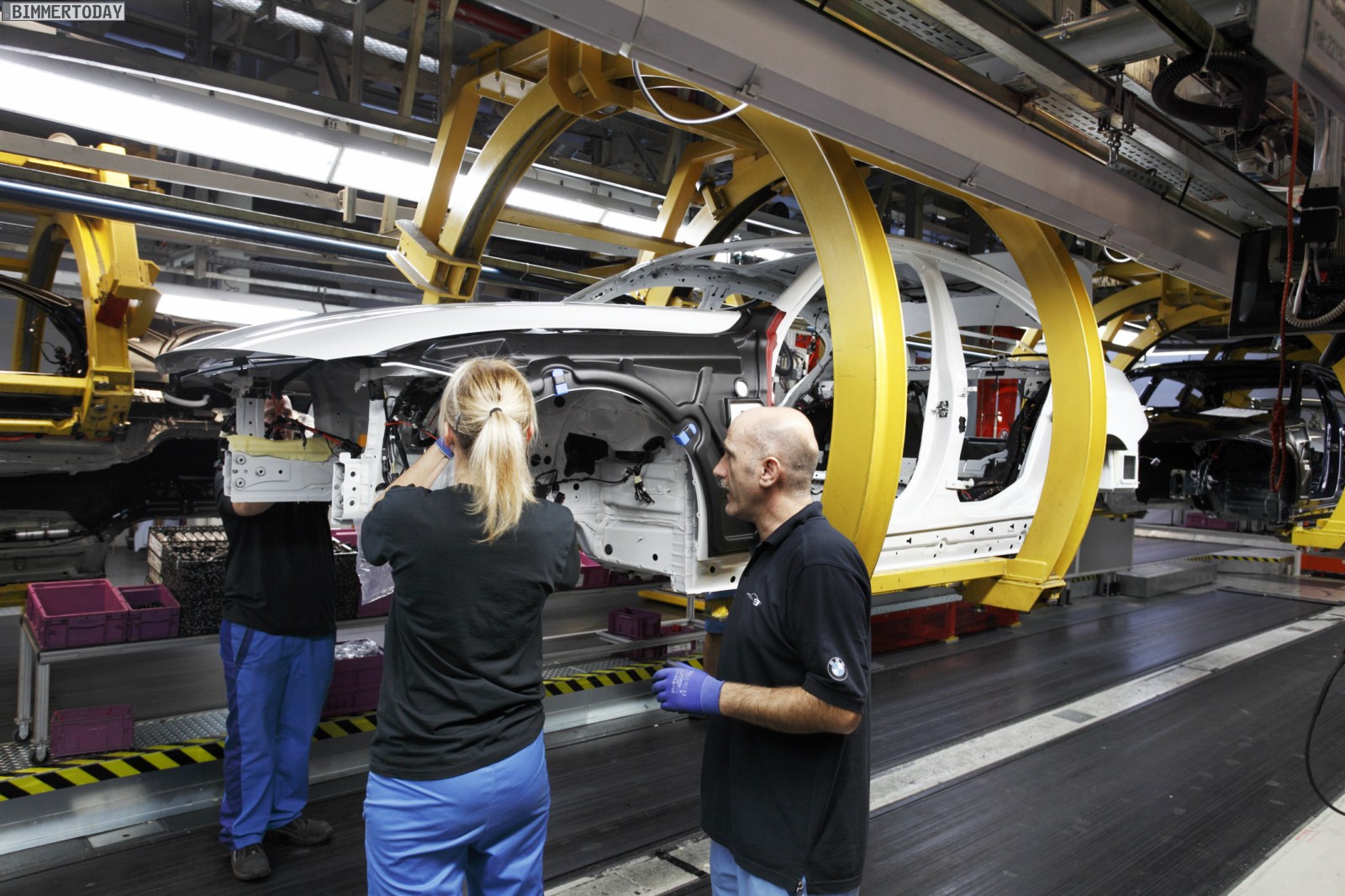 Im Werk München laufen täglich rund 900 Autos vom Band, davon 680 Einheiten der neuen 3er-Reihe. Speziell für den 3er wurde eine neue Großpresse mit 17 Hüben pro Minute installiert, die zu den modernsten Europas gehört und mit einer Presskraft von 650 bis 2.500 Tonnen etwa 600 Tonnen Stahl täglich verarbeitet. Außerdem wurde das alte und mittlerweile zu niedrige Karosseriebaugebäude demontiert und durch eine komplett neue Fertigungshalle ersetzt. Abgerundet wird die umfangreiche Modernisierung durch zahlreiche neue Roboter, die unter anderem zum Lasern, Kleben und Lackieren eingesetzt werden.