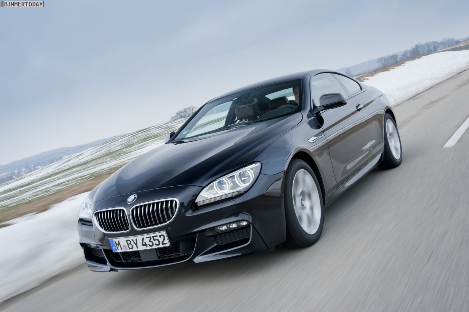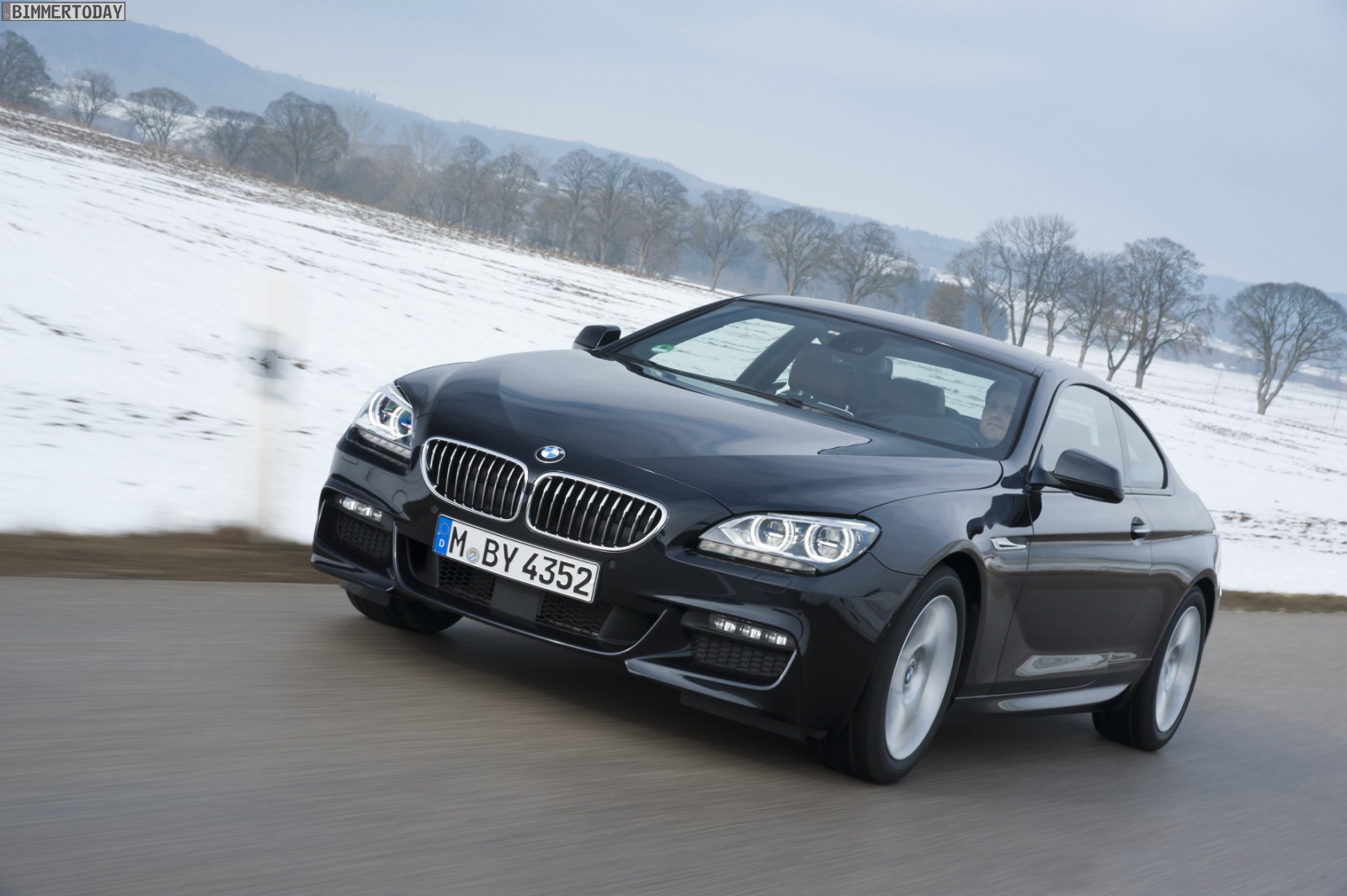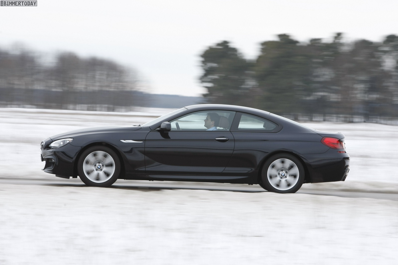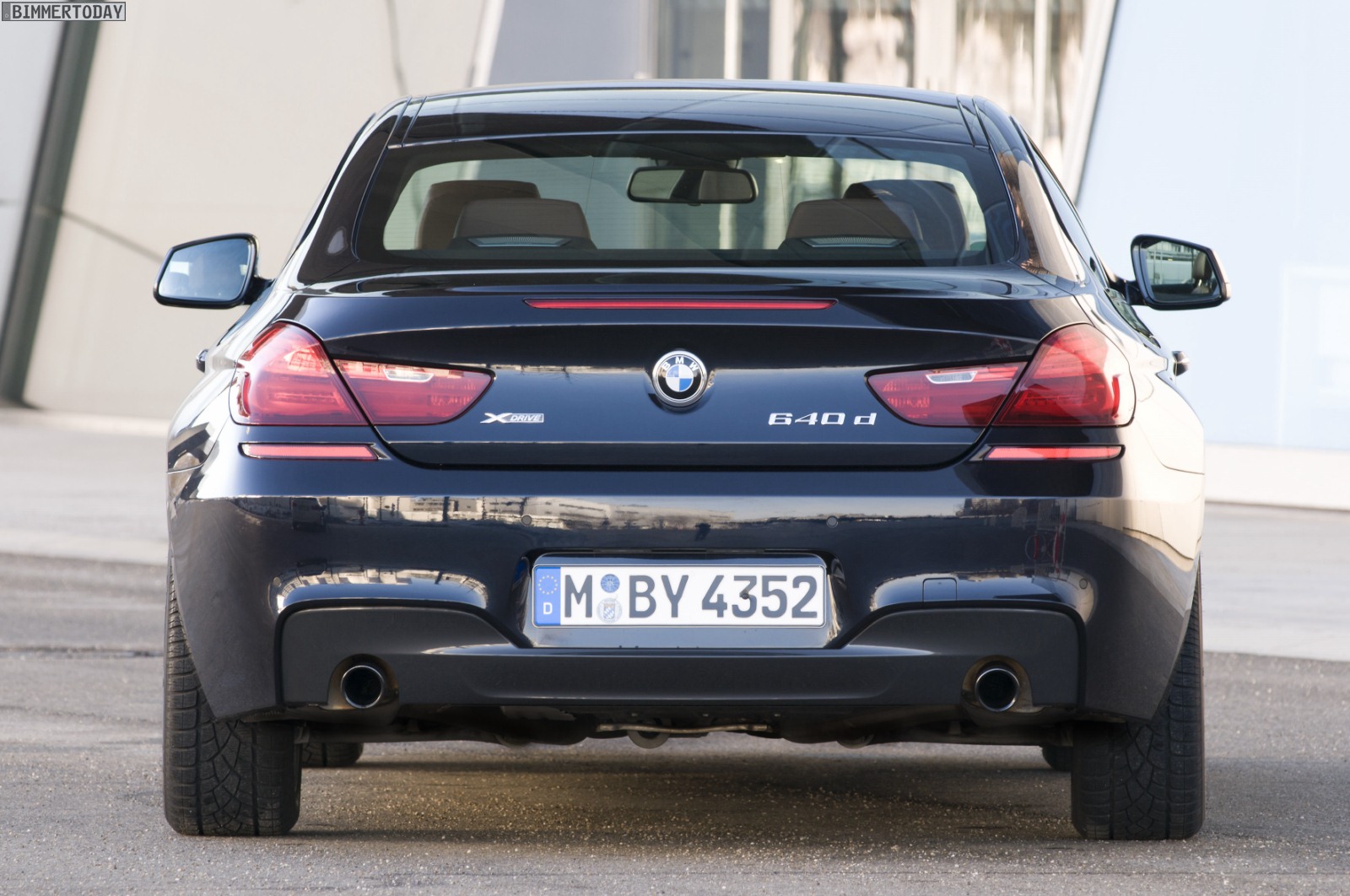 Eine neue Bilderserie aus München zeigt uns nun ein BMW 640d xDrive Coupé mit M Sportpaket, wie es Pressevertreter in den letzten Tagen ausführlich testen durften. Beim Sprint von 0 auf 100 km/h ist die xDrive-Variante des 640d F13 mit 5,2 Sekunden eine Zehntel schneller als der 80 Kilogramm leichtere Hecktriebler, dafür fällt der Normverbrauch mit 5,7 bis 5,8 Liter etwas höher aus als beim “normalen” 640d, der je nach Bereifung 5,4 bis 5,5 Liter auf 100 Kilometer benötigt.
