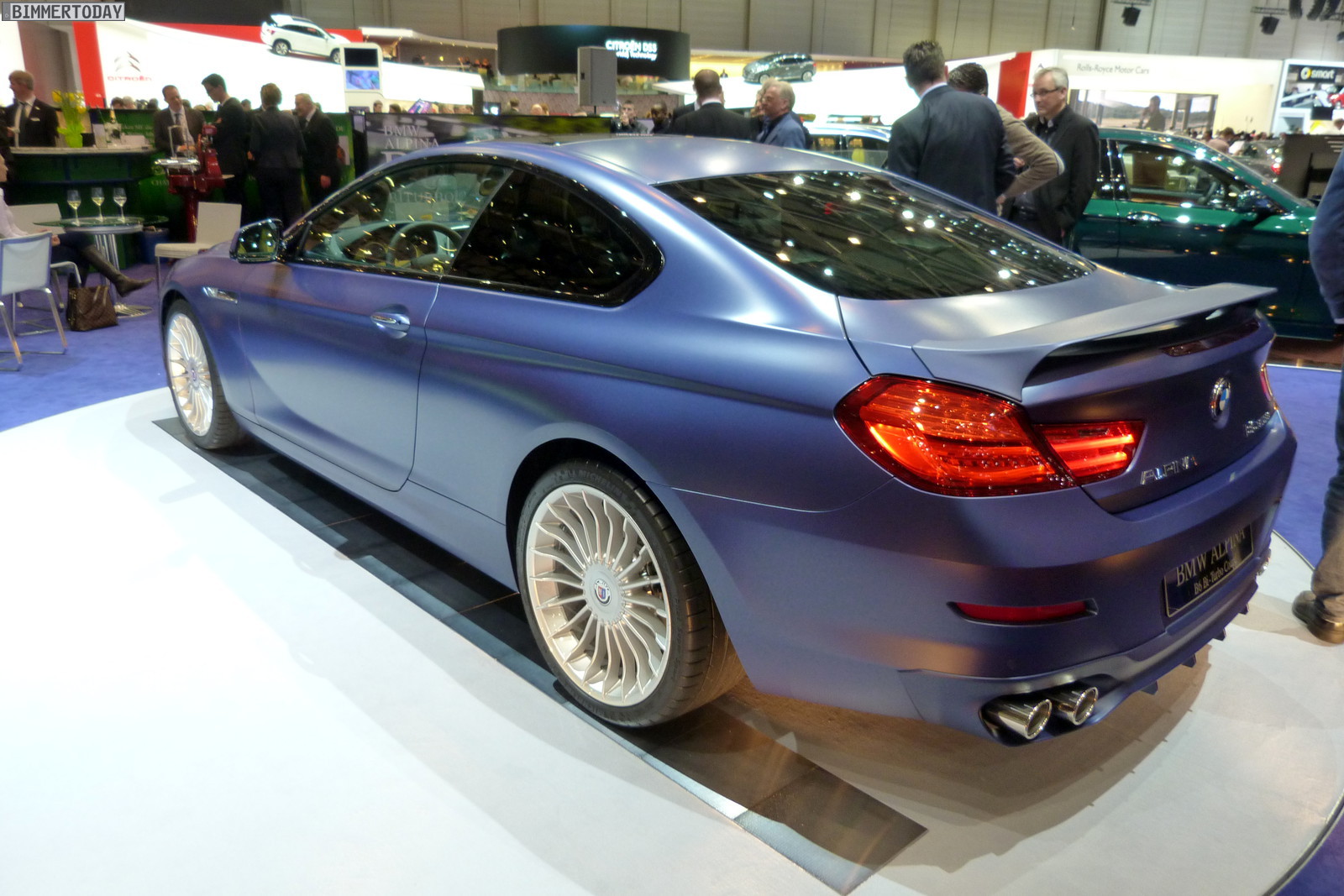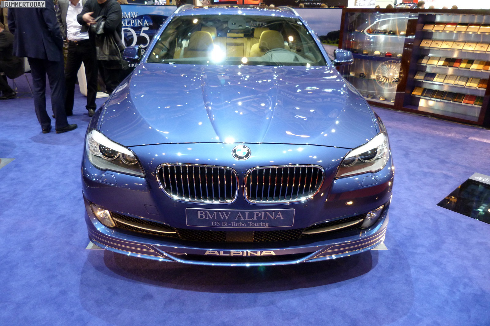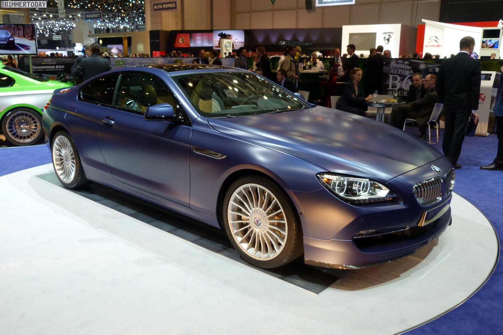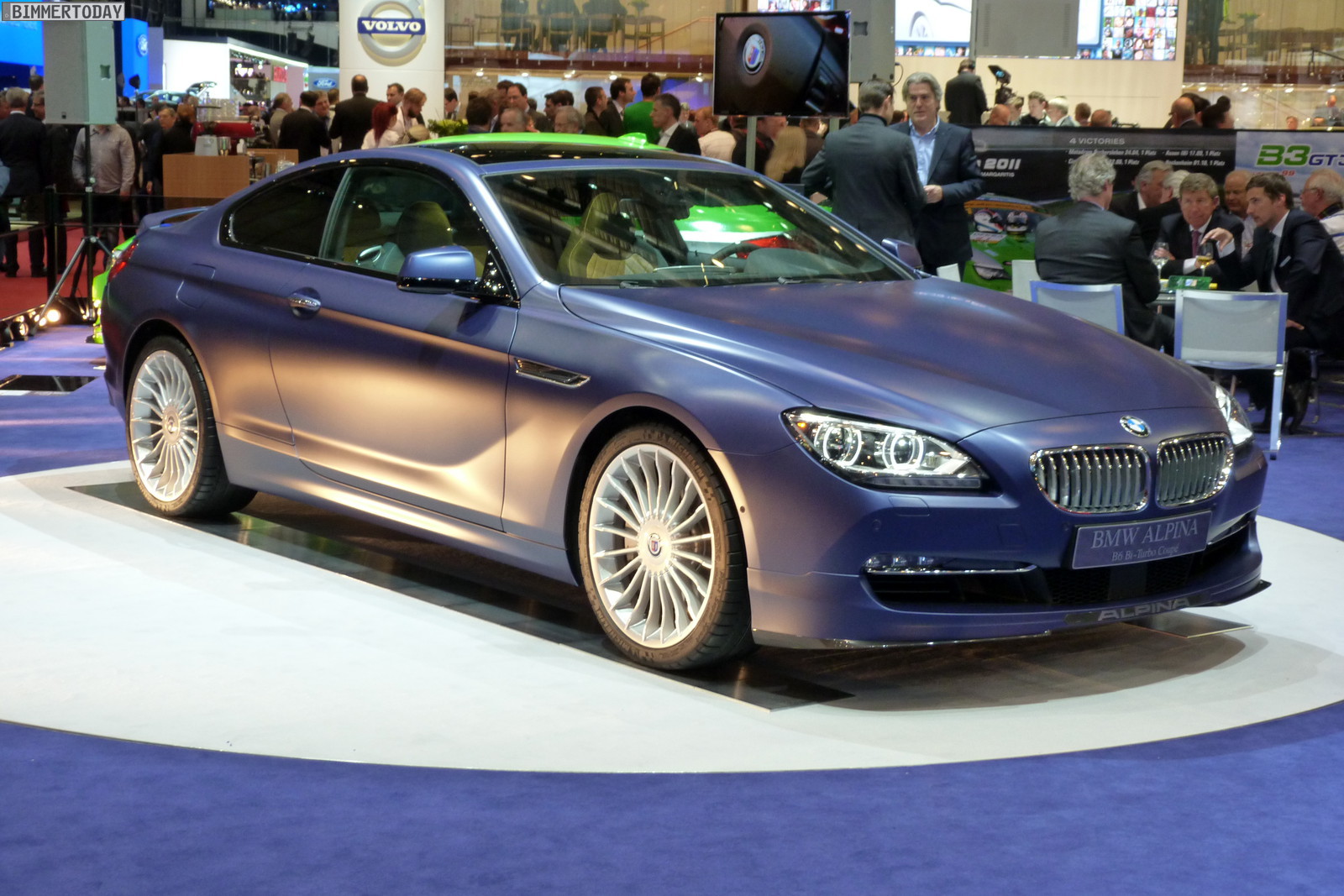 Neben dem matt-blauen B6 Coupé zeigt der Veredler aus dem Allgäu in Genf auch eine in Alpinagrün lackierte B5 Biturbo Limousine (F10), einen in glänzendem Alpinablau lackierten D5 Biturbo Touring und ein Exemplar des auf 99 Einheiten limitierten Alpina B3 GT3.