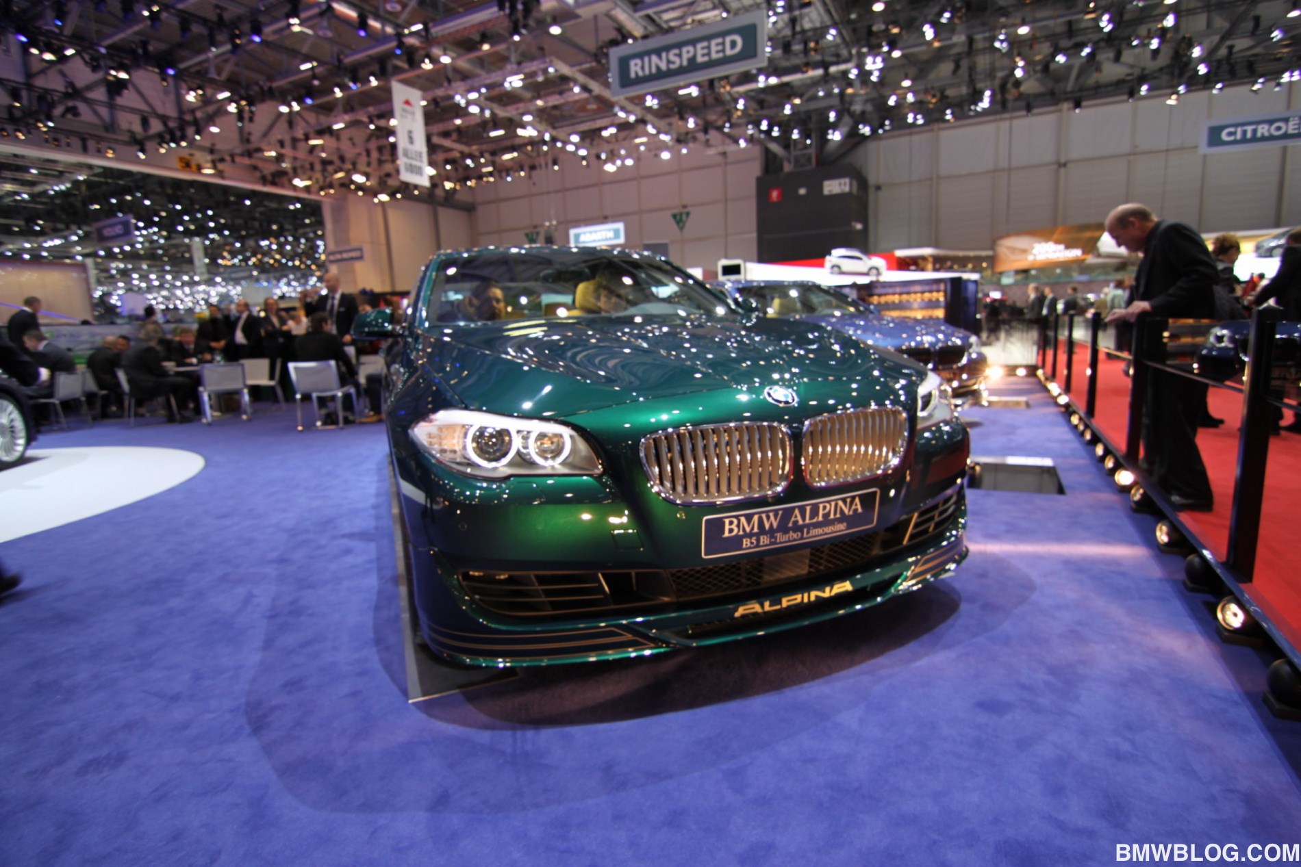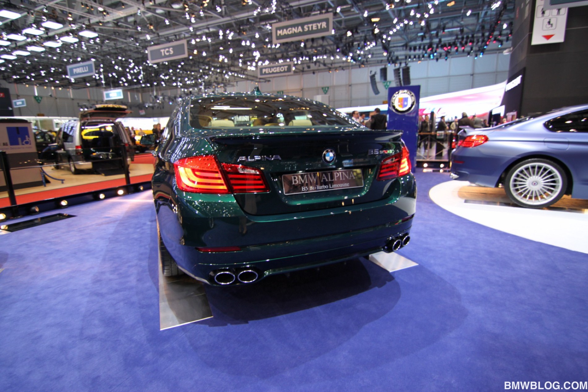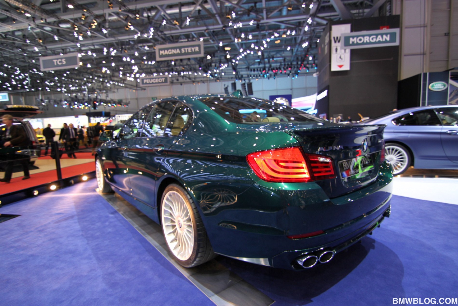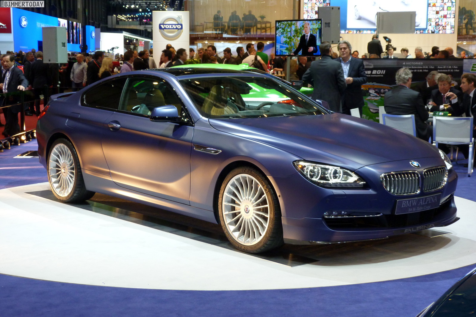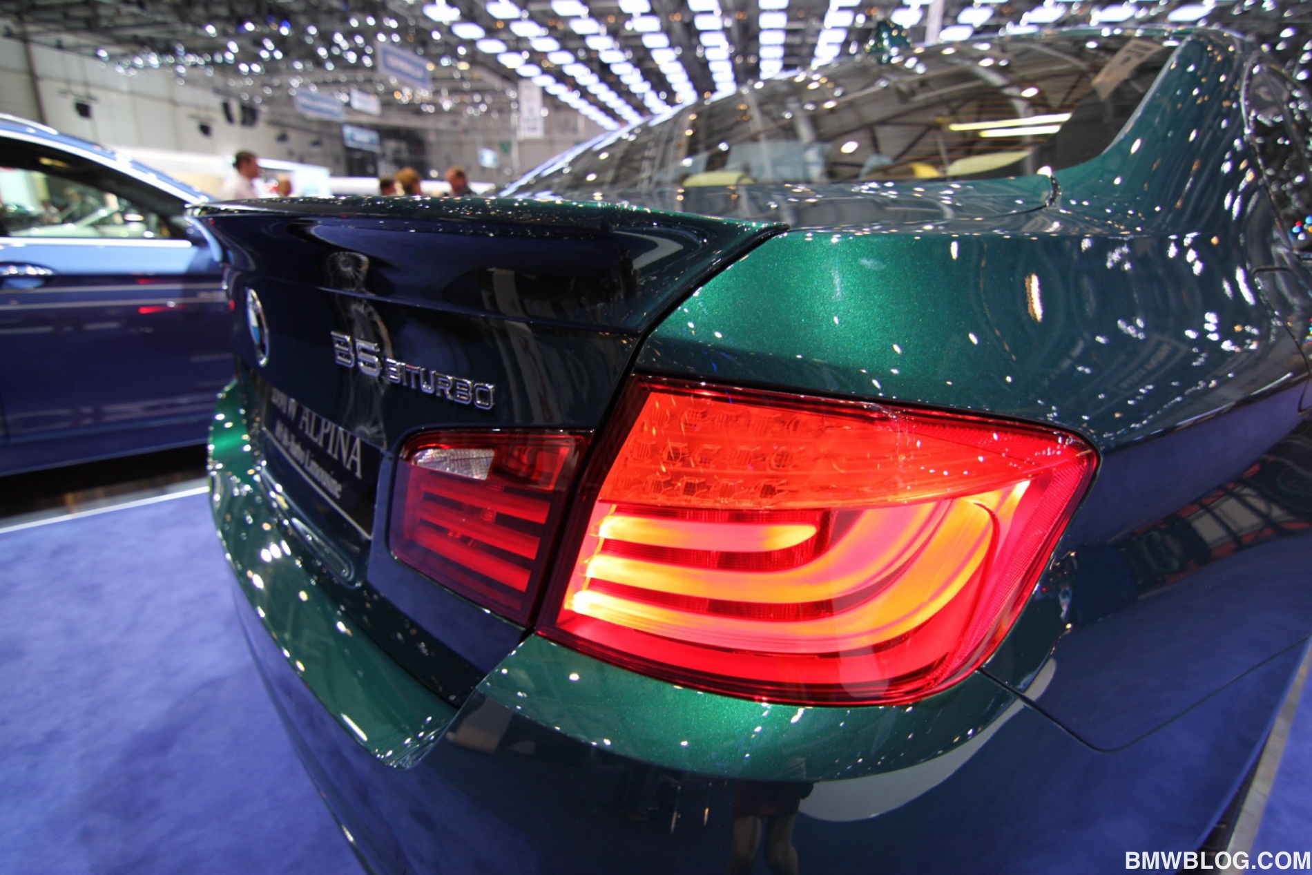 Neben dem matt-blauen B6 Coupé zeigt der Veredler aus dem Allgäu in Genf auch eine in Alpinagrün lackierte B5 Biturbo Limousine (F10), einen in glänzendem Alpinablau lackierten D5 Biturbo Touring und ein Exemplar des auf 99 Einheiten limitierten Alpina B3 GT3.