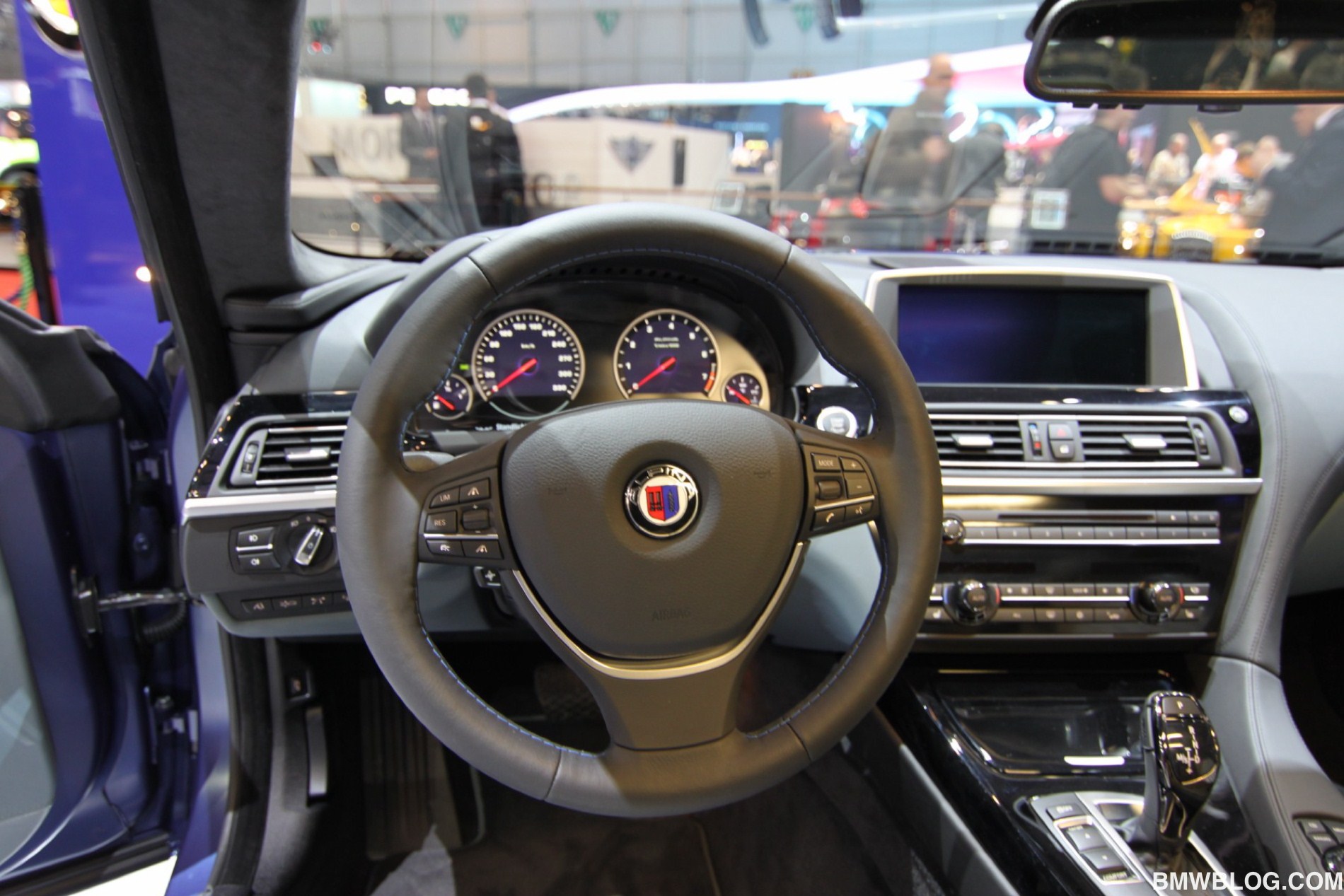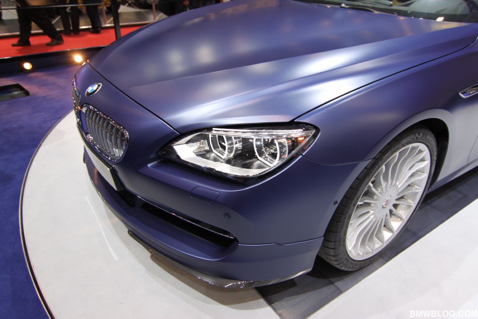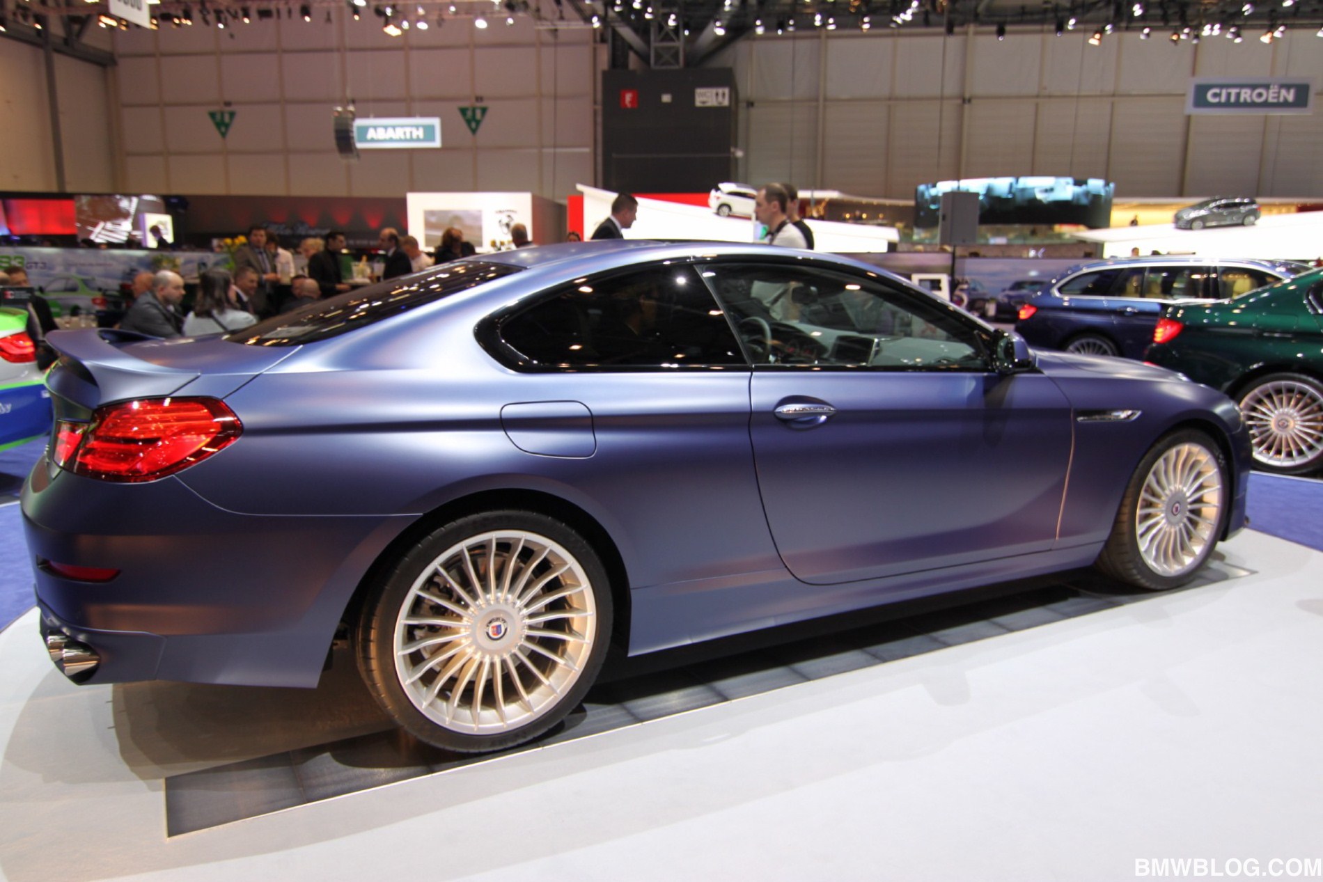 Unumstrittenes Highlight am Stand der Buchloer ist ein Alpina B6 Biturbo Coupé (F13) mit 540 PS starkem V8, das in der neuerdings erhältlichen matten Variante des klassischen Alpina-Blau lackiert ist. Der Heckspoiler auf dem Kofferraumdeckel kann von Liebhabern eines besonders dezenten Auftritts übrigens auch durch eine unauffälligere Spoilerlippe ersetzt werden.
