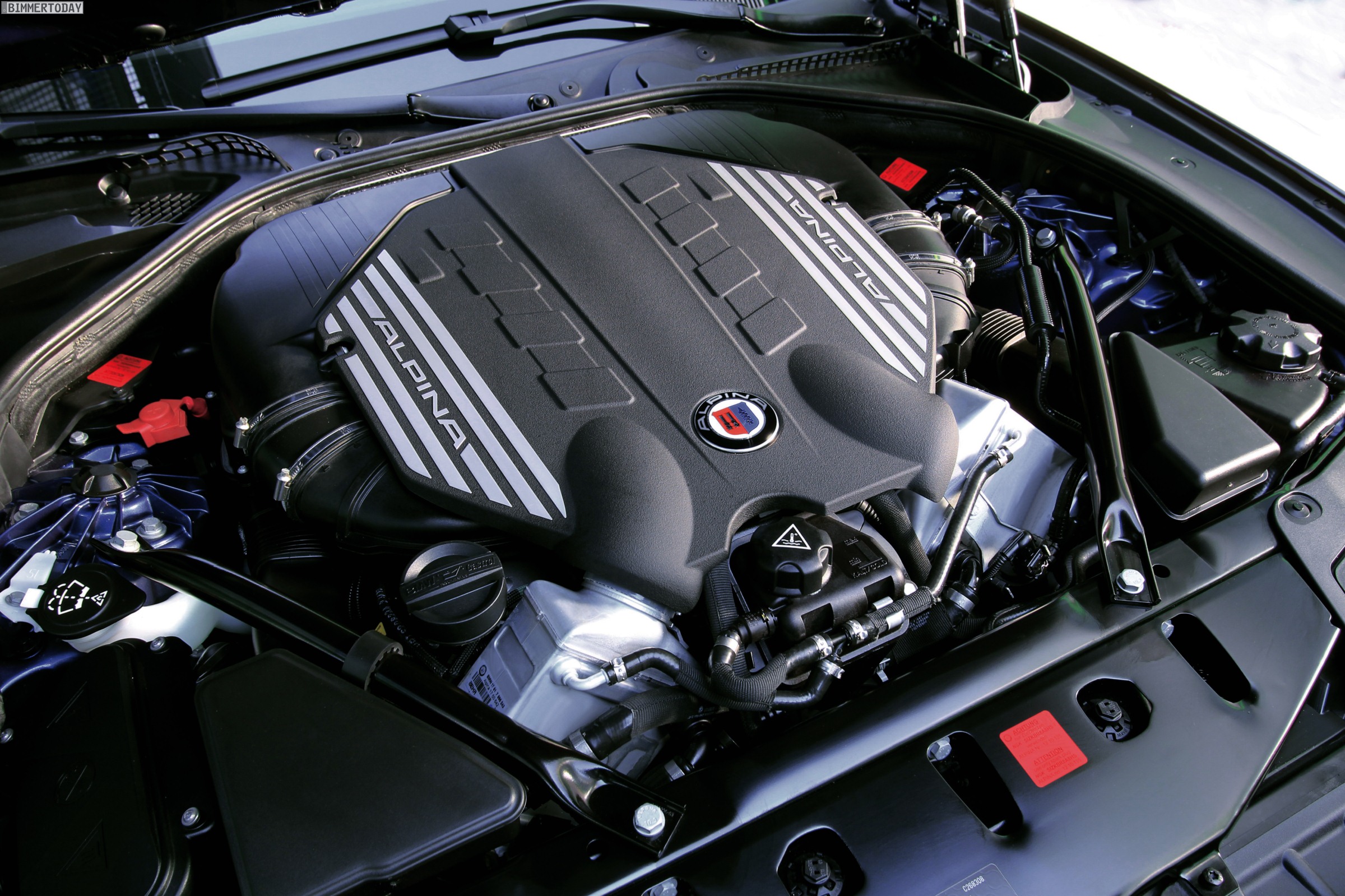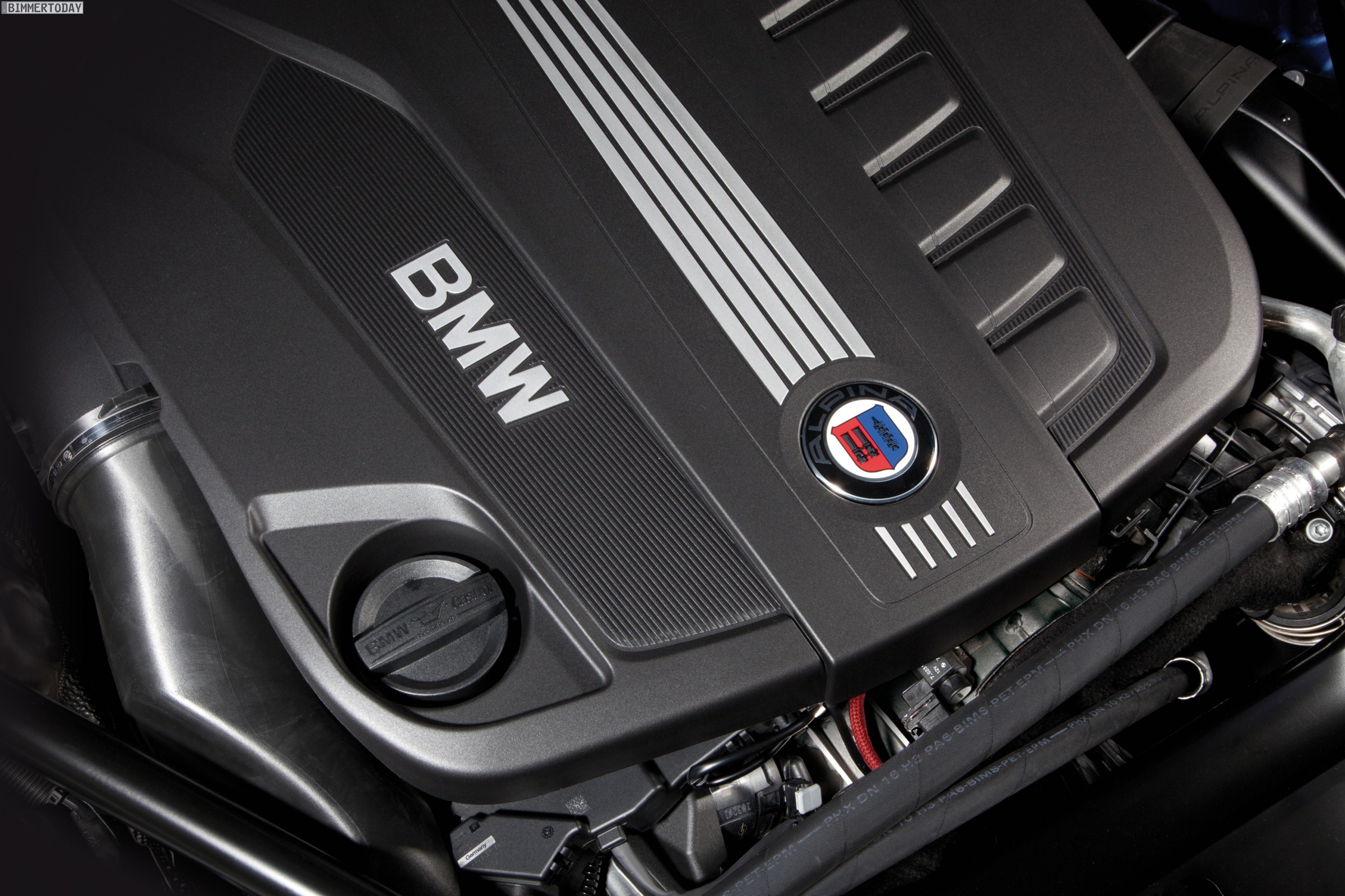 Der Motor des Alpina D5 Biturbo basiert auf dem Triebwerk des BMW 535d mit Registeraufladung. Die Leistung des Reihensechszylinders wird bei Alpina auf 350 PS angehoben, das maximale Drehmoment von 700 Newtonmeter liegt in einem breiten Fenster zwischen 1.500 und 3.000 U/min an. Zum Erreichen dieser Werte wurden neben einer Anhebung des Ladeluft- und Einspritzdrucks die Ansaugwege weiter optimiert, außerdem kommen ein neuer Abgaskrümmer und eine neue Abgasanlage zum Einsatz.
