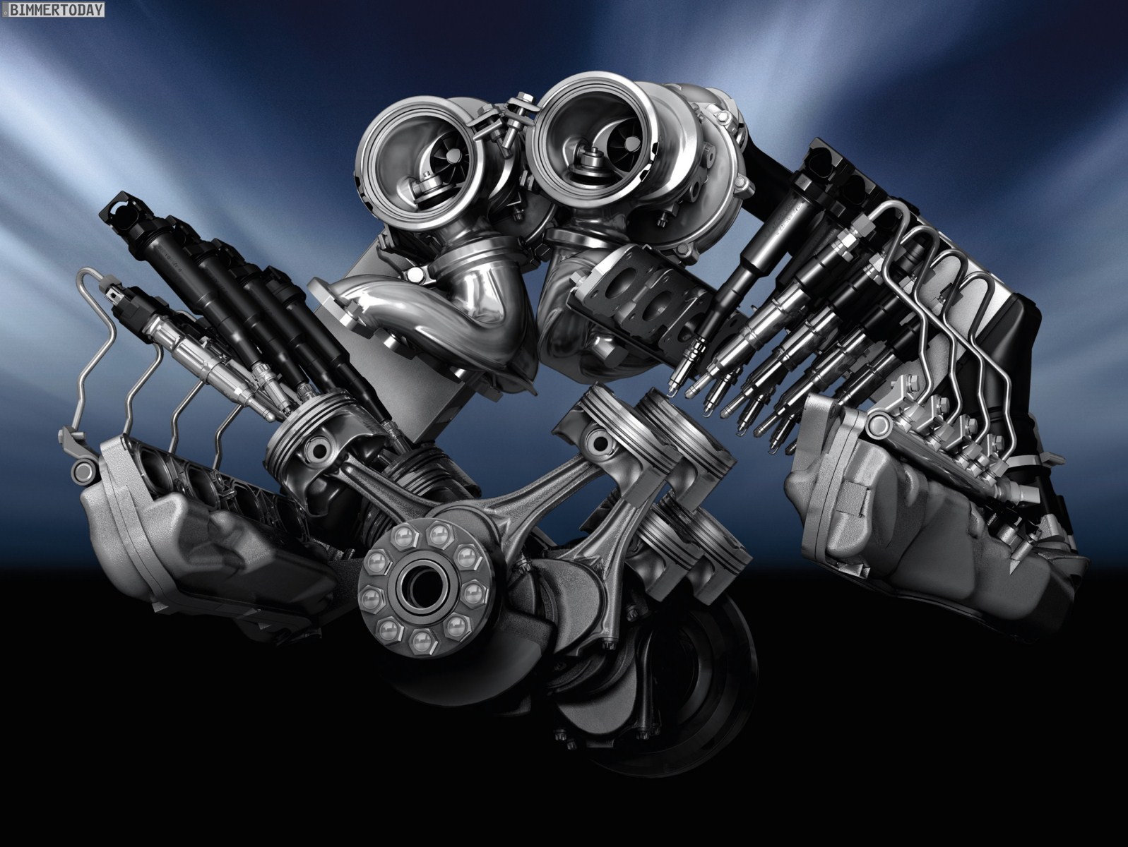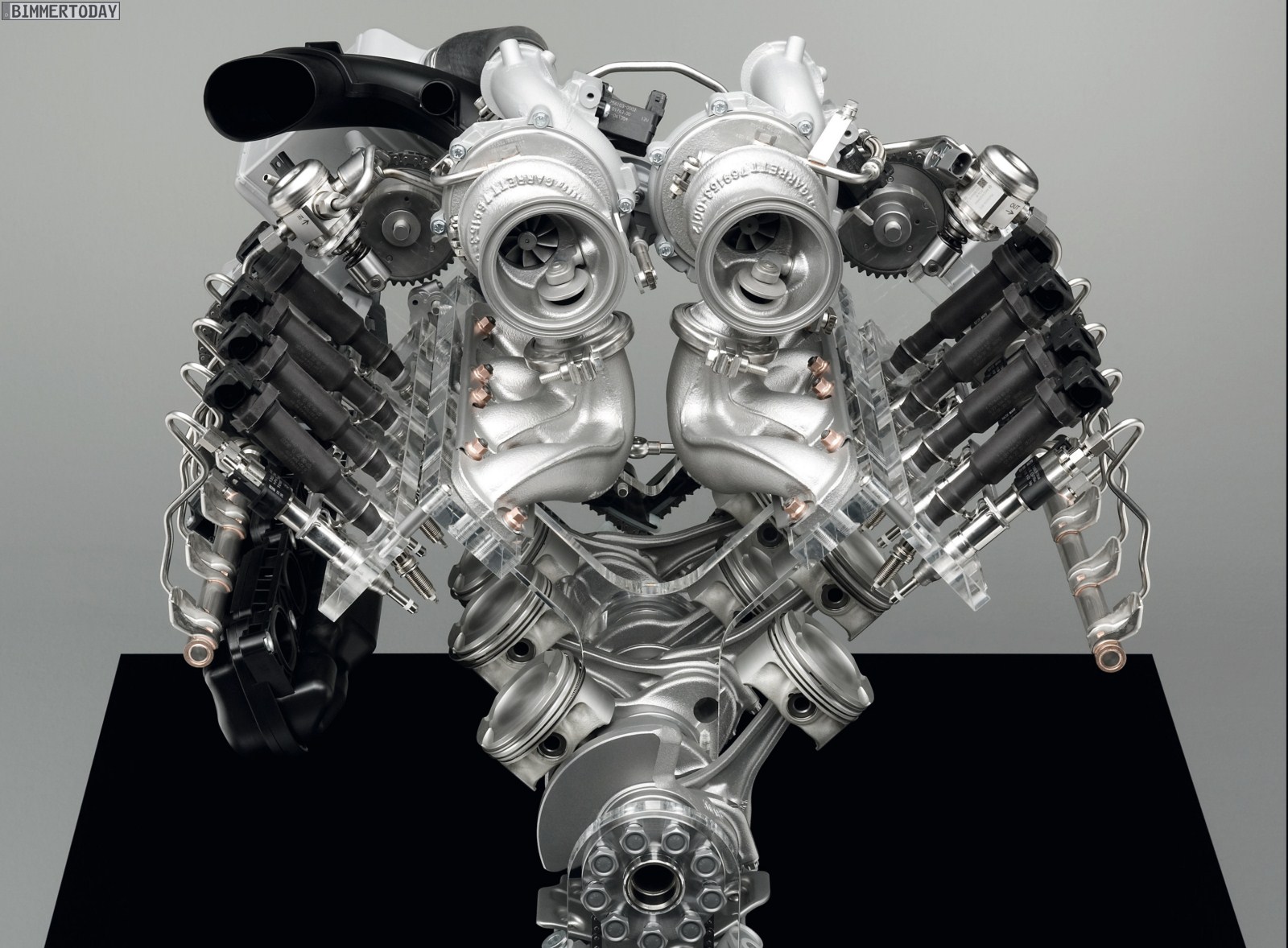 Mit der Präsentation des BMW X6 xDrive50i der Baureihe E71 im Jahr 2008 gab es weltweit den ersten V8-Turbomotor mit umgekehrter Position von Ein- und Auslasskanälen. Statt wie sonst üblich befindet sich das Abgassystem, bestehend aus Krümmer, Turbolader und Katalysatoren, nicht links und rechts außen vom Motorblock, sondern im V-Raum. Durch die kurzen Ansaugrohre und vergrößerten Querschnitte konnten Druckverluste im Ansaugtrakt deutlich minimiert werden.