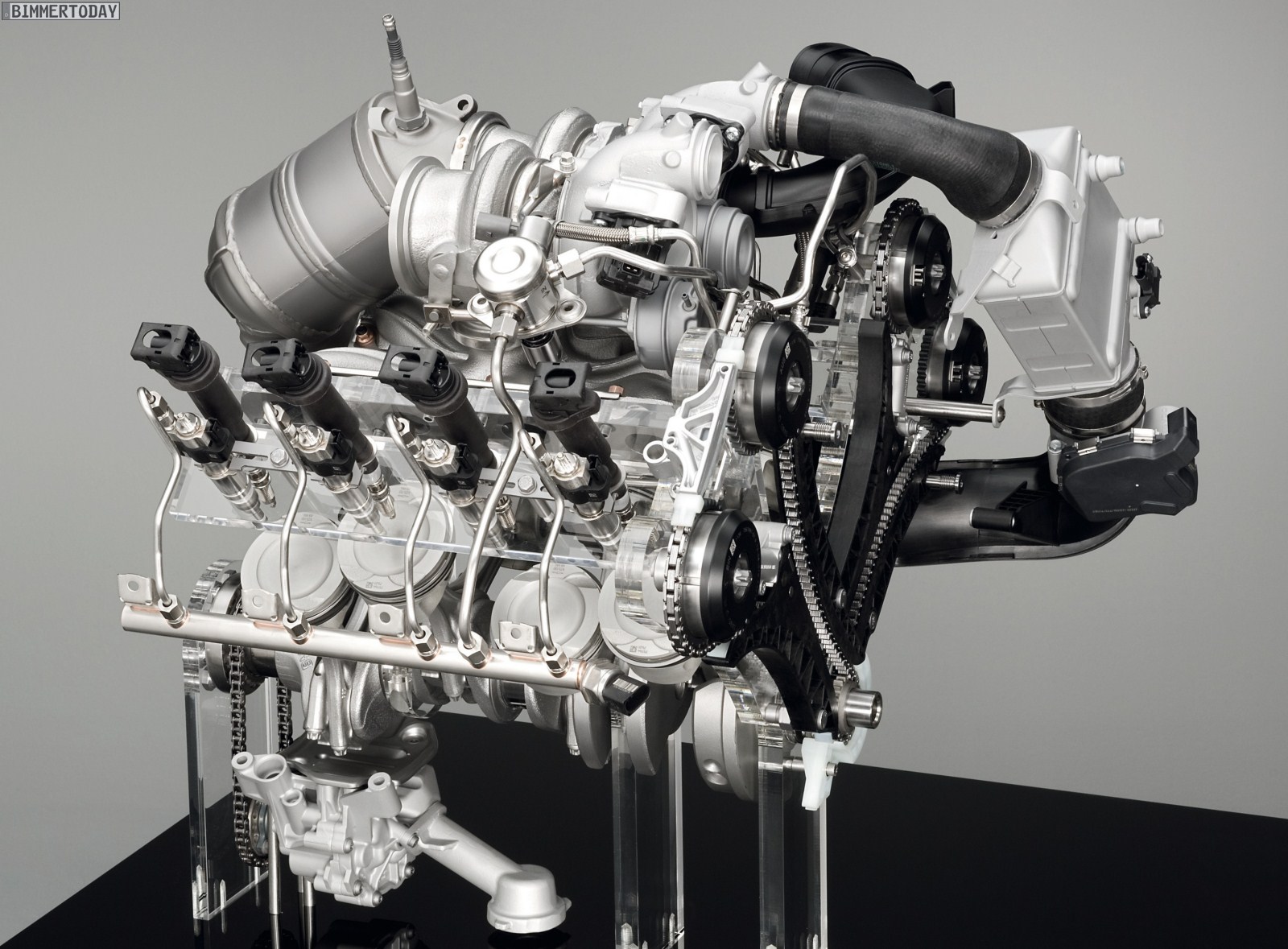 Diese bauliche Umkehr bringt aber auch technische Schwierigkeiten mit sich, denn statt wie üblich kann die Hitze des Abgasstrangs nicht direkt über den Unterboden abstrahlen, sondern befindet sich unter der Motorhaube und vor der Schottwand des Innenraums. Bislang setzt BMW dieses Umkehrprinzip nur in den N63 und S63 genannten V8-Motoren der aktuellen Modelle von 5er, 6er, 7er, X5 und X6 ein.