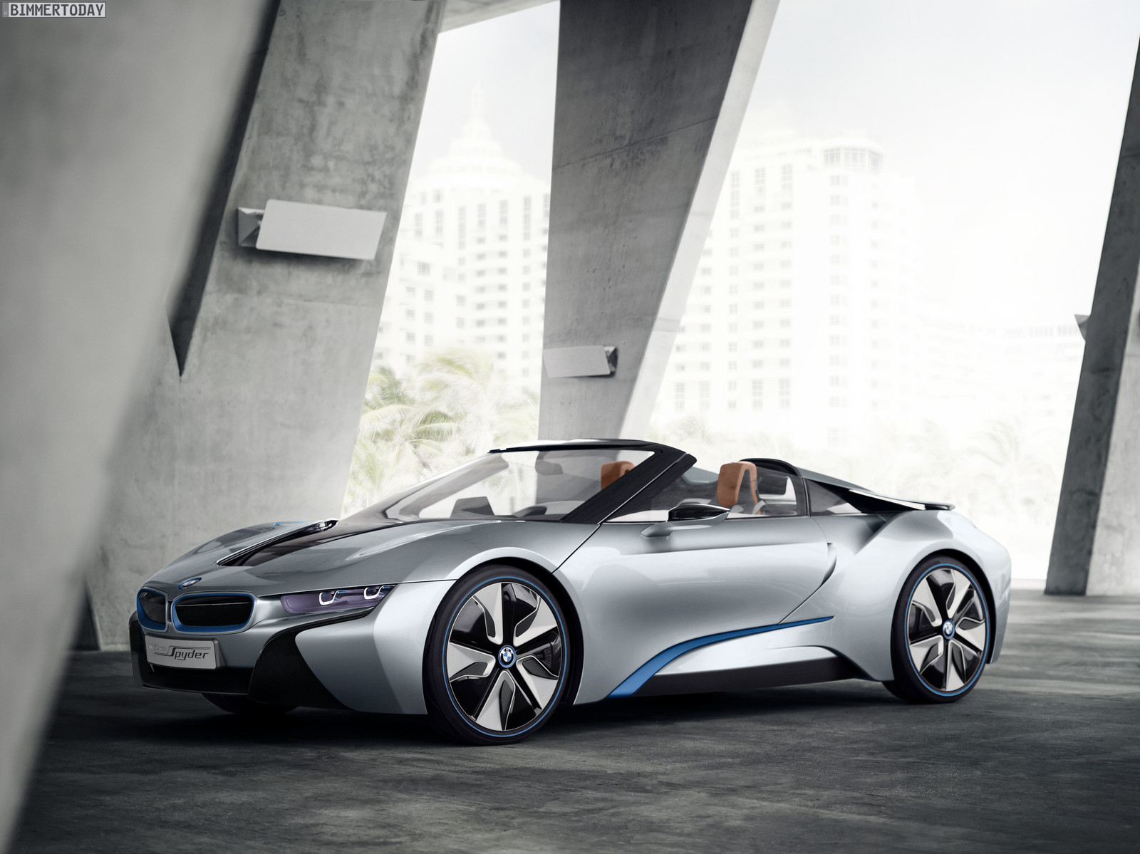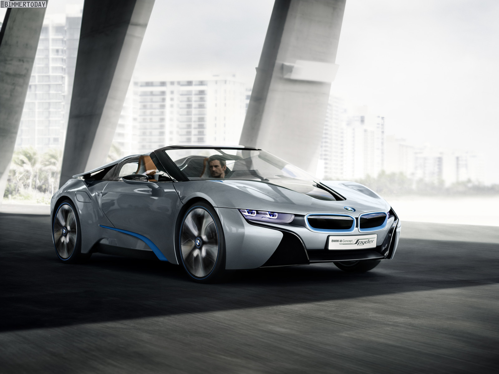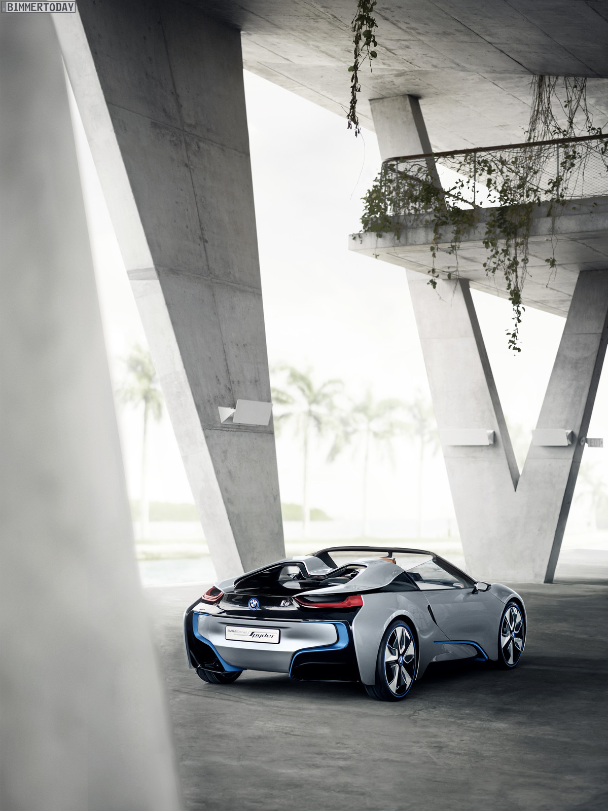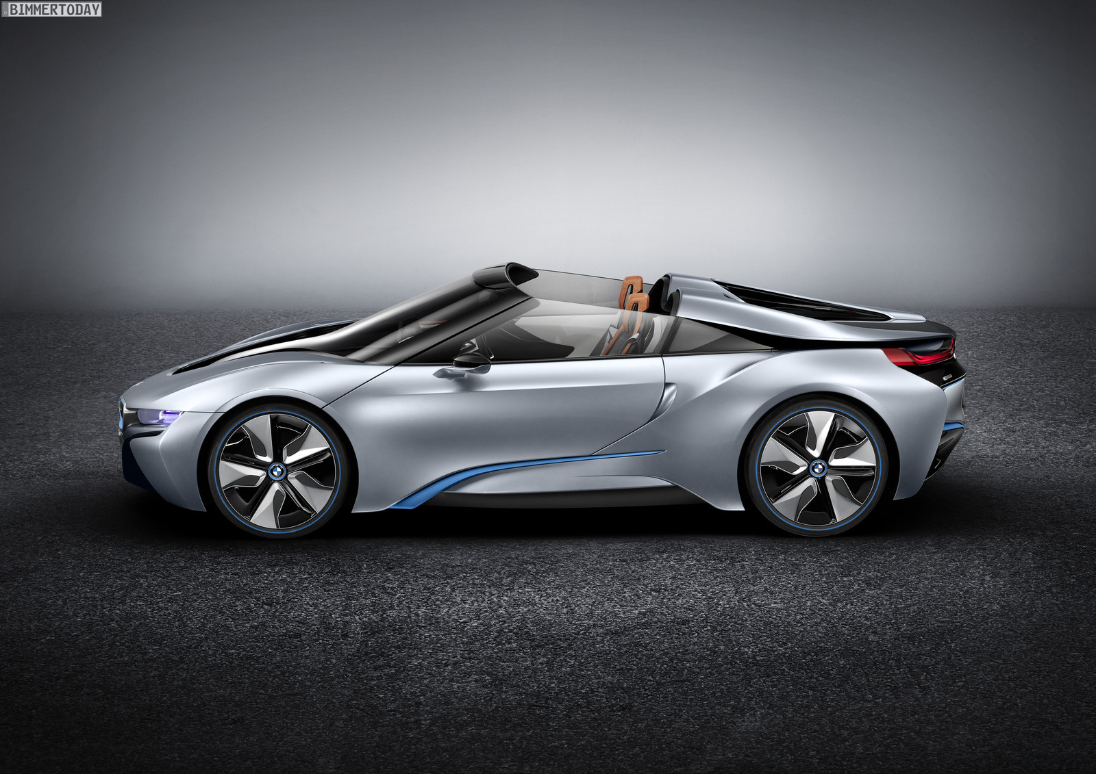 Vorgestellt wird die neue i8-Variante auf der Auto China 2012 in Peking, angetrieben wird sie wie das Coupé von einem 113 PS starken Elektromotor an der Vorderachse und einem 223 PS starken Dreizylinder-Benziner mit Turbo-Aufladung, der die Hinterräder antreibt. Der Hybrid-Antriebsstrang kommt auf eine Systemleistung von 354 PS und ermöglicht eine Beschleunigung von 0 auf 100 km/h in 5,0 Sekunden. Im Normzyklus kommt der i8 Spyder auf einen Verbrauch von 3,0 Liter auf 100 Kilometer.