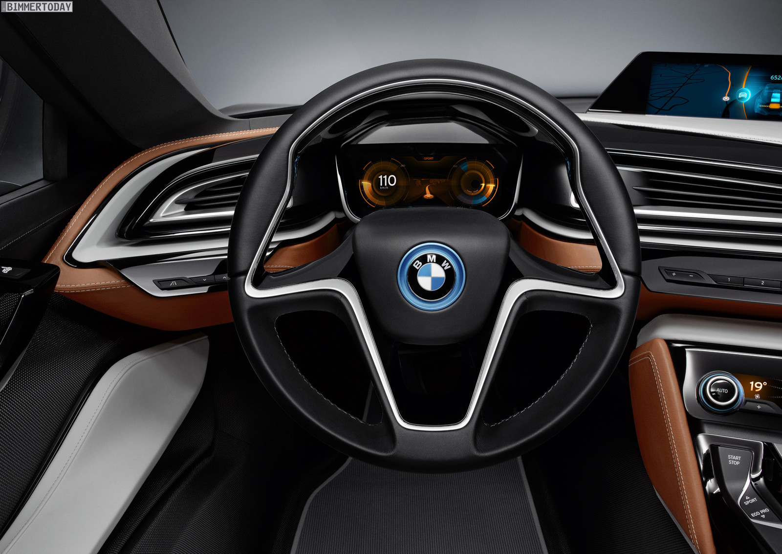Mit einem Leergewicht von 1.630 Kilogramm ist das rund 15 Zentimeter kürzere BMW i8 Spyder Concept exakt 150 Kilogramm schwerer als das i8 Coupé, der Kofferraum fällt mit 100 Liter etwas kleiner aus als beim Coupé (150 Liter). Für das komplette Aufladen der wie im Coupé zwischen Fahrer und Beifahrer untergebrachten Lithium-Ionen-Batterie werden selbst an einer gewöhnlichen Steckdose nur eine Stunde und 45 Minuten benötigt.
