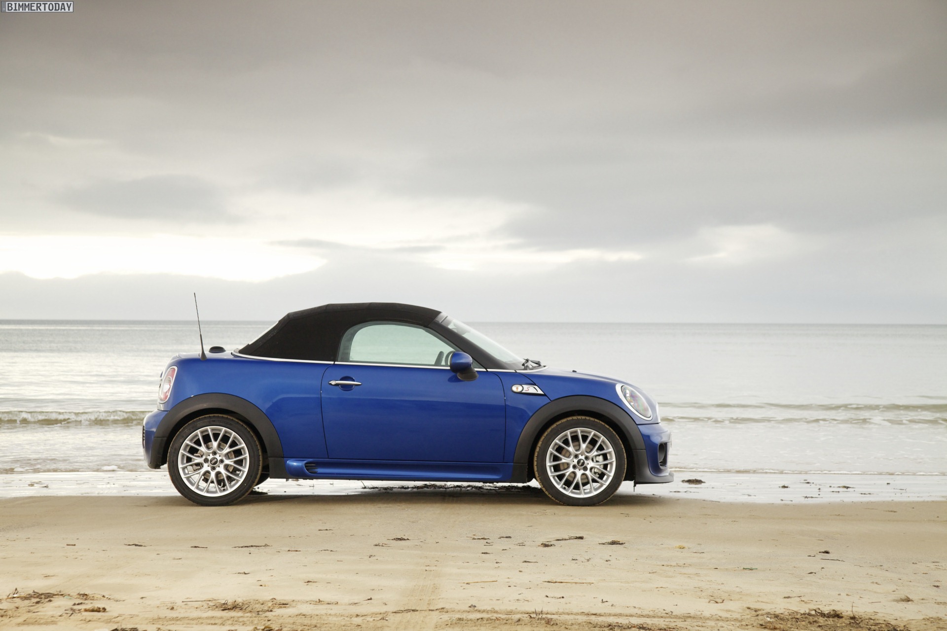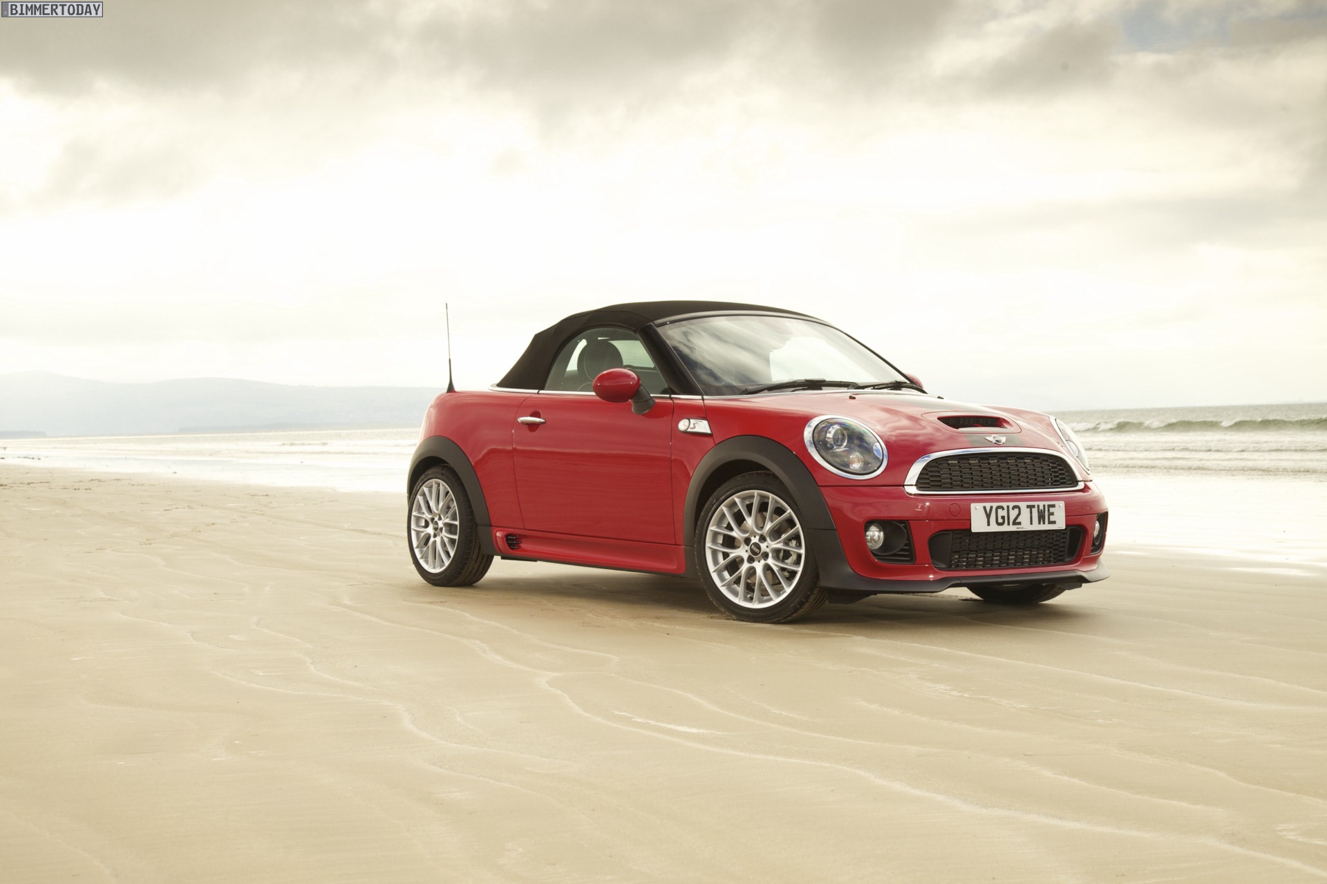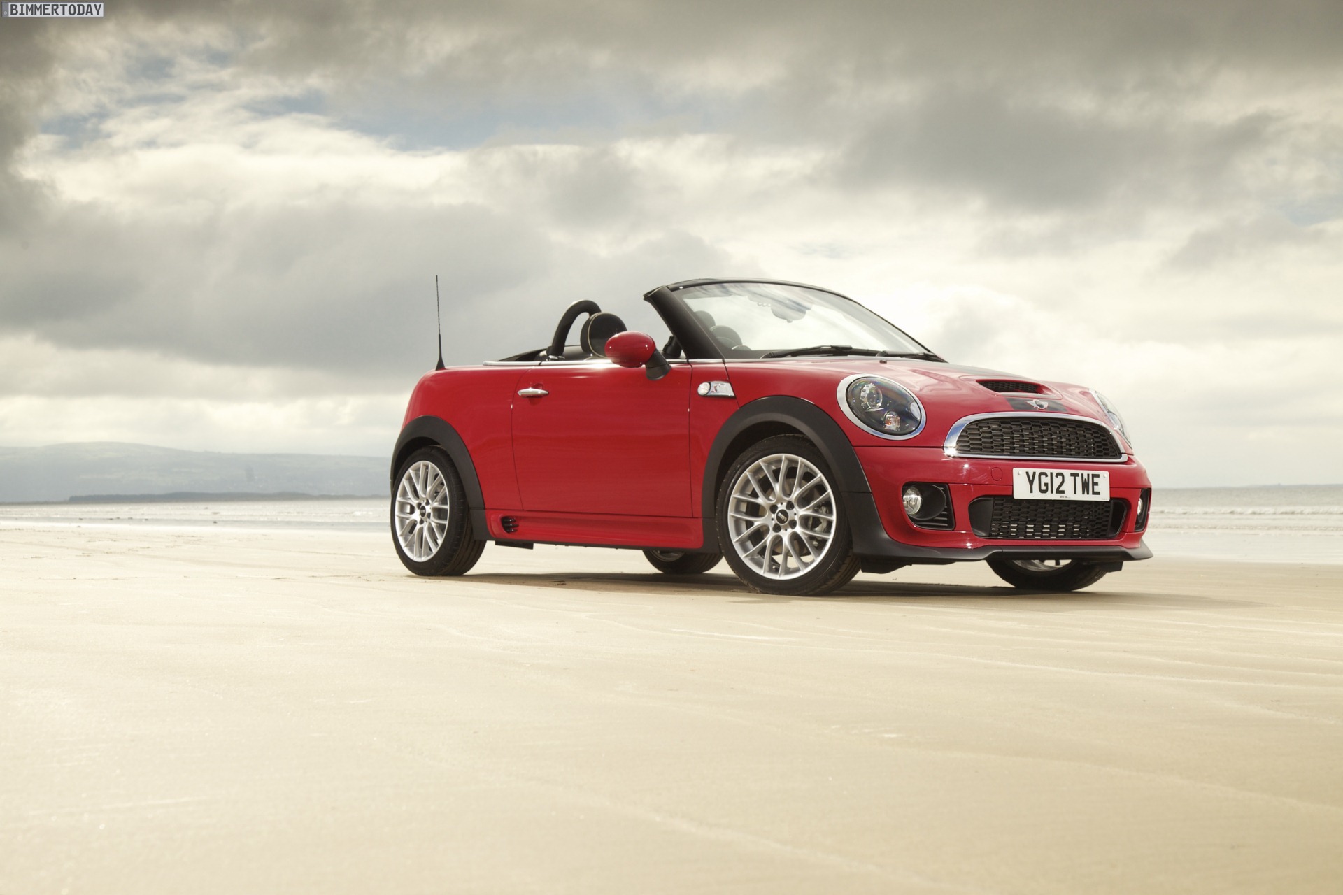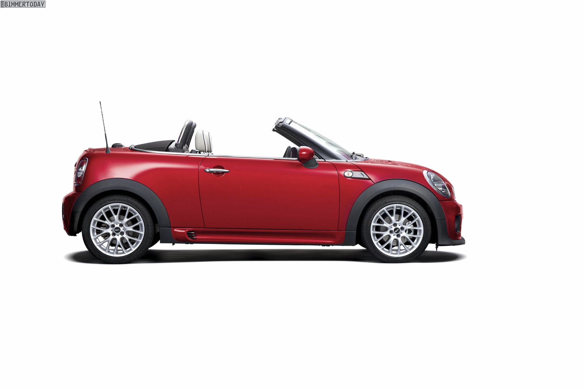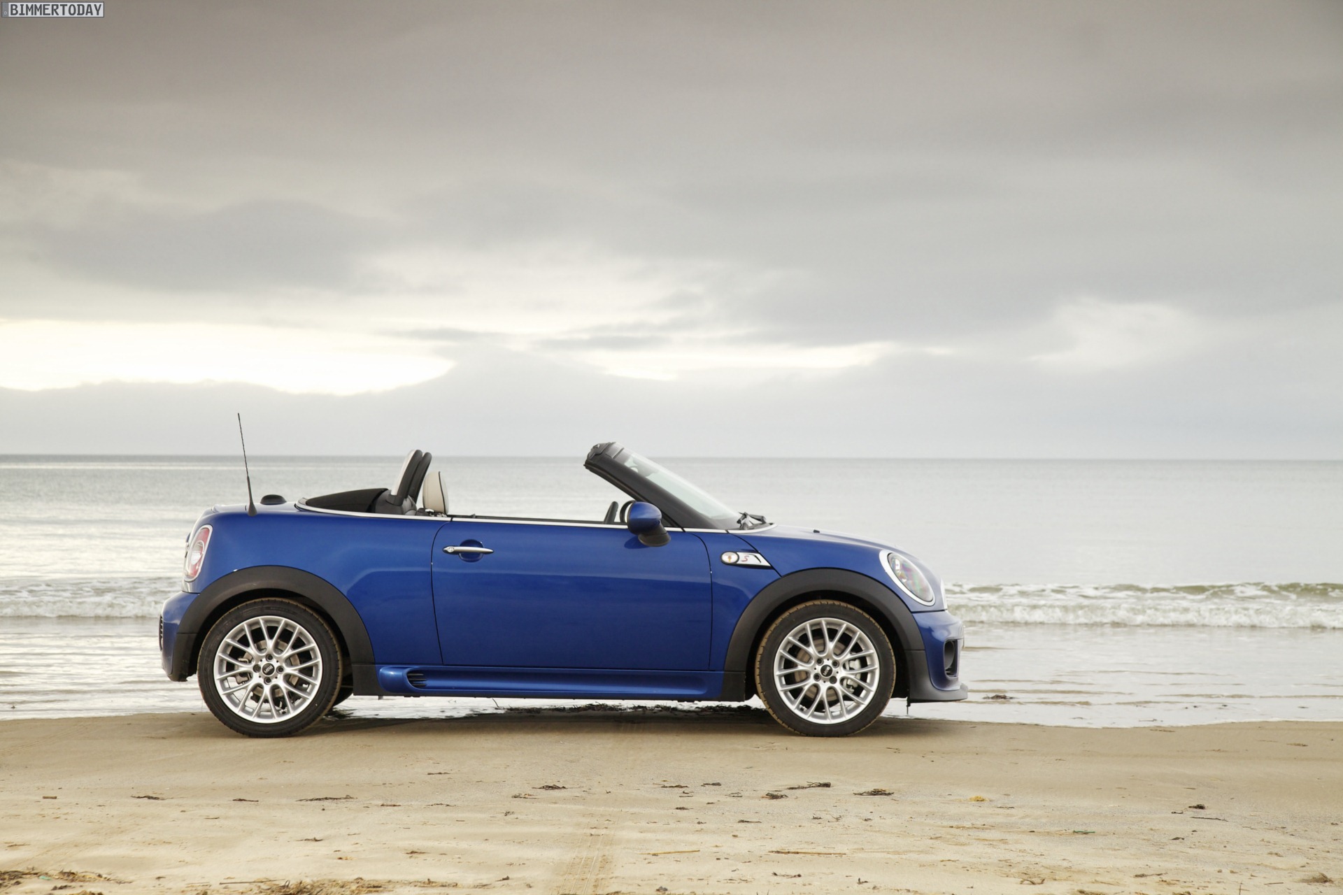 Zu sehen ist einerseits ein MINI Cooper S Roadster in Chili Red, der vom bekannten 1,6 Liter großen Turbo-Vierzylinder mit 184 PS angetrieben wird, andererseits wird ein blauer MINI Cooper SD Roadster mit 143 PS starkem Vierzylinder-Diesel in Szene gesetzt.