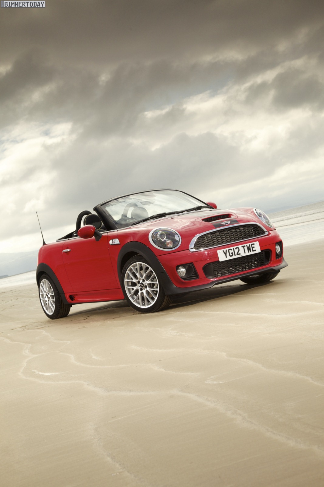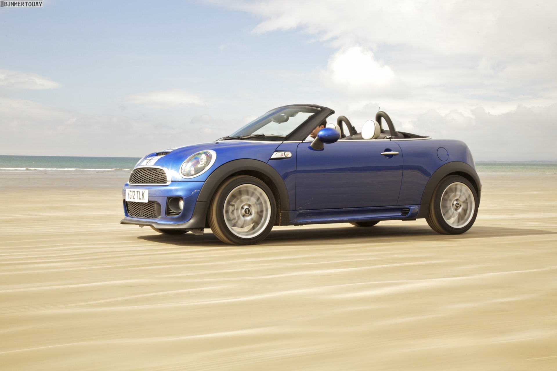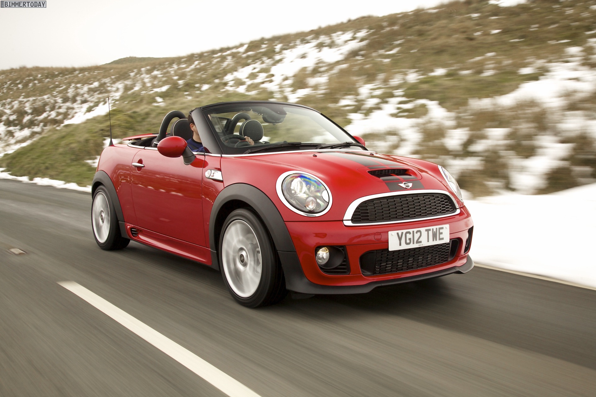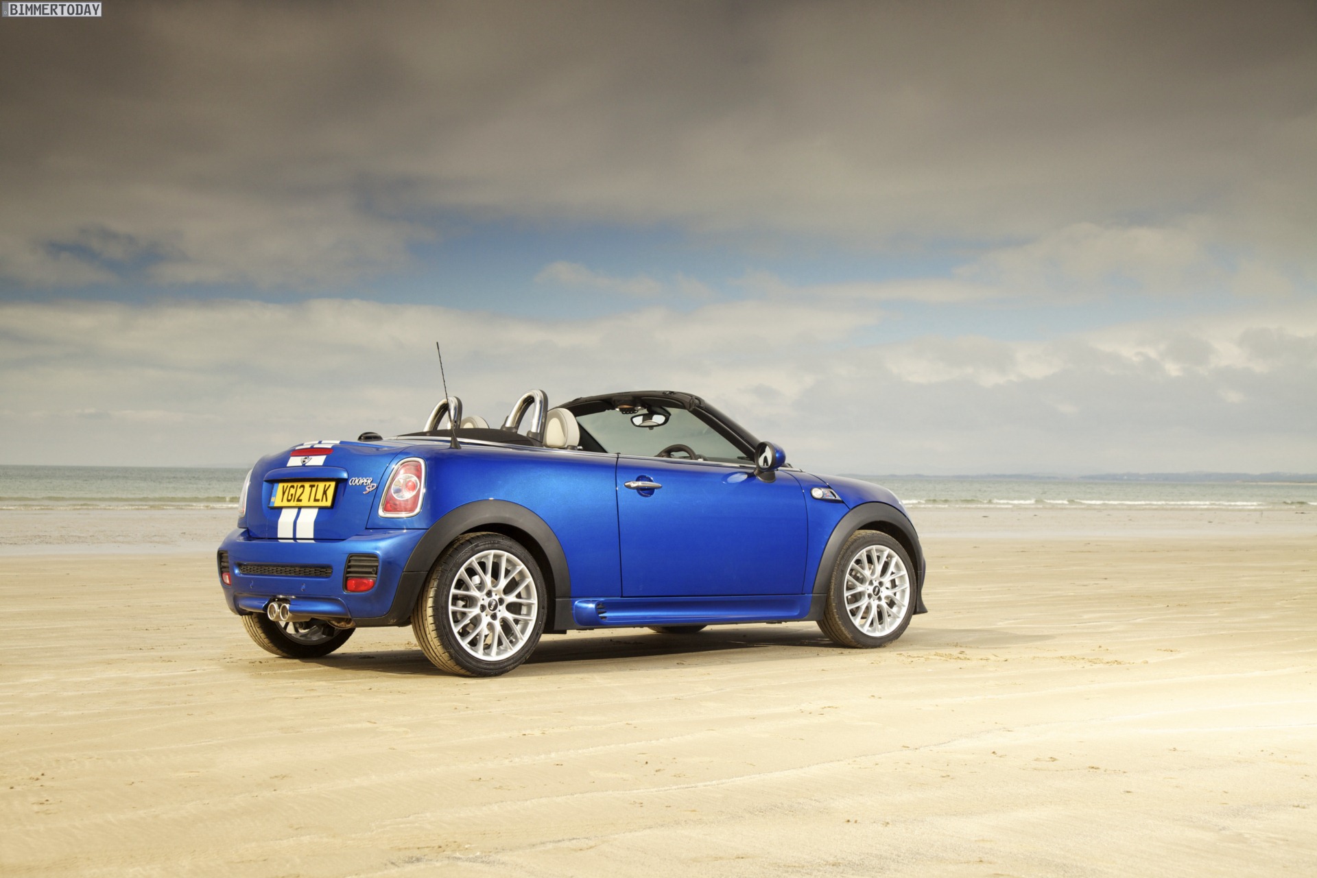 Zu sehen ist einerseits ein MINI Cooper S Roadster in Chili Red, der vom bekannten 1,6 Liter großen Turbo-Vierzylinder mit 184 PS angetrieben wird, andererseits wird ein blauer MINI Cooper SD Roadster mit 143 PS starkem Vierzylinder-Diesel in Szene gesetzt.