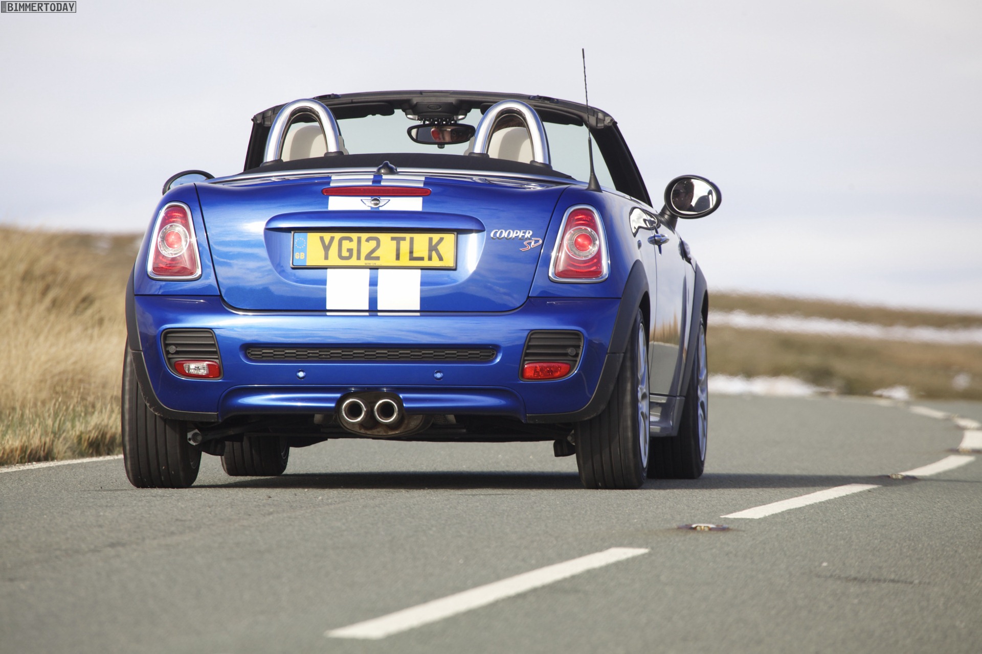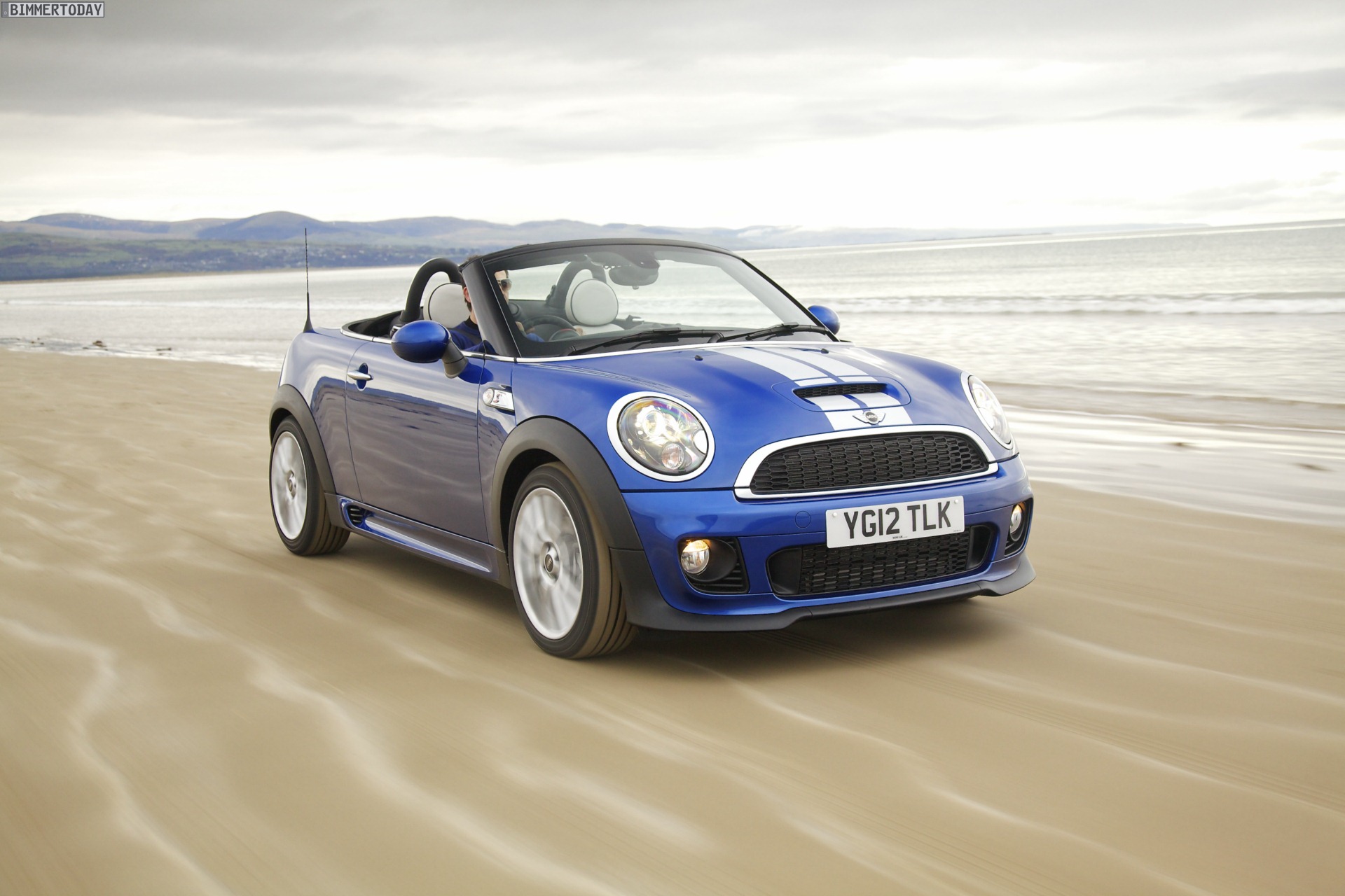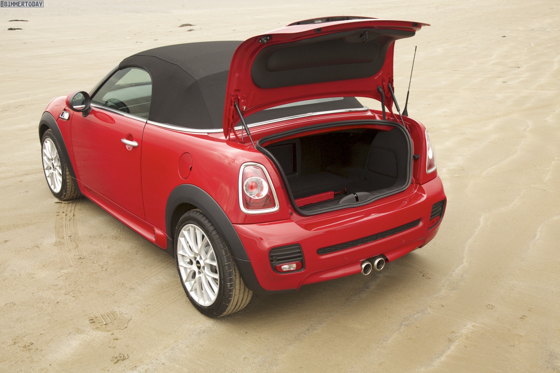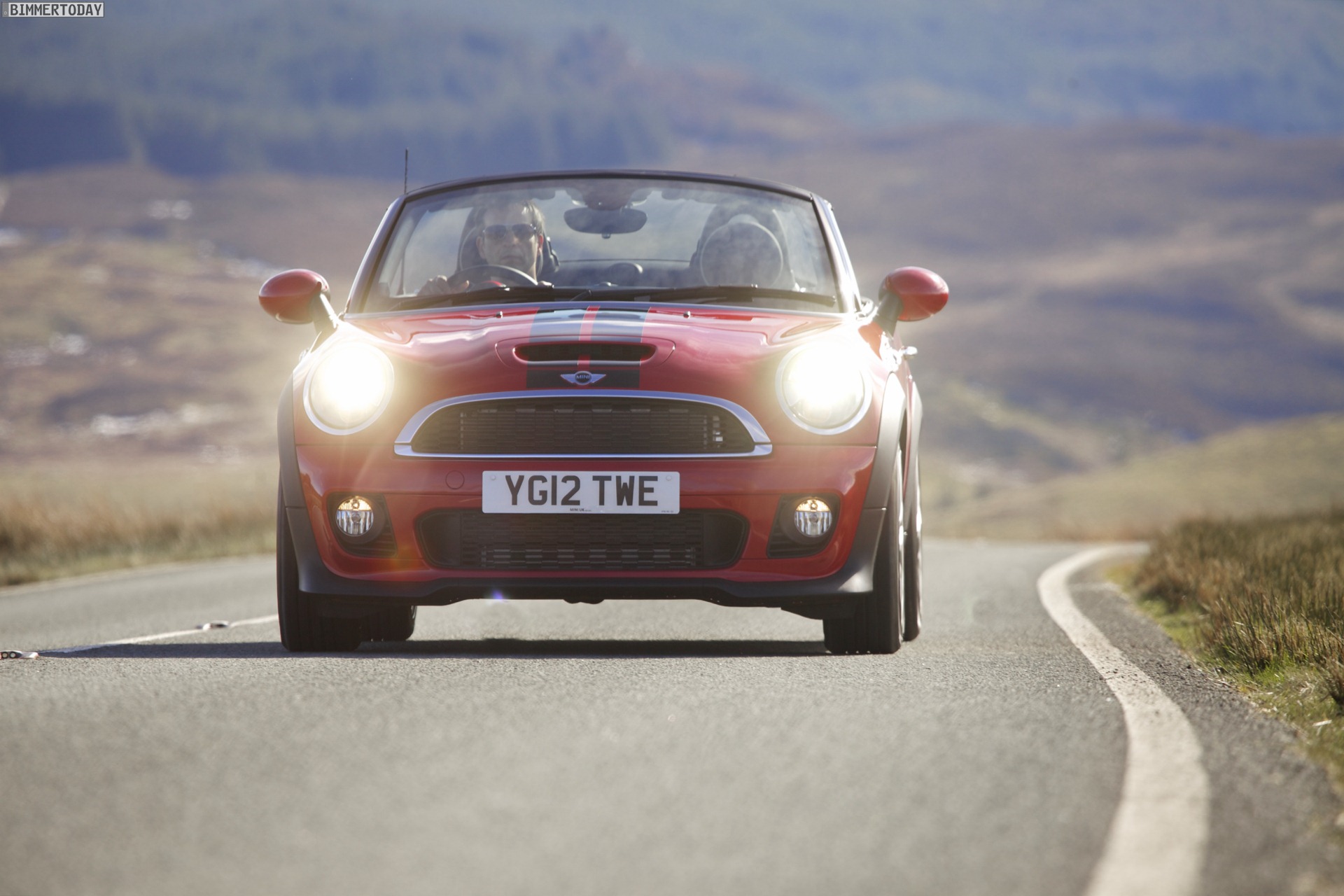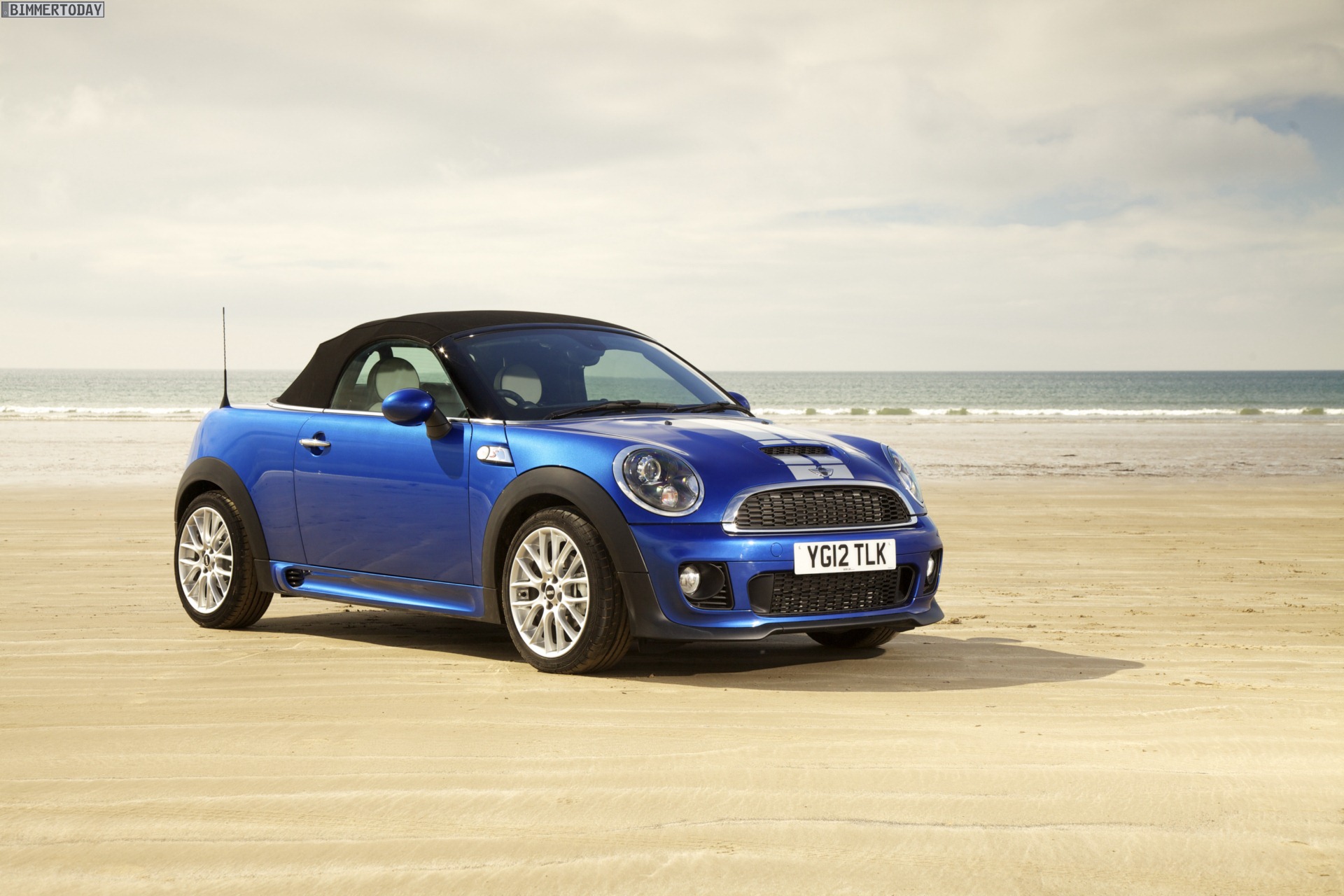 Zu sehen ist einerseits ein MINI Cooper S Roadster in Chili Red, der vom bekannten 1,6 Liter großen Turbo-Vierzylinder mit 184 PS angetrieben wird, andererseits wird ein blauer MINI Cooper SD Roadster mit 143 PS starkem Vierzylinder-Diesel in Szene gesetzt.